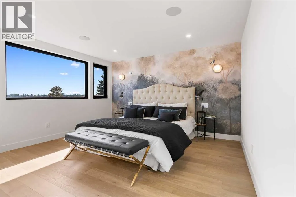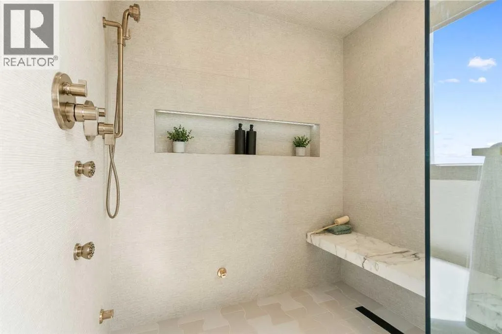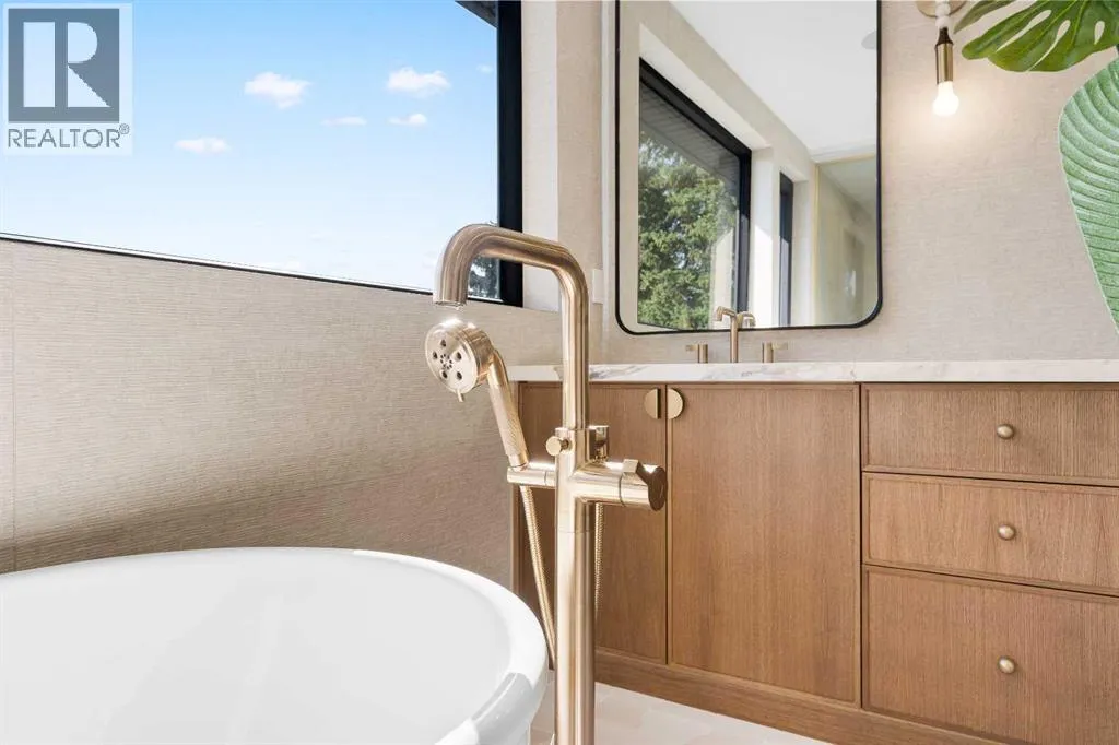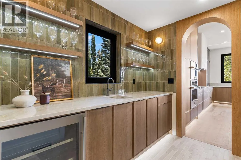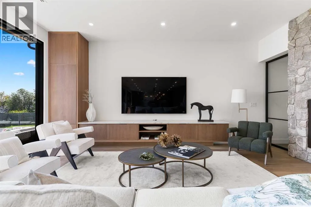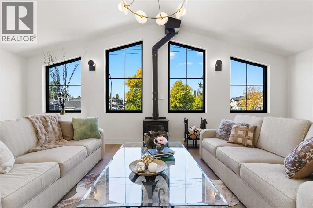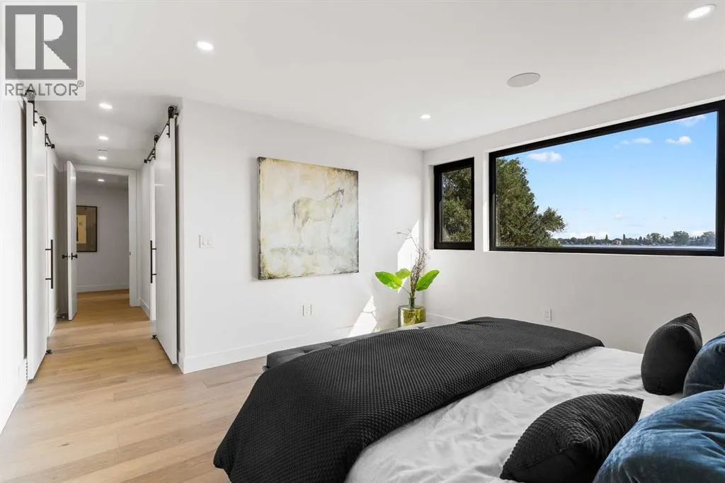 *Welcome to Lakeside Luxury on Chestermere Lake* With 4,482 sq. ft. of fully reimagined living space, this lakefront estate blends architectural sophistication with modern comfort on one of Chestermere Lakeâs most exclusive stretches of shoreline. This complete renovation and design is an intricate remodel + extension, showcasing soaring 10â ceilings, bespoke finishes, and walls of glass that capture sweeping water views. The foyer, framed by a 4 ft. Lux custom glass door, makes a bold first impression with a glass~encased home office and a see~through fireplace leading into the stunning living room. Floor~to~ceiling windows and European sliding doors create seamless flow to the outdoors, where a massive backyard, fire pit, and private dock invite year~round entertaining. At the heart of the home, the chefâs kitchen is a masterpiece ~ anchored by a Taj Mahal natural quartzite island, complemented by JennAir appliances, a butlerâs pantry, and a limewashed plaster custom hood fan that compliments the natural stone backsplash. Brizo plumbing fixtures in champagne bronze + matte black, Lo & Co + Emtek hardware; and custom~designed lighting elevate every detail, while white oak cabinets and hardwood floors add warmth and texture throughout the home. A spacious mudroom that rivals the aesthetic of any competing luxury home, leads to the 4~car garage with a tucked~away workshop. The garage floor was transformed with a stunning, heated, metallic epoxy finish, providing both beauty and durability. LED sensors throughout the home create an unrivalled nighttime ambiance, and an exposed epoxy rear deck extends the entertaining space. Upstairs, a vaulted bonus room with the homeâs original fireplace nods to its heritage, while a dual~desk workstation in the hallway adds functional elegance. Two secondary bedrooms and two larger master waterfront retreats capture lakeside serenity perfectly. The primary suite is pure indulgence, featuring a spa inspired ensuite with a steam showe r, heated bench and floors, which flows seamlessly to a massive walk in closet with micro~shaker drawers and velvet encasements. Even the laundry room makes a statement, with classic black and white checkered flooring adding a charming and whimsical touch to this architectural marvel. This is more than a home ~ itâs a statement in design, craftsmanship, and lakefront living. (id:27476)