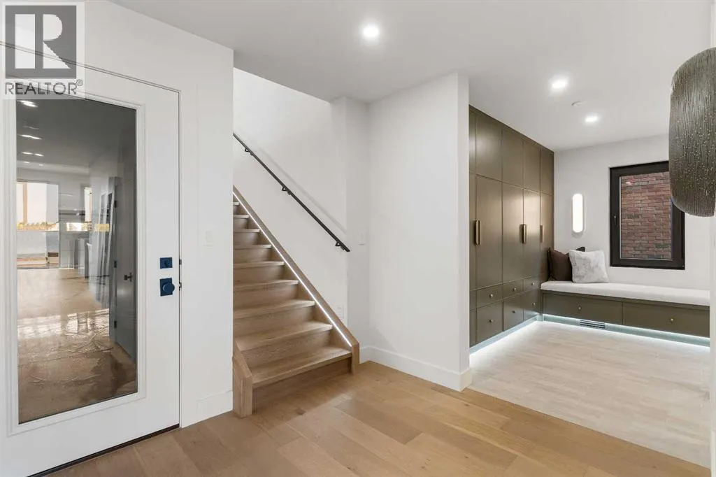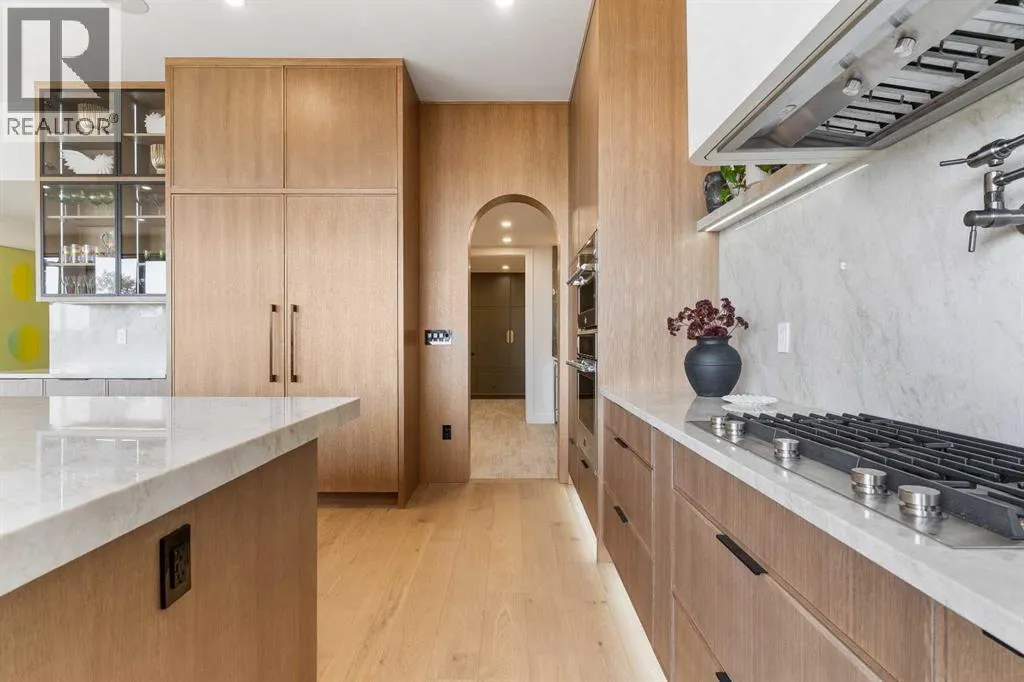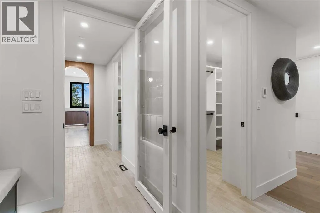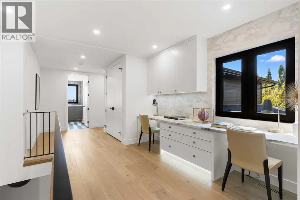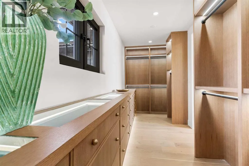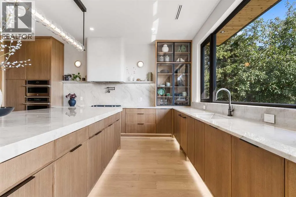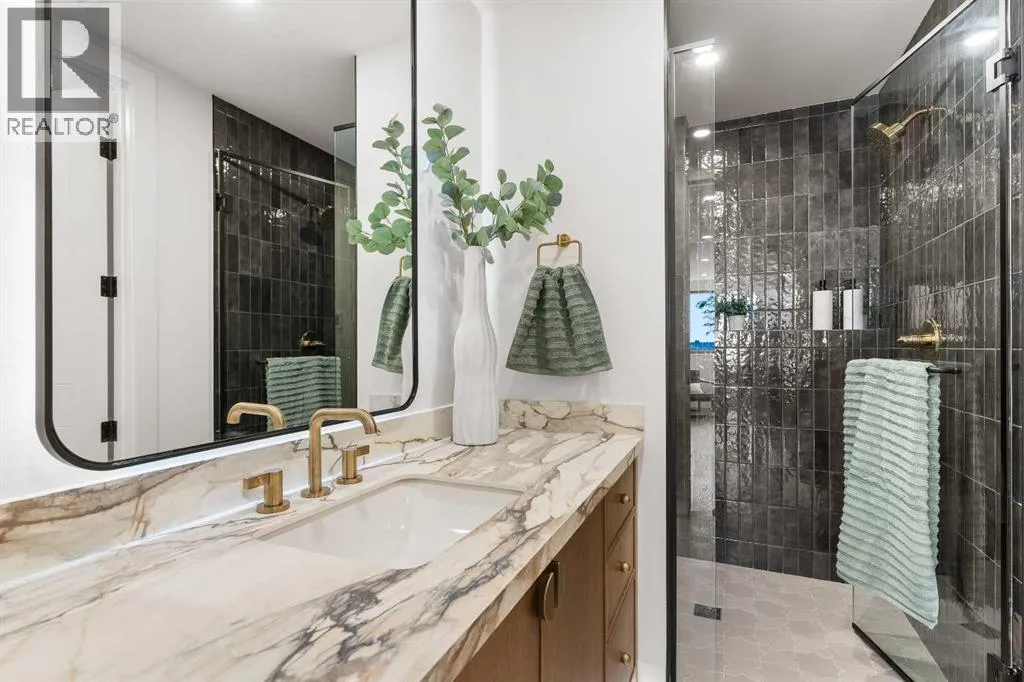 *Welcome to Lakeside Luxury on Chestermere Lake* With 4,482 sq. ft. of fully reimagined living space, this lakefront estate blends architectural sophistication with modern comfort on one of Chestermere Lakeâs most exclusive stretches of shoreline. This complete renovation and design is an intricate remodel + extension, showcasing soaring 10â ceilings, bespoke finishes, and walls of glass that capture sweeping water views. The foyer, framed by a 4 ft. Lux custom glass door, makes a bold first impression with a glass~encased home office and a see~through fireplace leading into the stunning living room. Floor~to~ceiling windows and European sliding doors create seamless flow to the outdoors, where a massive backyard, fire pit, and private dock invite year~round entertaining. At the heart of the home, the chefâs kitchen is a masterpiece ~ anchored by a Taj Mahal natural quartzite island, complemented by JennAir appliances, a butlerâs pantry, and a limewashed plaster custom hood fan that compliments the natural stone backsplash. Brizo plumbing fixtures in champagne bronze + matte black, Lo & Co + Emtek hardware; and custom~designed lighting elevate every detail, while white oak cabinets and hardwood floors add warmth and texture throughout the home. A spacious mudroom that rivals the aesthetic of any competing luxury home, leads to the 4~car garage with a tucked~away workshop. The garage floor was transformed with a stunning, heated, metallic epoxy finish, providing both beauty and durability. LED sensors throughout the home create an unrivalled nighttime ambiance, and an exposed epoxy rear deck extends the entertaining space. Upstairs, a vaulted bonus room with the homeâs original fireplace nods to its heritage, while a dual~desk workstation in the hallway adds functional elegance. Two secondary bedrooms and two larger master waterfront retreats capture lakeside serenity perfectly. The primary suite is pure indulgence, featuring a spa inspired ensuite with a steam showe r, heated bench and floors, which flows seamlessly to a massive walk in closet with micro~shaker drawers and velvet encasements. Even the laundry room makes a statement, with classic black and white checkered flooring adding a charming and whimsical touch to this architectural marvel. This is more than a home ~ itâs a statement in design, craftsmanship, and lakefront living. (id:27476)