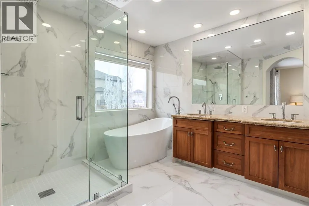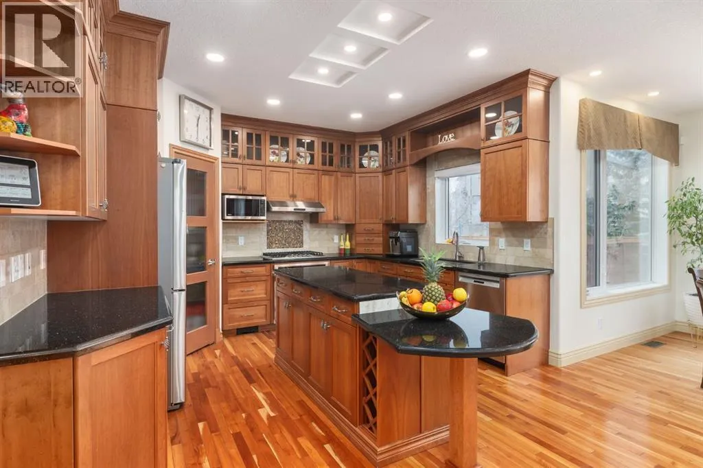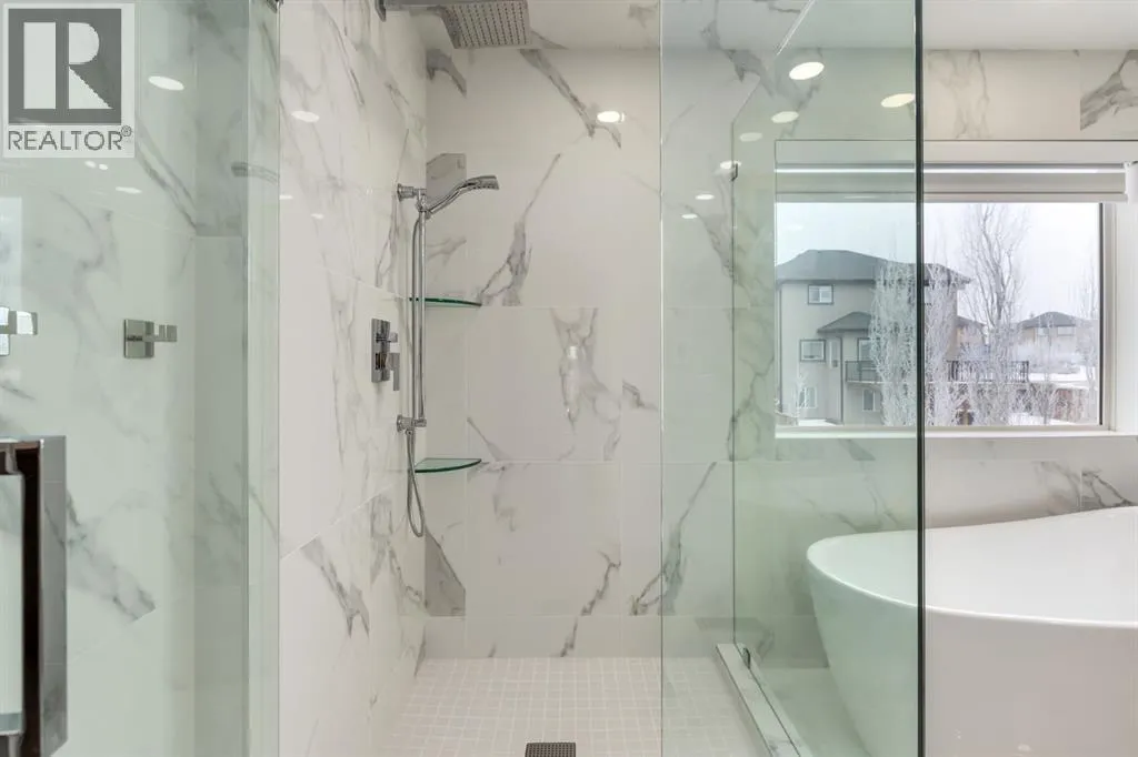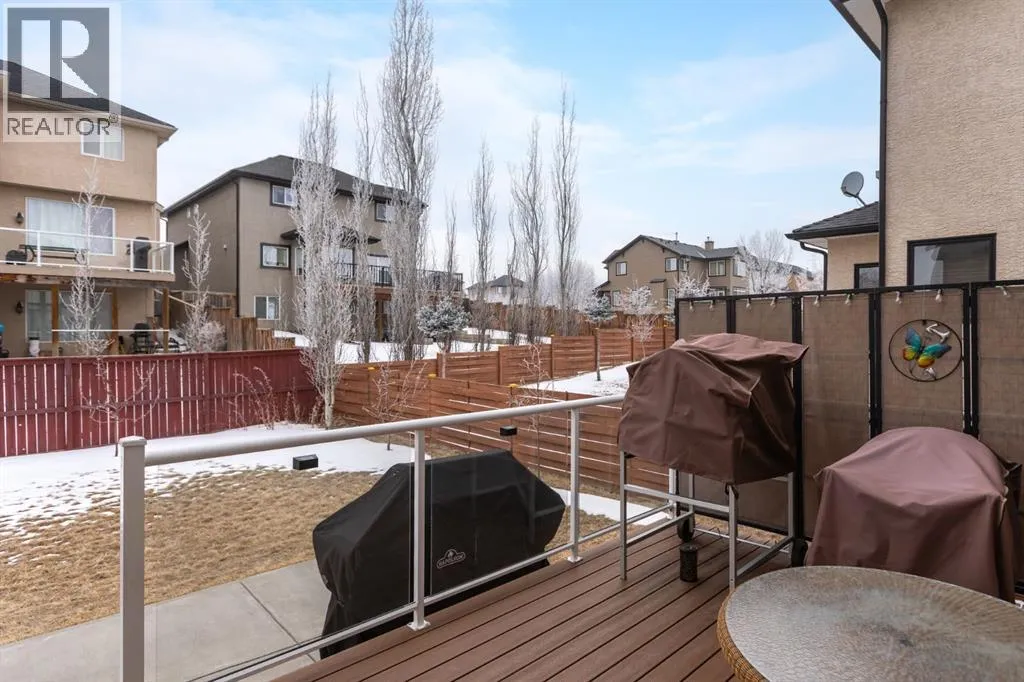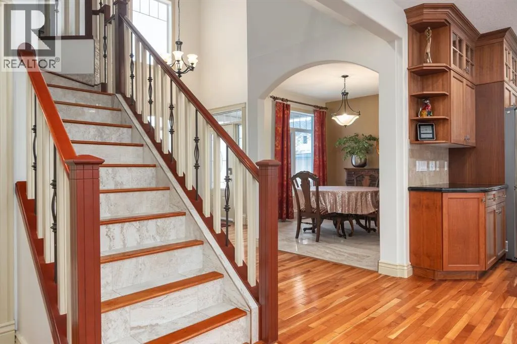 *OPEN HOUSE SAT MARCH 28 11:00-1:00* HUGE PRICE ADJUSTMENT! ONE OF A KIND PROPERTY! Endless feature and updates, so let's get straight to it... Former Landmark Showhome that has been meticulously maintained by the ORIGINAL OWNERS. Attractive curb appeal with stucco siding and superb location, situated DIRECTLY ACROSS THE STREET FROM THE LAKE! You will be immediately impressed upon entering by the grand entrance with vaulted ceiling. The main level features a formal dining room with heated tile flooring, renovated 2-pc washroom, custom staircase and spacious laundry room. The kitchen is set up perfectly for cooking and entertaining, with ample cabinet space, GRANITE COUNTERTOPS, GAS RANGE and corner pantry. Nearly every appliance has been replaced within the last 3 years! Head upstairs to find a massive bonus room with built in desk and 4 spacious bedrooms. Primary bedroom boasts a newly RENOVATED 5 pc ensuite with dual vanities, luxurious soaker tub and beautiful walk in shower. Another updated bathroom with heated floors completes the upper level. The basement is the perfect place to hang, featuring a wet bar, electric fireplace, large family room, 5th bedroom and another renovated washroom. Sunny WEST FACING BACKYARD is equipped with fruit trees, fragrant lilac bushes and a composite deck with retractable awning. Stay comfortable all year with CENTRAL AC and GAS FIREPLACE. HEATED double car garage with an extended driveway that fits 3 vehicles! Please note that there is NO CARPET throughout the home. Upgraded to hardwood/engineered hardwood on every level! Other bonuses include: CUSTOM MILLWORK, ZEBRA BLINDS, NEW WATER TANK, water softener & distiller, ceiling speakers and central vacuum. The only thing better than the home itself, is perhaps the location. Walking distance to the lake, boat launch, shopping, 2 schools and dog park. You are mere steps from Chestermere Lake, where you can enjoy boating, swimming, skating, fishing and fireworks. You will love living here! Check out the 3D tour! (id:27476)