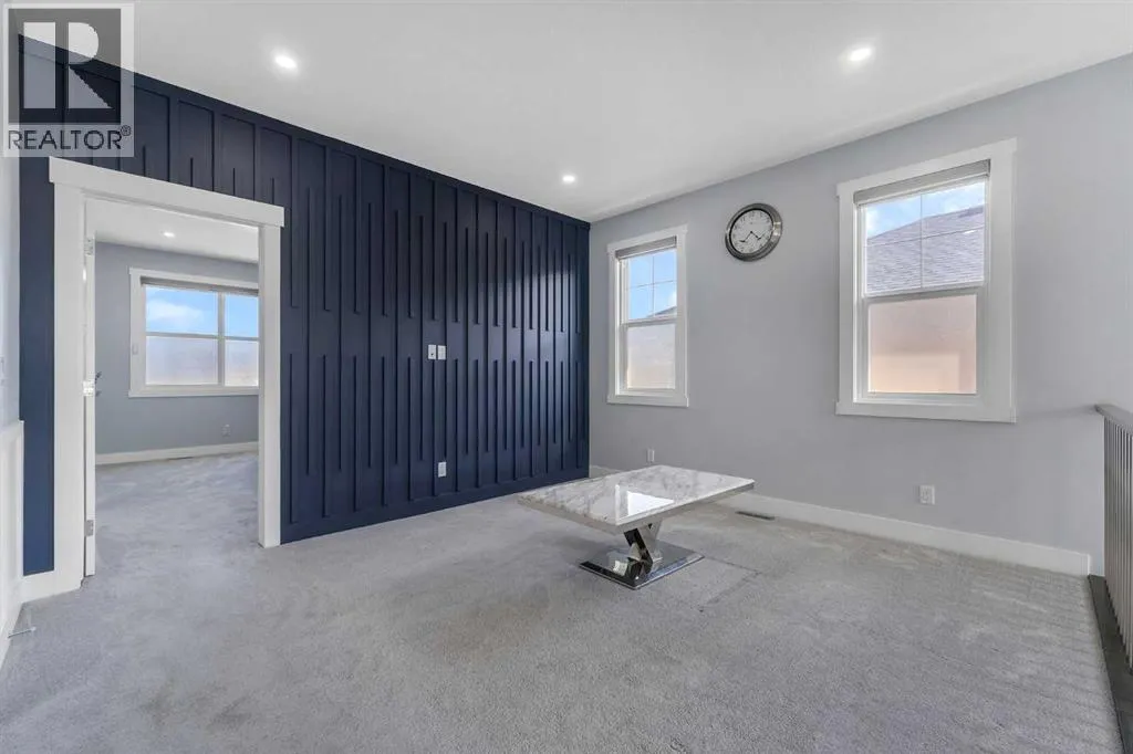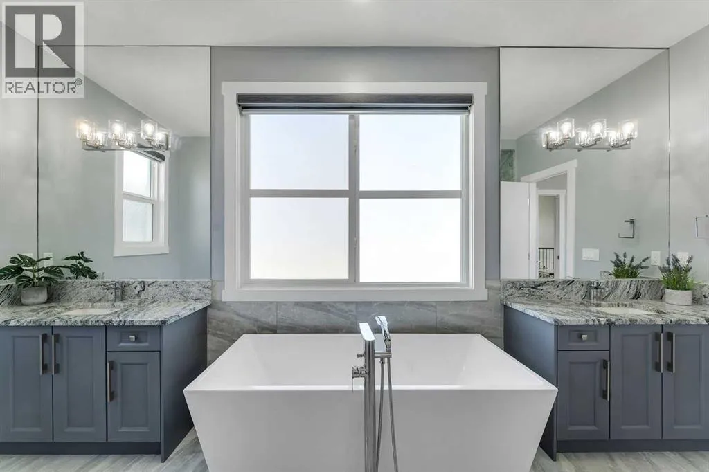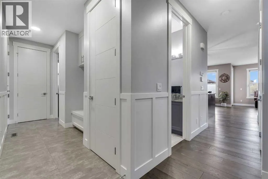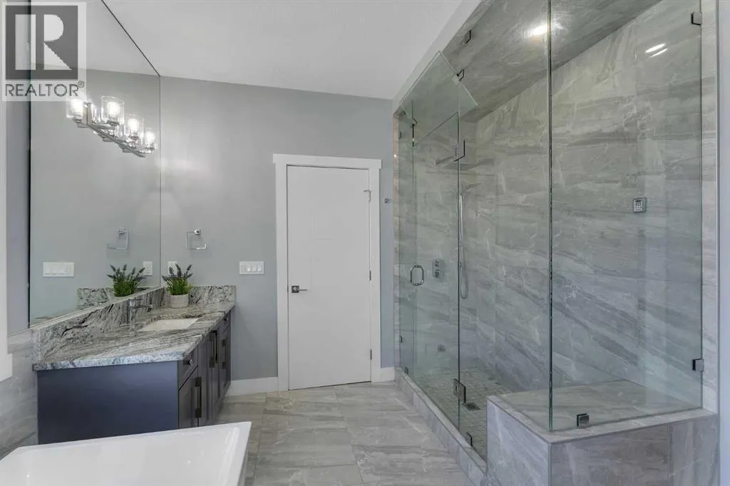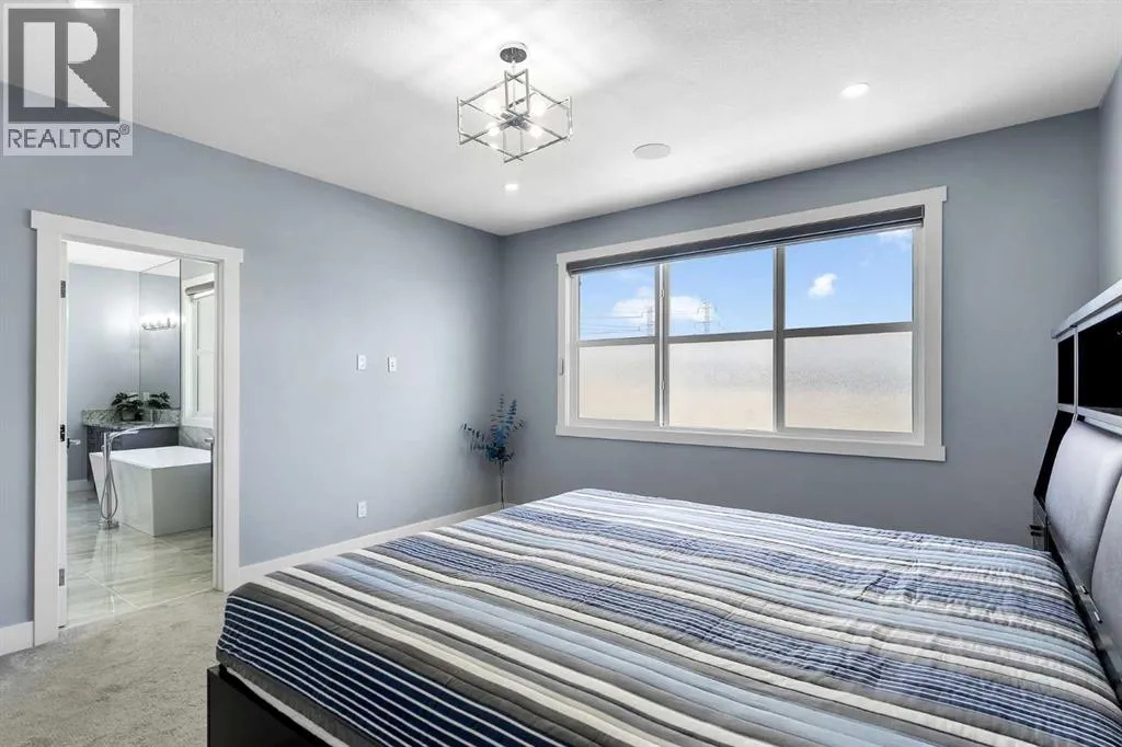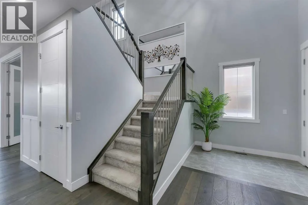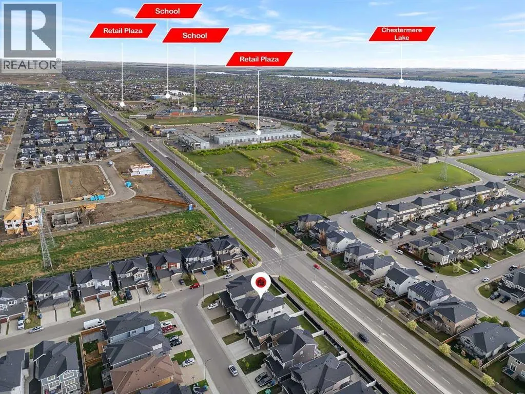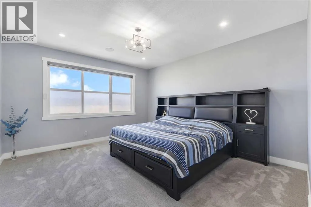 Experience luxury living in this CUSTOM-BUILT HOME OFFERING OVER 3,700 SQFT OF TOTAL DEVELOPED LIVING SPACE, located in the heart of Chestermereâjust steps from the canal, perfect for peaceful walks or bike rides toward Calgary for those with an active lifestyle. This WEST-FACING HOME offers striking curb appeal with an EXPOSED AGGREGATE DRIVEWAY, VINYL FENCING, EXTENDED CONCRETE WALKWAY, and a MAINTENANCE-FREE BACKYARD PATIO WITH BBQ GAS LINE. The home also features a LARGE, PRIVATE FRONT ENTRY thoughtfully positioned to provide added privacy and NOT DIRECTLY VISIBLE FROM NEIGHBOURING HOMES. Step inside to a grand OPEN-TO-BELOW FOYER featuring 8FT DOORS THROUGHOUT THE MAIN LEVEL, 9FT KNOCKDOWN CEILINGS, WAINSCOTING, FEATURE WALLS, and ENGINEERED HARDWOOD FLOORS. The main level also includes a DEDICATED FLEX ROOM, OPEN MUDROOM WITH DUAL COAT CLOSETS, MOTORIZED BLINDS THROUGHOUT, and is ROUGHED-IN FOR CENTRAL VACUUM. The CHEFâS KITCHEN is a true showstopper with an OVERSIZED ISLAND, GRANITE COUNTERTOPS THROUGHOUT, SOFT-CLOSE CEILING-HEIGHT CABINETRY, TWO GAS RANGES, TWO DISHWASHERS, BUILT-IN OVEN AND MICROWAVE, HIGH-POWERED HOOD FAN, and a fully equipped SPICE KITCHEN WITH GARBURATOR. The GREAT ROOM features a stunning FLOOR-TO-CEILING TILED GAS FIREPLACE with IN-CEILING SPEAKERS, creating the perfect space for entertaining. Upstairs offers 4 SPACIOUS BEDROOMS, including TWO MASTER SUITES. The primary retreat features a SPA-INSPIRED 5-PIECE ENSUITE with a STANDALONE TUB, CUSTOM STEAM SHOWER, DOUBLE VANITY, CEILING-HEIGHT MIRRORS, TOILET WITH WINDOW, and a WALK-IN CLOSET WITH BUILT-INS. The second master includes its own 4-PIECE ENSUITE WITH STAND-UP SHOWER. Two additional bedrooms and a full bathroom with stand-up shower complete the upper level, along with a BONUS ROOM WITH FEATURE WALL, LAUNDRY ROOM WITH SINK, and CAT5 WIRING. The FULLY FINISHED BASEMENT features a SEPARATE SIDE ENTRANCE, 2 BEDROOMS, a FULL BATHROOM WITH TILED STAND-UP SHOWER, ROUGHED-IN LAUNDRY, a nd a FUTURE WET BAR AREA ROUGHED-IN WITH 220V POWER AND VENTING, along with a LARGE OPEN FAMILY ROOM and DEDICATED STORAGE ROOMâoffering excellent flexibility for extended family or entertaining. Additional highlights include a HEATED AND INSULATED GARAGE WITH GAS LINE, HOME SECURITY SYSTEM WITH 7 CAMERAS + NVR, AC ROUGH-IN, and the peace of mind of REMAINING NEW HOME WARRANTY. (id:27476)