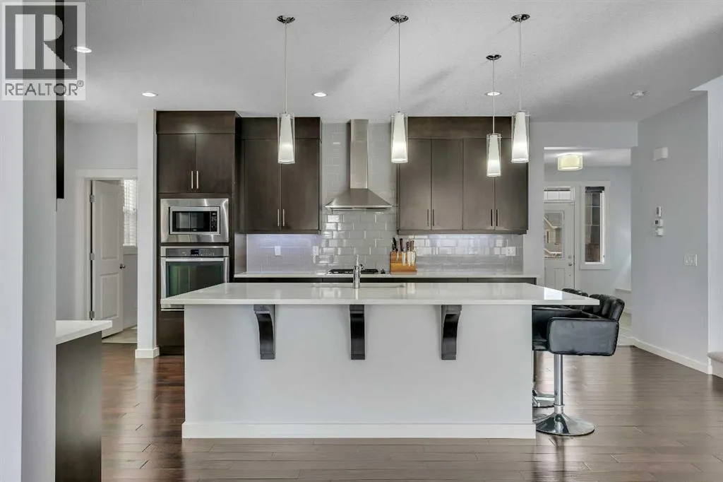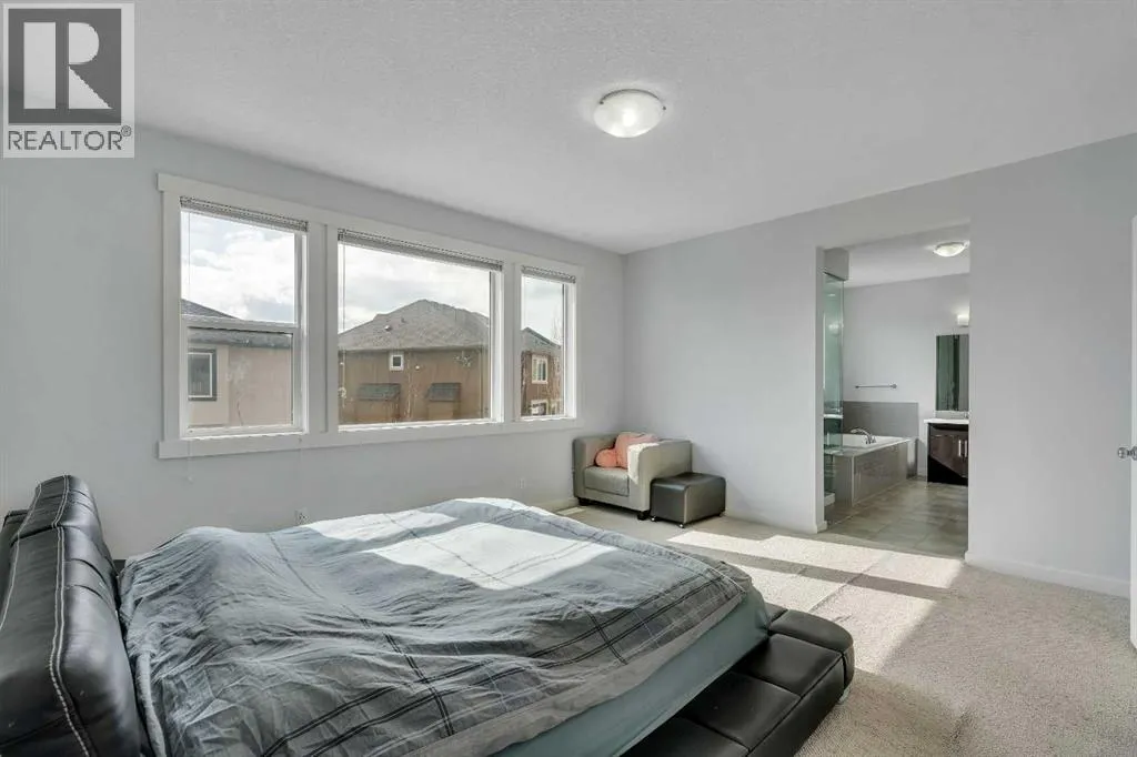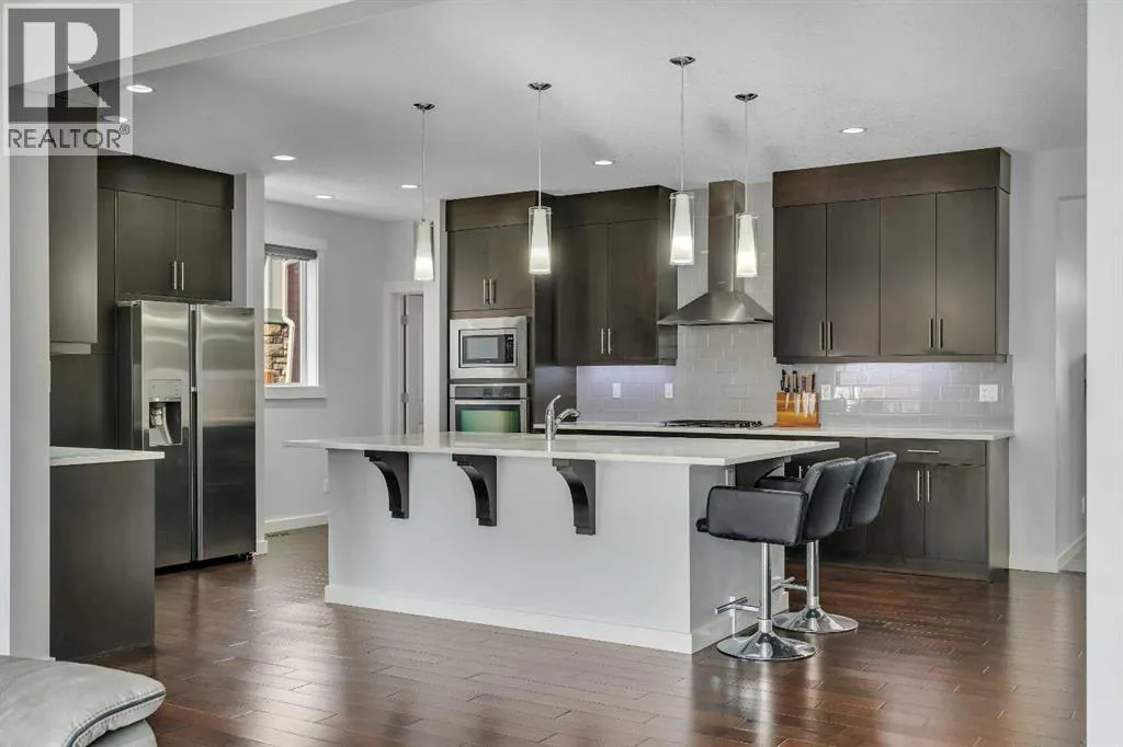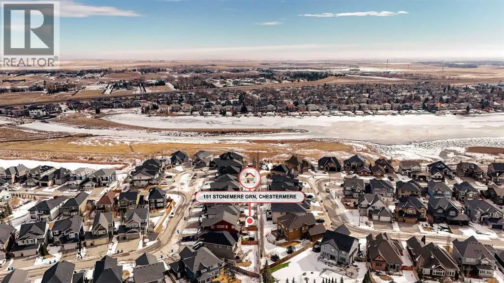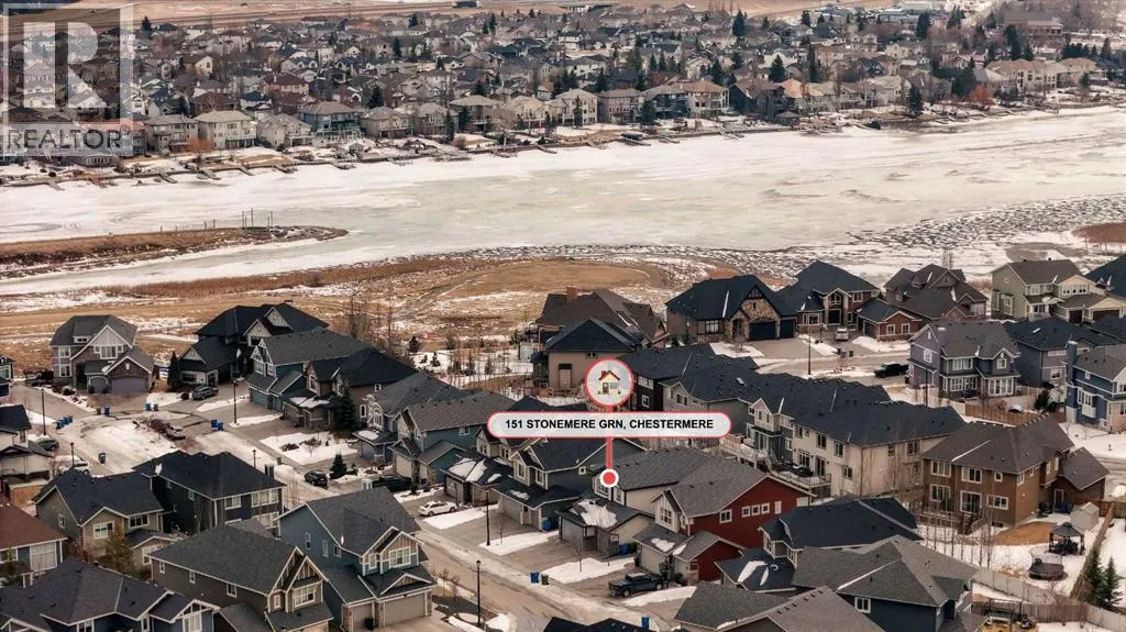 ** CHECK OUT THE VIDEO TOUR ** Welcome to an EXCEPTIONAL family home where refined design, thoughtful upgrades & an unbeatable location come together to create a truly elevated living experience. Situated on a quiet, family-friendly street in the sought-after community of Westmere in Chestermere, just steps from the shores of Lake Chestermere, this immaculate residence offers over 3,500 sq ft of beautifully developed living space, 5 bedrooms, 3.5 bathrooms, central air conditioning, and a RARE heated quad attached garage. From the moment you step inside, youâll appreciate the pride of ownership & attention to detail showcased throughout. Rich hardwood floors, high ceilings, and an abundance of NATURAL LIGHT set the stage for the homeâs inviting open-concept layout. Designed with both everyday comfort and entertaining in mind, the main floor seamlessly connects the living room, kitchen, and dining area to create a warm and welcoming gathering space. At the heart of the home is a STUNNING chef-inspired custom kitchen, featuring ceiling-height cabinetry, premium stainless steel appliances, and a large centre island with breakfast bar seating â perfect for morning coffee, casual dining, or hosting friends & family. The adjoining dining area overlooks the beautifully landscaped backyard and EXPANSIVE composite deck, creating a seamless transition between indoor and outdoor living. A stylish powder room, spacious mudroom, and welcoming front foyer complete the main level. Upstairs, the home continues to IMPRESS with a thoughtfully designed upper level highlighted by a spacious bonus room â ideal for movie nights, a kidsâ retreat, or a home gym. The LUXURIOUS primary retreat offers a private SANTUARY complete with a generous walk-in closet and a beautifully appointed 5-piece ensuite featuring dual vanities, a spa-inspired soaker tub, and an elegant glass shower. Two additional bedrooms and a well-appointed full bathroom provide plenty of space for a growing family. The ful ly finished basement expands your living space even further, offering an expansive recreation room, two additional bedrooms, and a modern full bathroom â perfect for guests, teenagers, or extended family. Step outside to your SUNNY south-facing backyard, thoughtfully designed for low-maintenance living and effortless entertaining. The MASSIVE composite deck provides the ideal setting for summer barbecues, outdoor dining, or simply relaxing in the sun, while artificial turf ensures a lush green space without the upkeep. A large storage shed adds additional functionality. Car enthusiasts and hobbyists will appreciate the fully insulated and HEATED quad attached garage, complemented by a spacious concrete driveway offering ample additional parking. Located just a short stroll from Lake Chestermere, parks, schools, shopping, and local dining, this exceptional & rare property offers the perfect balance of lifestyle, luxury, and convenience. Book your PRIVATE TOUR TODAY!! (id:27476)