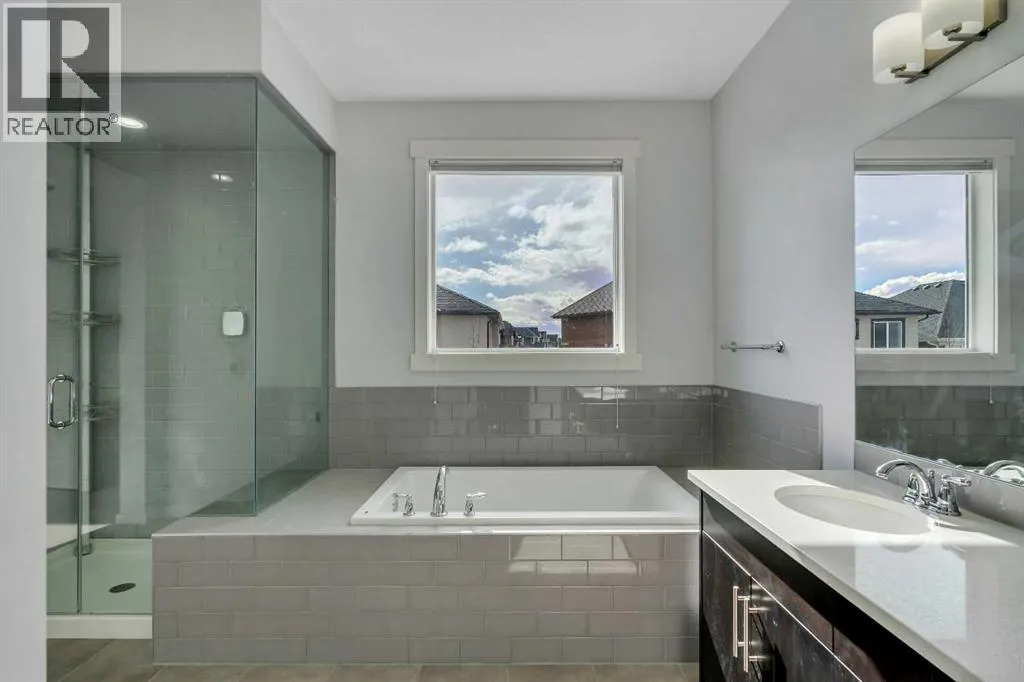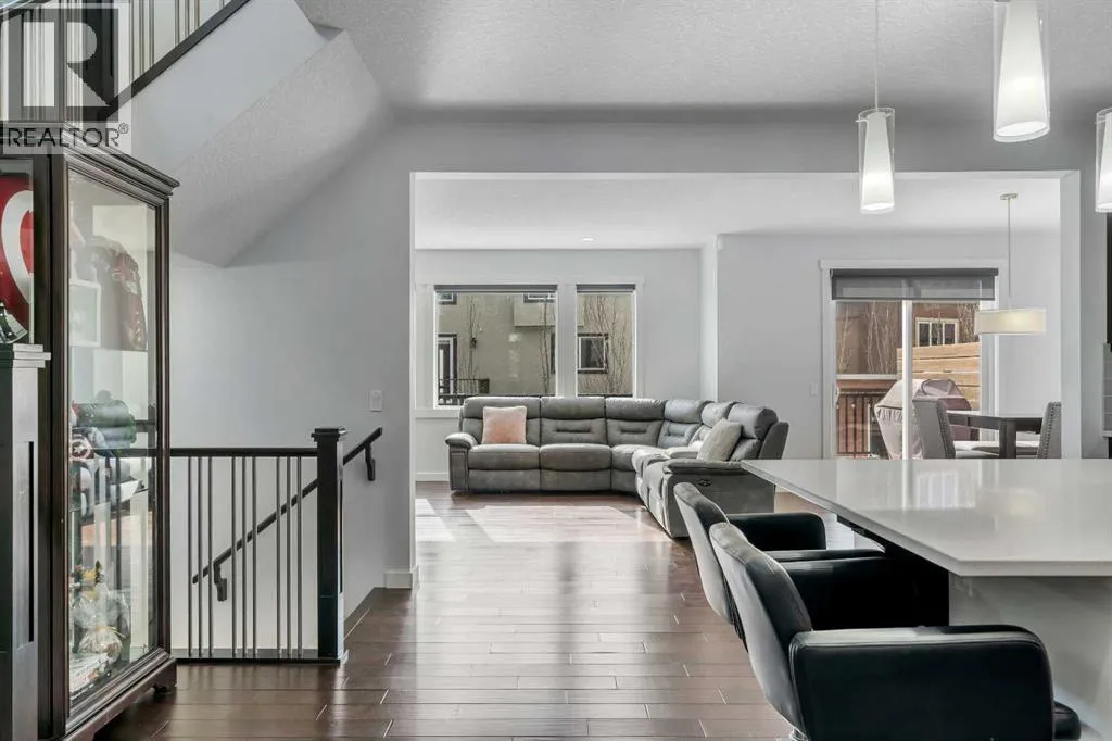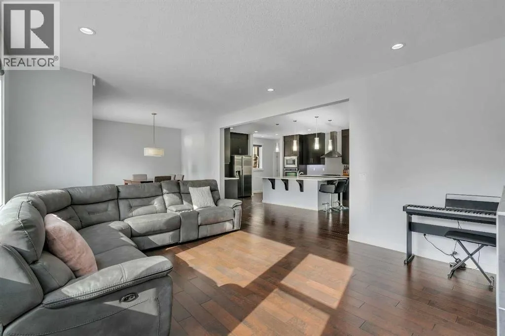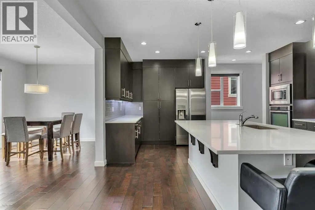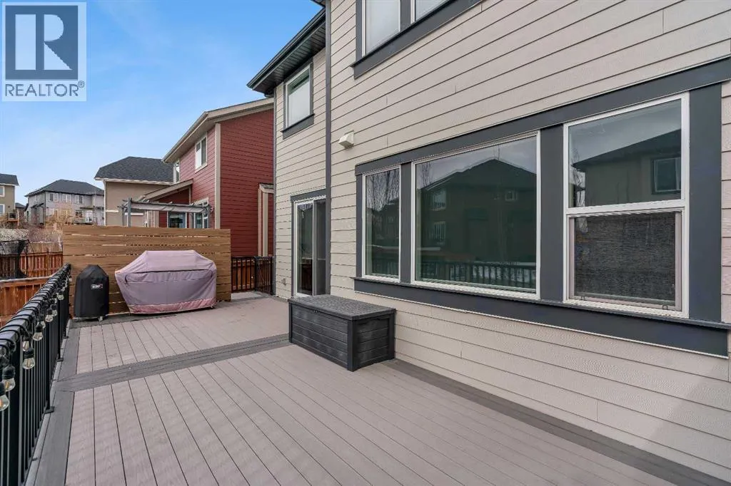 ** CHECK OUT THE VIDEO TOUR ** Welcome to an EXCEPTIONAL family home where refined design, thoughtful upgrades & an unbeatable location come together to create a truly elevated living experience. Situated on a quiet, family-friendly street in the sought-after community of Westmere in Chestermere, just steps from the shores of Lake Chestermere, this immaculate residence offers over 3,500 sq ft of beautifully developed living space, 5 bedrooms, 3.5 bathrooms, central air conditioning, and a RARE heated quad attached garage. From the moment you step inside, youâll appreciate the pride of ownership & attention to detail showcased throughout. Rich hardwood floors, high ceilings, and an abundance of NATURAL LIGHT set the stage for the homeâs inviting open-concept layout. Designed with both everyday comfort and entertaining in mind, the main floor seamlessly connects the living room, kitchen, and dining area to create a warm and welcoming gathering space. At the heart of the home is a STUNNING chef-inspired custom kitchen, featuring ceiling-height cabinetry, premium stainless steel appliances, and a large centre island with breakfast bar seating â perfect for morning coffee, casual dining, or hosting friends & family. The adjoining dining area overlooks the beautifully landscaped backyard and EXPANSIVE composite deck, creating a seamless transition between indoor and outdoor living. A stylish powder room, spacious mudroom, and welcoming front foyer complete the main level. Upstairs, the home continues to IMPRESS with a thoughtfully designed upper level highlighted by a spacious bonus room â ideal for movie nights, a kidsâ retreat, or a home gym. The LUXURIOUS primary retreat offers a private SANTUARY complete with a generous walk-in closet and a beautifully appointed 5-piece ensuite featuring dual vanities, a spa-inspired soaker tub, and an elegant glass shower. Two additional bedrooms and a well-appointed full bathroom provide plenty of space for a growing family. The ful ly finished basement expands your living space even further, offering an expansive recreation room, two additional bedrooms, and a modern full bathroom â perfect for guests, teenagers, or extended family. Step outside to your SUNNY south-facing backyard, thoughtfully designed for low-maintenance living and effortless entertaining. The MASSIVE composite deck provides the ideal setting for summer barbecues, outdoor dining, or simply relaxing in the sun, while artificial turf ensures a lush green space without the upkeep. A large storage shed adds additional functionality. Car enthusiasts and hobbyists will appreciate the fully insulated and HEATED quad attached garage, complemented by a spacious concrete driveway offering ample additional parking. Located just a short stroll from Lake Chestermere, parks, schools, shopping, and local dining, this exceptional & rare property offers the perfect balance of lifestyle, luxury, and convenience. Book your PRIVATE TOUR TODAY!! (id:27476)