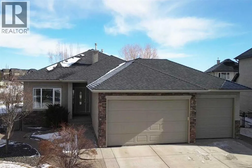 Welcome to 123 Parkmere Court! Timeless Elegance is apparent in this four bedroom EXECUTIVE STYLE bungalow ideally situated on a massive pie-shaped lot siding onto a green space in the highly sought-after community of Westmere! Offering 1600+ sq ft on the main level plus 1428 in the fully developed basement, this property offers over 3000 sq ft of living space! The contemporary floor plan is filled with an abundance of natural light, creating a warm and inviting atmosphere throughout! Step inside and be greeted by a large foyer. The well-appointed kitchen features GRANITE countertops, a center island, custom cabinetry, and a full STAINLESS STEEL appliance package (kitchen appliances are approx one year old), making this property ideal for everyday living and entertaining. A main floor den and formal dining area provide additional flexibility for entertaining or working from home. The spacious living area is anchored by a cozy gas fireplace and there is plenty of room for furniture placement! The main level also includes two generously sized bedrooms, including the primary retreat complete with a walk-in closet and full ensuite bath. There is an additional four piece bath which services the second bedroom or for your guests! The fully developed basement expands the living space with an enormous recreation room, stylish corner bar, two additional spacious bedrooms, and a full bathroom. The basement bathroom is complete with infloor heat, perfect for guests or growing families. The HEATED triple garage has professional finished Epoxy flooring (completed approx 3 years ago) and is OVERSIZED, measuring 23'7" x 29'3! What truly sets this property apart is the immaculately landscaped yard complete with mature trees and shrubbery, stone patio and an underground sprinkler system! Siding onto a green space and with a quick walk to the lake, the dog park and several amenities such as Safeway and Tim Hortons! The outdoor setting offers peace, privacy, and true tranquility. Com plete with Central Air Conditioning and a covered deck for year round enjoyment, this exceptional property offers luxury, location, and lifestyle all in one. **Click on the Link for the 3D Virtual Tour** (id:27476)