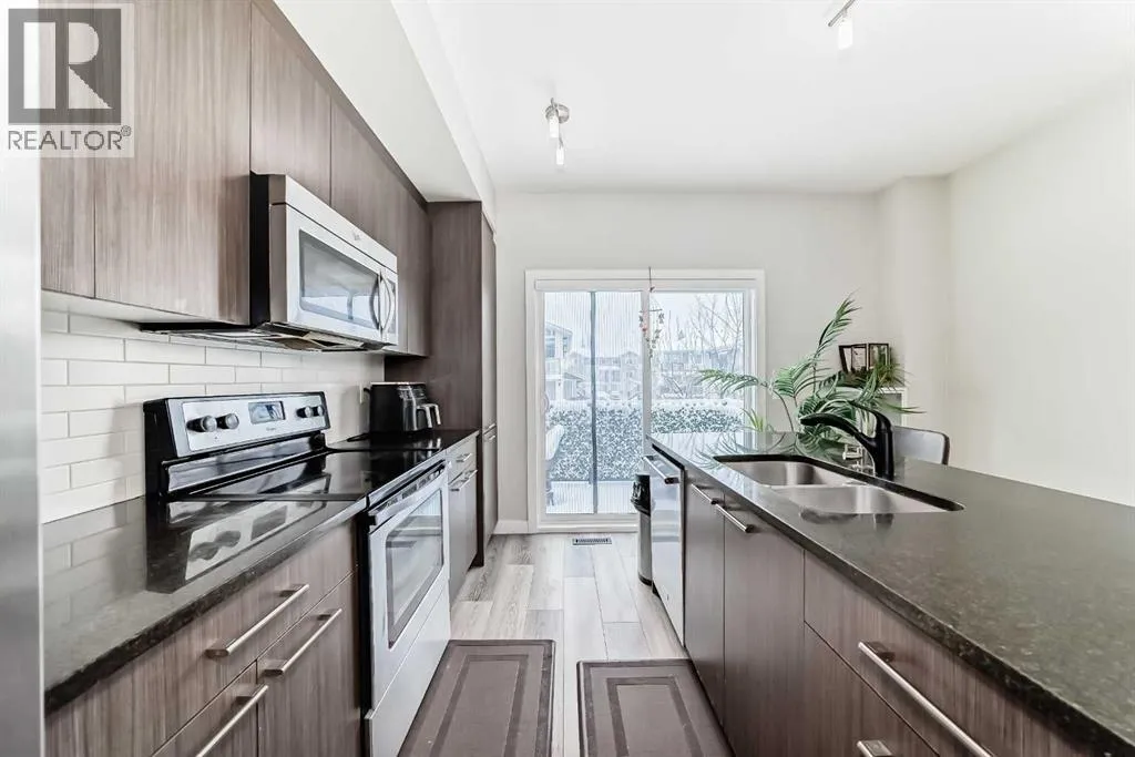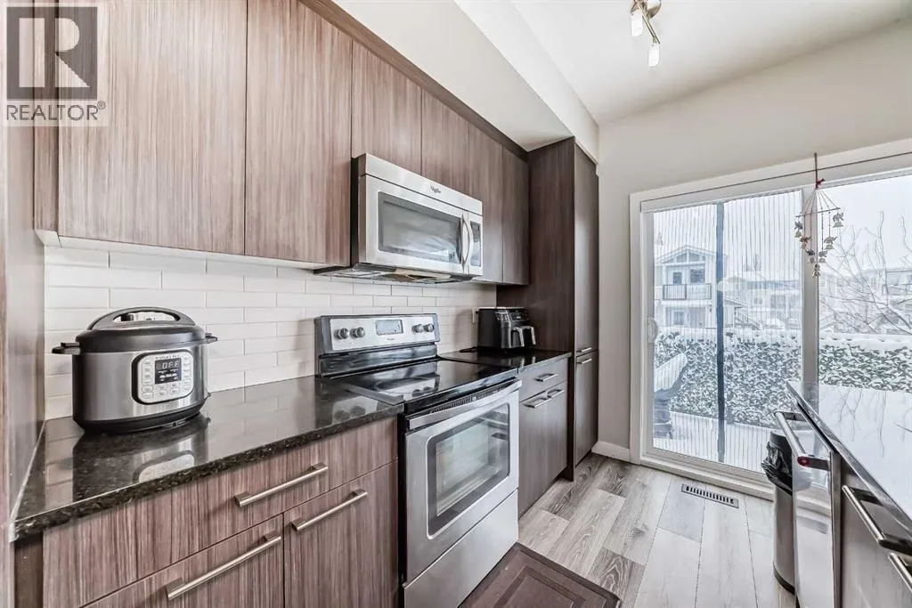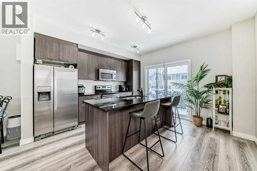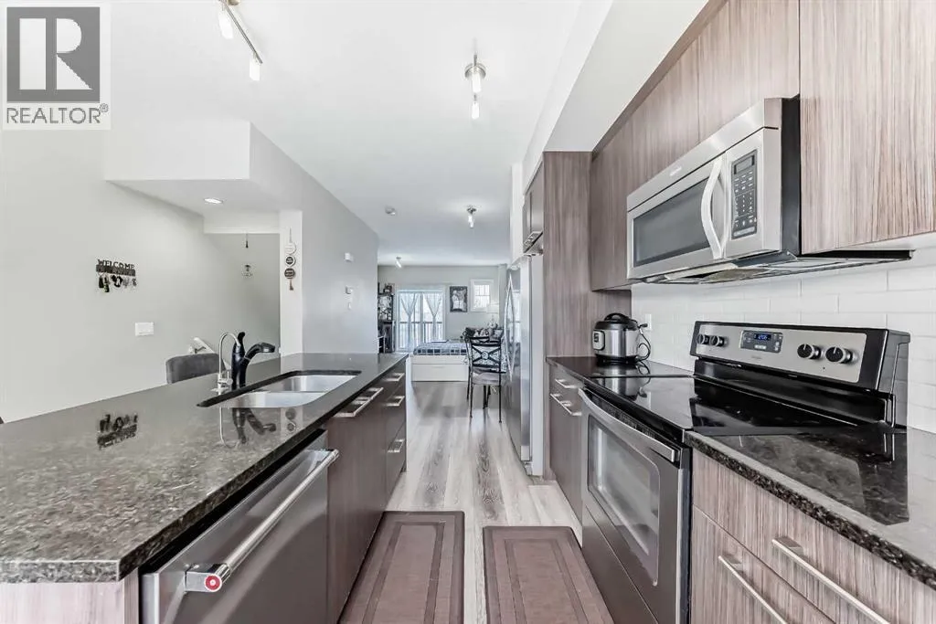 WELCOME TO CHESTERMERE MARINA DRIVE LIVING + LOW CONDO FEE + FRONT & BACK TWO BALCONIES + FRONT PRIVATE YARD + ATTACHED GARAGE + NEW A/C (2025) | NEW BLINDS (2026) | NEW 2-IN-1 WASHER/DRYER (2025) | GARAGE EPOXY.Fantastic opportunity to own a well-located home on Marina Drive STEPS FROM THE LAKE BEACH, AND directly across from a large plaza with GROCERY, BANKS, SHOP, and everyday amenities.The main floor offers a spacious entryway, sunny DEN, HOME OFFICE , HOME GYM OR EXTRA ROOM With 2-piece bath, and access to the attached garage with durable EPOXY FLOORâdesigned to protect the floor, extend the life of your garage, and give it a clean, modern finish. The modern kitchen features granite countertops, STAINLESS STEEL APPLIANCES , and a large eat-up island, with access to a private balcony with BBQ gas line. The open-concept living and dining area leads to a second sunny balcony, perfect for relaxing or entertaining.Upstairs youâll find 2 spacious BEDROOMS and a 4-piece BATHROOM.Enjoy an unbeatable lifestyle just minutes from the lake, BEACH, walking paths, schools, playgrounds, library, community centre, daycare, boating, swimming, and more. Move-in ready with great upgrades and an incredible location. DREAMING OF LUXURY LAKESIDE LIVING? THIS IS YOUR CHANCE, DONâT MISS THIS STUNNING OPPORTUNITY!â (id:27476)