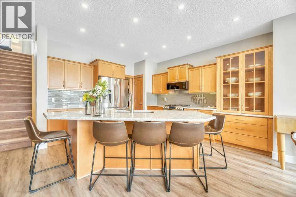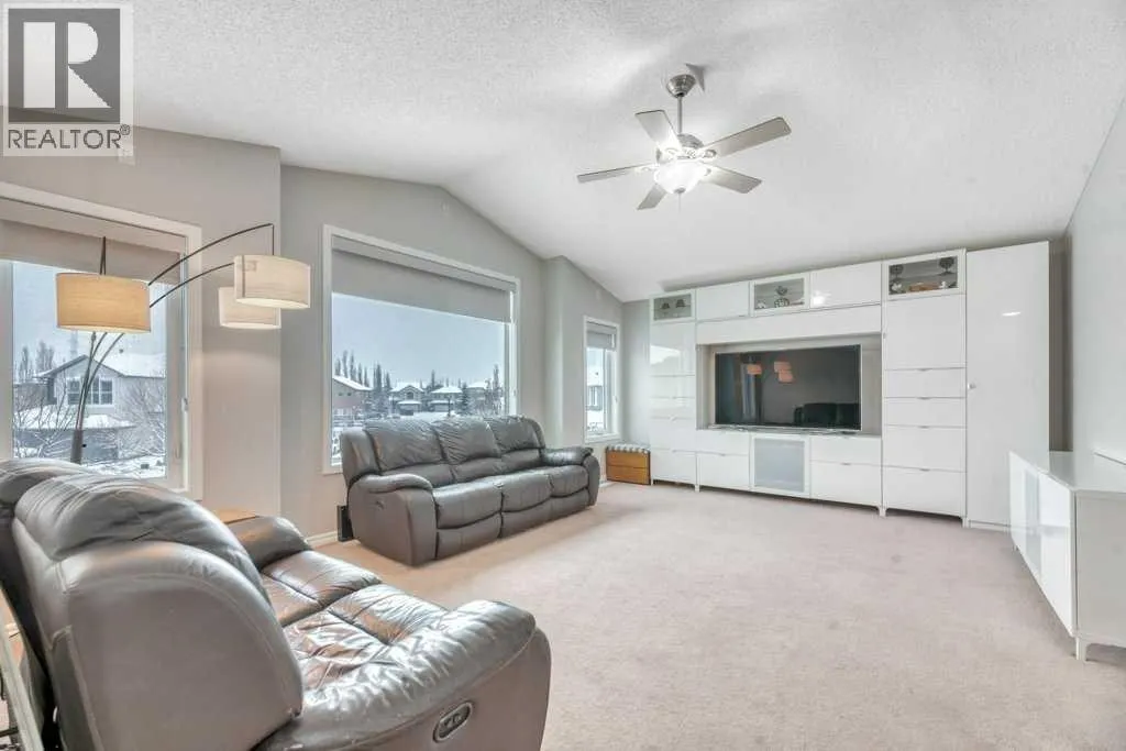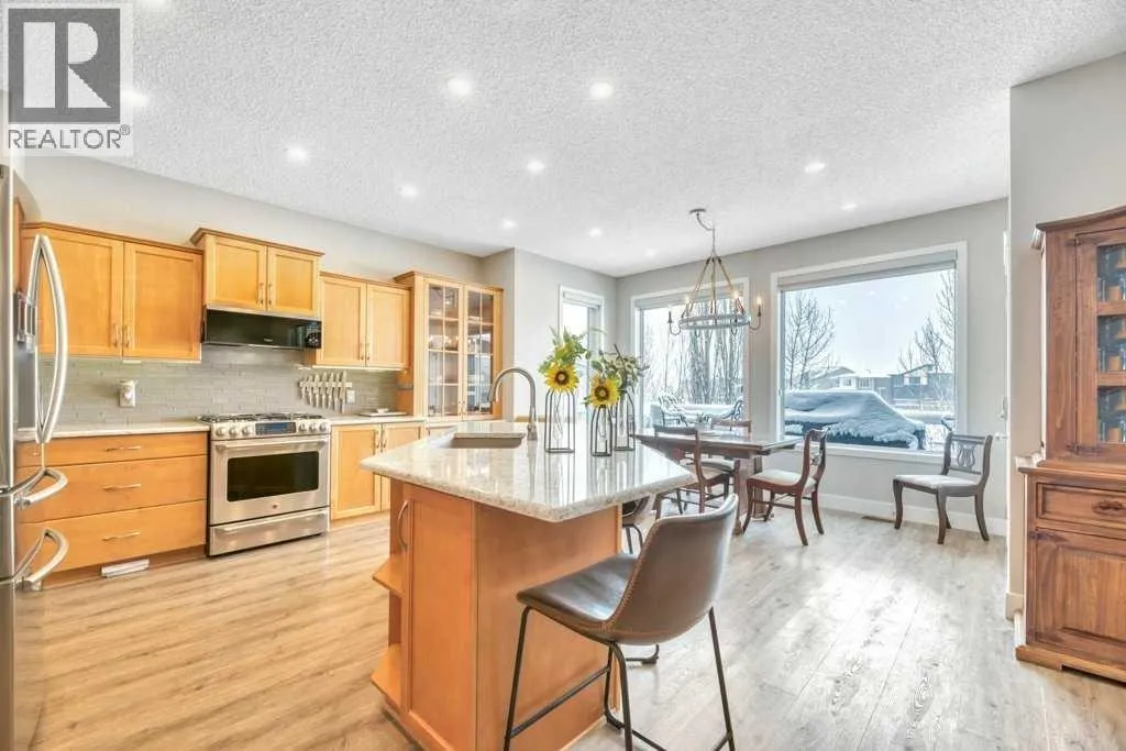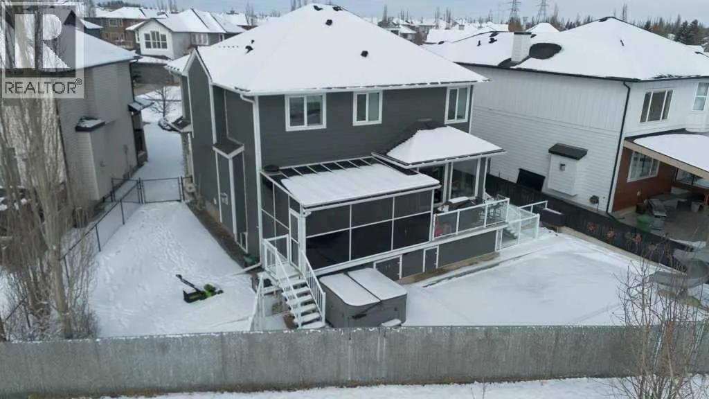 OPEN HOUSE Sat. Mar. 14 12:00-2:00 ---Luxury canal-front living with a private backyard resort in Rainbow Falls. Tucked away on a quiet street and backing directly onto the scenic canal pathways, this beautifully maintained original-owner home offers a lifestyle that is rarely available in Chestermere.The south-facing backyard is a true retreat, featuring a low maintenance, heated outdoor pool (16x30) with a hard locking safety cover, hot tub, expansive patio, sunroom, fenced dog run, and large side yard â all perfectly positioned to take in the peaceful canal views. A private gate provides direct access to the pathway system and the lake just a short walk away.Inside, the home welcomes you with a large entrance and bright front office, ideal for working from home. The open concept main floor is designed for entertaining with a spacious living room, gas fireplace, and a stunning kitchen featuring quartz countertops, a large gathering island, gas stove, walk-through pantry, and a dining area overlooking the pool and canal.Upstairs, the impressive vaulted bonus room with oversized windows creates a perfect family gathering space. The primary retreat is truly special, with corner windows capturing beautiful canal views, a walk-in closet, and a spa-inspired 5-piece ensuite. Two additional bedrooms complete the upper level.The fully finished basement provides additional living space with a fourth bedroom, full 4pce bath and a flexible workshop/office area.For car lovers or hobbyists, the heated quad attached garage (tandem bay) includes 240V wiring, hot and cold water sink with a dedicated hobby space.Extensive upgrades include triple-pane windows, Hunter Douglas blinds with room-darkening shades, air conditioning, Hardy board siding, Class 4 impact resistant shingles, commercial 6" eaves, Gemstone Lights and fresh paint throughout the entire home.This is a rare opportunity to own a canal-front home with a private pool and resort-style backyard in one of C hestermereâs most sought-after communities. (id:27476)