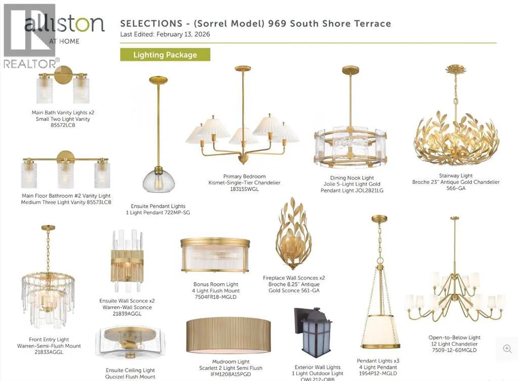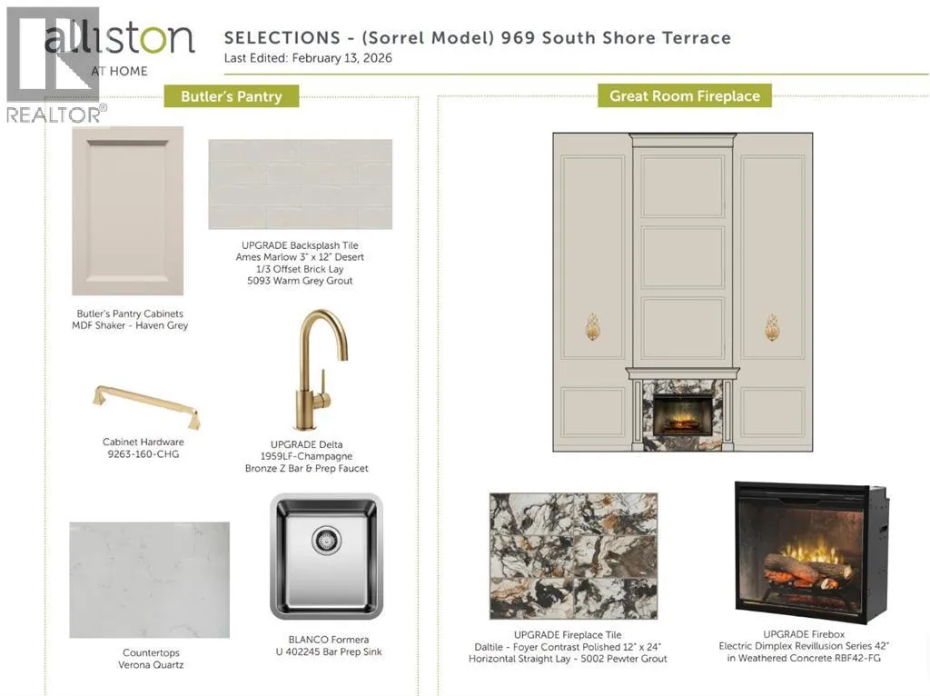 Award-winning Alliston at Home presents an exceptional estate home in the prestigious lakeside community of South Shore in Chestermere. This elegant residence features shy of 2900 sq. ft. of beautifully designed living space, offering 4 bedrooms, 3 full bathrooms, and a separate entrance to the basement, ready for your design ideas. This Home offers space for the whole family to grow and is located just steps from the lake. Step inside to airy 9' ceilings and engineered hardwood floors that span the expansive main floor. The showstopper kitchen is complemented by upgraded floor-to-ceiling two-tone cabinetry, an extensive island with quartz countertops, sleek stainless-steel appliances with a gas range, and a butler's pantry offering additional prep space. The open-concept dining room and living room are perfect for entertaining, and the living room features a striking floor-to-ceiling fireplace. The main-floor bedroom is perfect for multigenerational living, with a full bathroom and an oversized walk-in shower. The mudroom off the triple-attached garage is a great space for all the kids' odds and ends and keeps life organized. Step outside to the impressive 23' deck, perfect for outdoor dining, summer gatherings, or relaxing evenings. Upstairs, the Home offers a thoughtfully designed retreat for the entire family. The primary suite is a private sanctuary featuring a large walk-in closet and a luxurious 5-piece spa-inspired ensuite with a soaker tub and oversized walk-in shower. Two additional bedrooms with walk-in closets, another full 5-piece bathroom with dual sinks, make kids' bedtime a breeze; the upper laundry adds convenience; and a generous family/bonus room provides space for both relaxation and everyday living. The unfinished basement with 9' ceilings and a separate entrance is ready for your design ideas. Located in the highly sought-after South Shore community, this Home offers easy access to Chestermere Lake, scenic walking paths, parks, schools, and con venient commuting to Calgary. (id:27476)