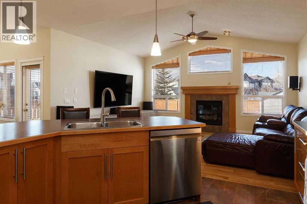 Pride of ownership shines throughout this beautifully maintained, original-owner home in the highly sought-after community of Rainbow Falls, Chestermere. Ideally situated on a quiet street and just steps from scenic walking paths leading to Lake Chestermere, Lakeside Golf Club, and two nearby schools, this corner-lot property sits on an expansive 6,000+ sq. ft. lot. Recently painted and featuring newer appliances, the home welcomes you with an open-concept main floor designed for both comfort and functionality. A front den offers the perfect space for a home office or childrenâs study. The chefâs kitchen boasts newer stainless steel appliances and flows seamlessly into the spacious living room highlighted by vaulted ceilings, creating an inviting space for family living and entertaining. Upstairs, youâll find three generously sized bedrooms, including a primary retreat complete with a large walk-in closet and a spa-inspired ensuite. The two additional bedrooms each feature their own walk-in closets and share a convenient Jack-and-Jill bathroom. The large, open basement with in floor heating is ready for your personal design and finishing touches. Outside is where this home truly stands outâa massive, park-like backyard thatâs perfect for summer entertaining, kids, pets, or simply relaxing in your own private outdoor oasis. This is a rare opportunity to own a meticulously cared-for home in one of Chestermereâs most desirable neighborhoods. Call your favorite REALTOR® today to book your private showing. (id:27476)