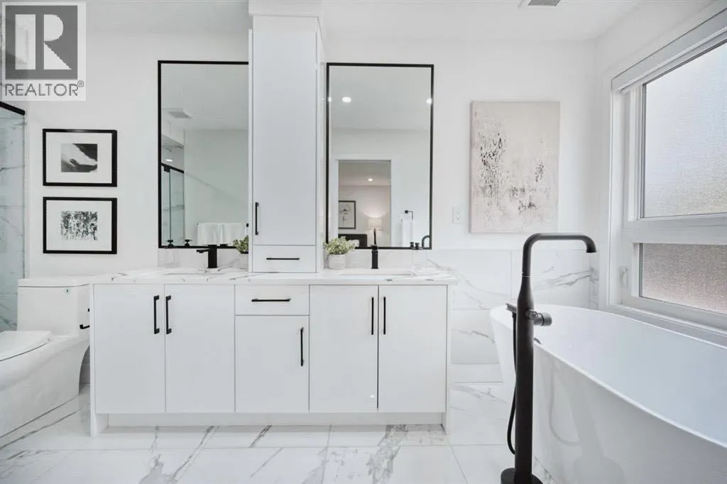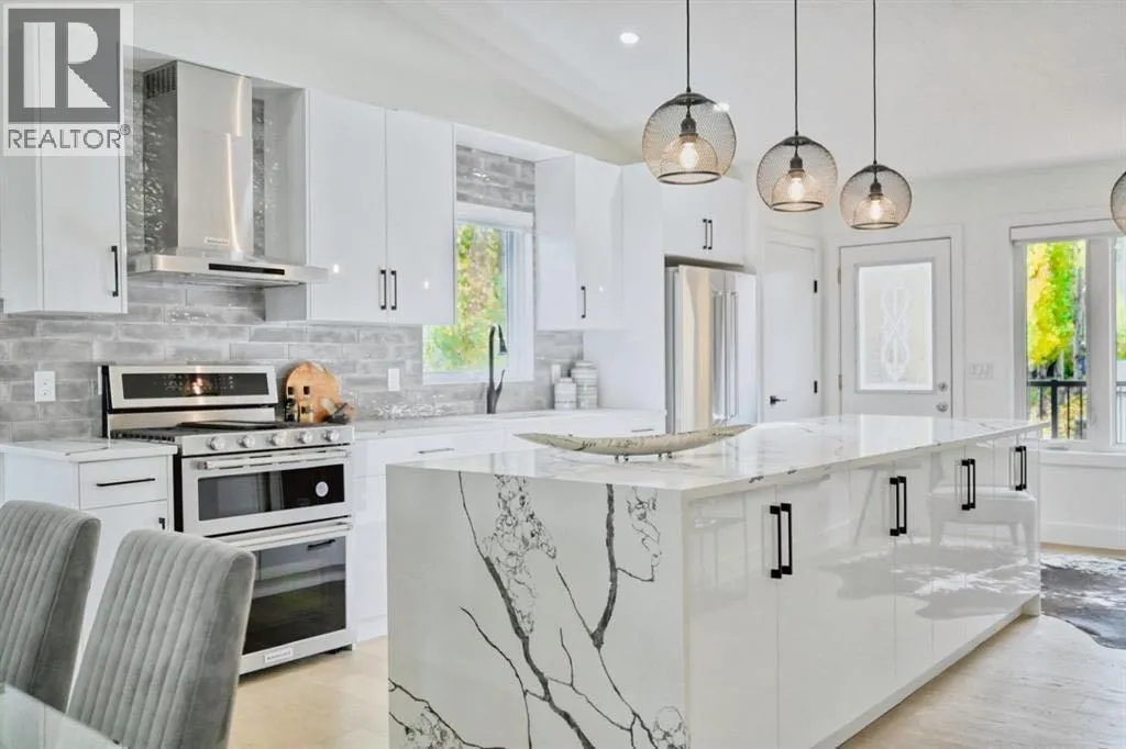 Modern Bilevel Home on Expansive Lot in Chestermere Lake!! Welcome to this beautifully updated bilevel home, perfectly situated on a sprawling 10,000+ sq. ft. lot in the sought-after community of Chestermere Lake. Showcasing contemporary design and exceptional curb appeal, this property offers the perfect blend of comfort, style, and outdoor living. Step inside to discover a bright, open-concept layout highlighted by soaring vaulted ceilings and an abundance of natural light. The modern gourmet kitchen seamlessly connects to the spacious living and dining areasâideal for both everyday living and entertaining. The main floor features a luxurious primary bedroom complete with a walk-in closet and a spa-inspired ensuite. A second bedroom, elegant full bathroom, and convenient main floor laundry complete this level. The fully developed lower level offers incredible versatility, featuring a large recreation and entertainment area, an additional bedroom, and a full bathroomâperfect for guests or extended family. Outside, enjoy your private backyard oasis with ample space for relaxation and outdoor gatherings, enhanced by brand-new concrete work and updated stucco finishes. With plenty of parking and impressive modern upgrades throughout, this home is truly move-in ready. Donât miss this exceptional opportunityâschedule your private showing today! (id:27476)