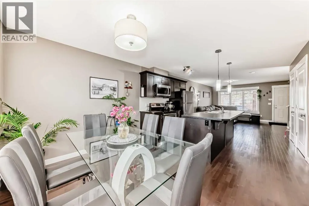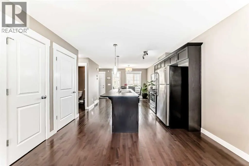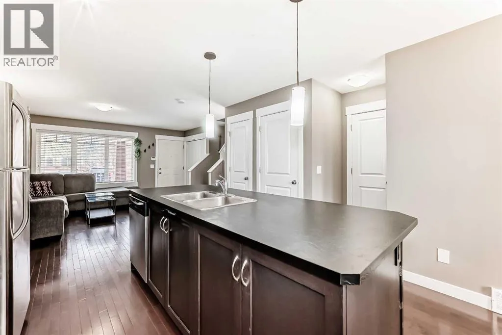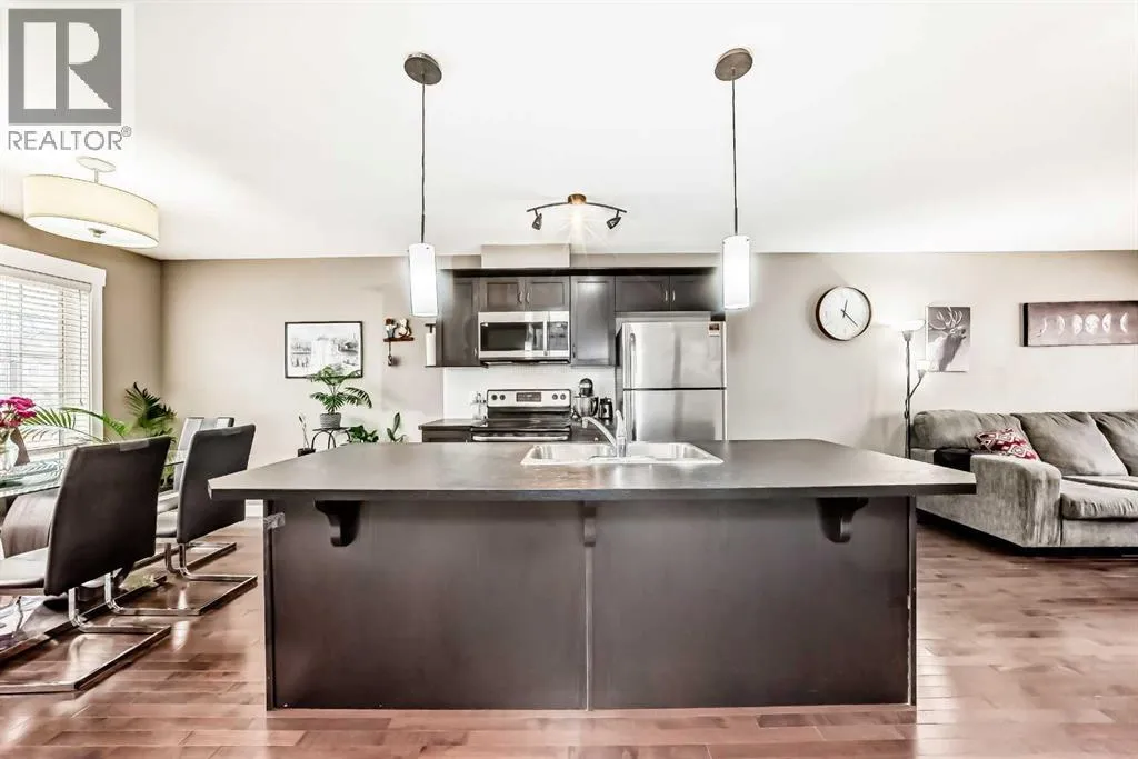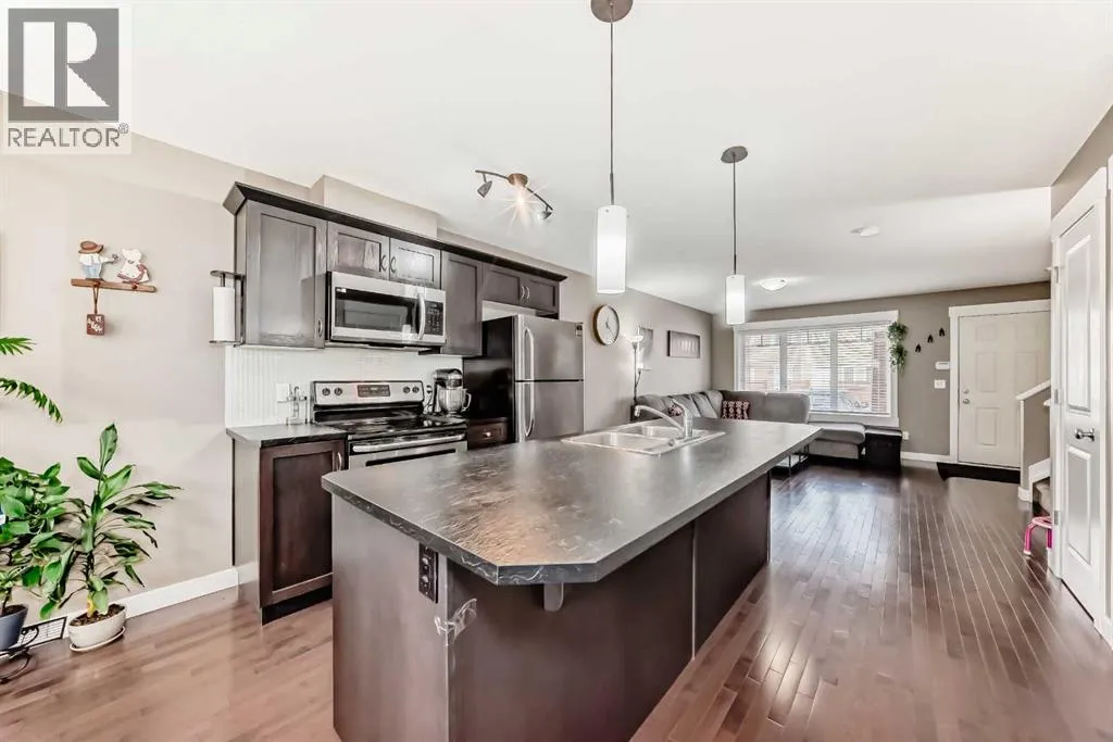 Are you a first time buyer? Two roommates looking to invest together? This is a perfect property for you. Cascades of Rainbow Falls is a community within Chestermere Lake with quick access to the City of Calgary. This well-maintained townhome backs directly onto greenspace and a playground, an ideal setting for young families. Beautifully presented, the home features gorgeous Maple hardwood flooring throughout the main level and welcomes you into a spacious, living room upon entry.The kitchen is designed for both everyday living and entertaining, showcasing stainless steel appliances and a large island that offers both style and functionality idea for creating gourmet meals A convenient 2-piece bathroom completes the main level.Upstairs, a bright and spacious multi purpose bonus room. An idea play room for the little ones a TV room or could be an at home office (This space could easily be made into a 3rd bedroom if required.) The primary bedroom has a full 4 PIECE ENSUITE, plus the second bedroom has access to its own 4-piece bathrooms making it idea for roommates! Providing comfort and convenience for everyday living.The unfinished basement is wide open for your creativity. Ideal for a bedroom, (there is an egress window) family room plus full bath since there is roughed-in plumbing. TWO PARKING STALLS, conveniently located Right in front of the home, another reason ideal for roommates! How many condos actually come with 2 Parking stalls?Chestermere offers an exceptional lifestyle with its scenic lake, along with a wide range of nearby amenities, shopping, and schools. Call your favorite realtor today to schedule a viewing! (id:27476)