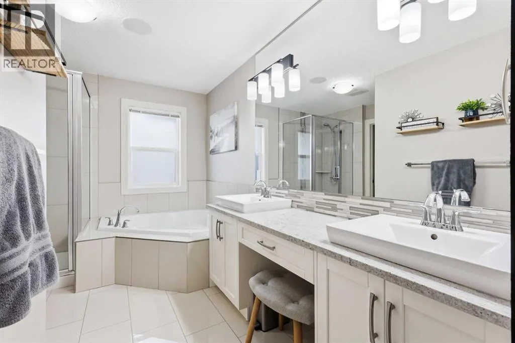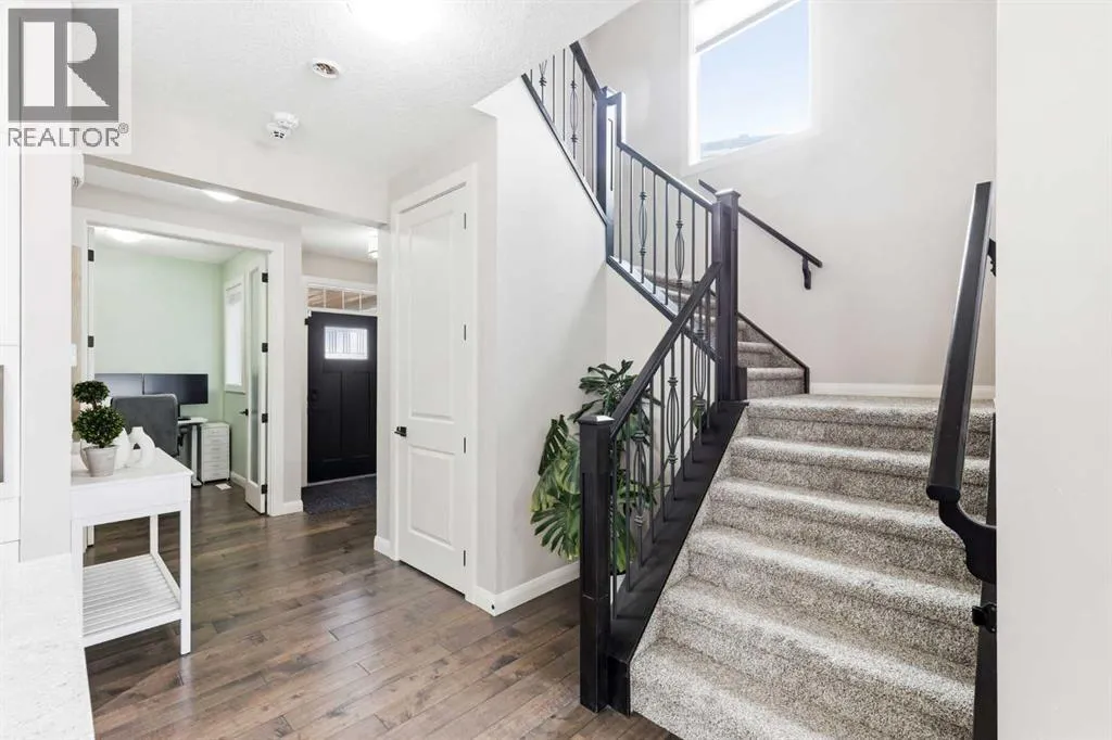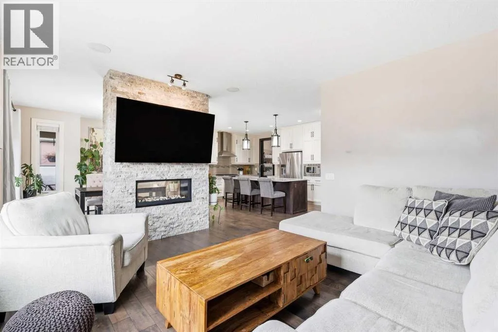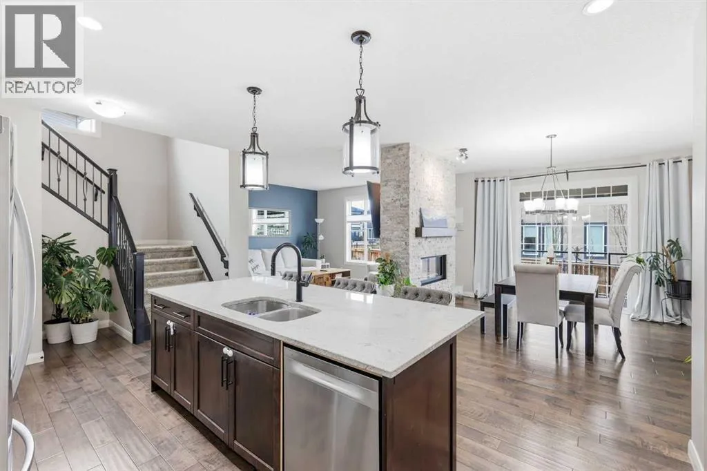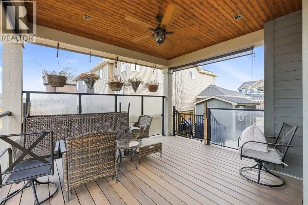 Welcome to 113 Kinniburgh Way, a stunning family home wrapped in premium concrete fibre siding, nestled in Chestermereâs highly desirable Kinniburgh community. Boasting over 2,400 sq. ft. of bright, above-grade living space, the open-concept main floor is elevated by soaring 9ft ceilings and built-in in-home speakers. The layout is designed for both entertaining and everyday life, featuring a dedicated home office, a spacious living and dining area, and a gorgeous kitchen showcasing granite counters and a walk-through pantry. This connects right to the mudroom and the oversized 24' x 22' heated double attached garage, complete with ample storage, and luxury Epoxy flooring, making Alberta winters a breeze.Upstairs, you'll find a massive family room perfect for movie nights, an upper-level laundry room, and three generous bedroomsâincluding a luxurious primary suite with a large walk-in closet and a spa-like 5-piece ensuite. The fully finished basement adds incredible value with a sprawling 25' x 25' rec room, a private fourth bedroom, and an additional full bath. Outside, your backyard oasis awaits: enjoy summer evenings on the maintenance-free composite covered deck complete with built-in lighting, overlooking a beautifully landscaped yard equipped with a convenient irrigation system and an oversized shed for extra storage. Located just minutes from Chestermere Lake, top-rated schools, and parks, this exceptional 4-bedroom, 3.5-bath home truly has it all, including A/Câschedule your private showing today! (id:27476)