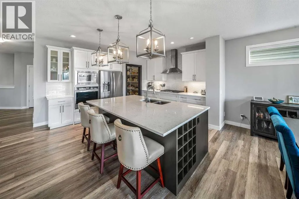 AMAZING LOCATION & LOADED WITH UPGRADES! Rare opportunity to own a truly exceptional home in an unbeatable location, sun filled SW backing onto scenic waterways and walking paths and facing a park out front. Situated on one of the largest lots on the street with a sun-filled backyard, homes like this rarely come available.This impeccably maintained, fully developed home offers an open and functional layout with 4 bedrooms and 3.5 bathrooms. Soaring ceilings, massive windows, and modern wide plank flooring create a bright and inviting space. The large family room is centered around a gas fireplace, adding warmth and a beautiful focal point.The chef-inspired kitchen features stone countertops, a massive island, built-in oven and microwave, 5-burner gas stove, hood fan, wine fridge, and a walkthrough pantry with possible potential for a spice kitchen. A main floor den, mudroom with built-ins, and access to the triple attached garage (drywalled, insulated, and high ceilings) add to the functionality.Upstairs includes 3 bedrooms plus a large bonus room with new carpet throughout. Two bedrooms are set in their own wing with walk-in closets and a well-designed shared bath. The primary suite overlooks the canal and features a large walk-in closet with custom built-ins, convenient laundry access, and a spa-like ensuite with dual vanities, glass shower, and jetted soaker tub.The fully developed basement offers a large rec space, 4th bedroom, full bath, and ample storageâideal for a media room, gym, or extended family.Enjoy the beautifully landscaped yard with a multi-level enclosed deck, aggregate concrete, and shed. Additional features include 2 A/C units, central vacuum, custom window coverings, and many more upgrades throughout.A one-of-a-kind home in a truly exceptional setting. (id:27476)