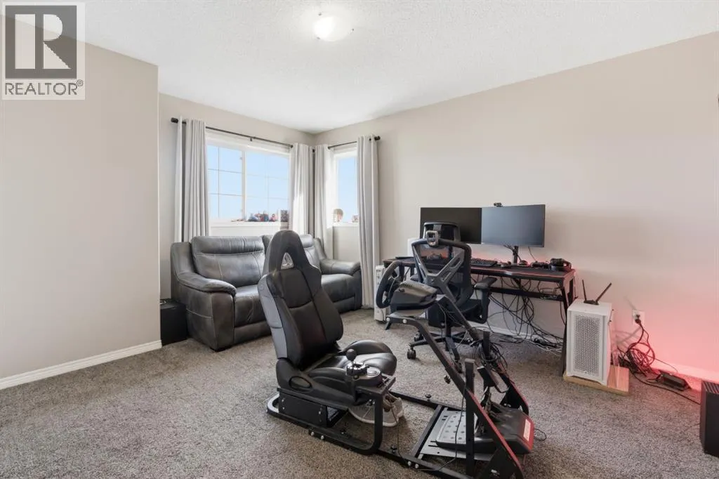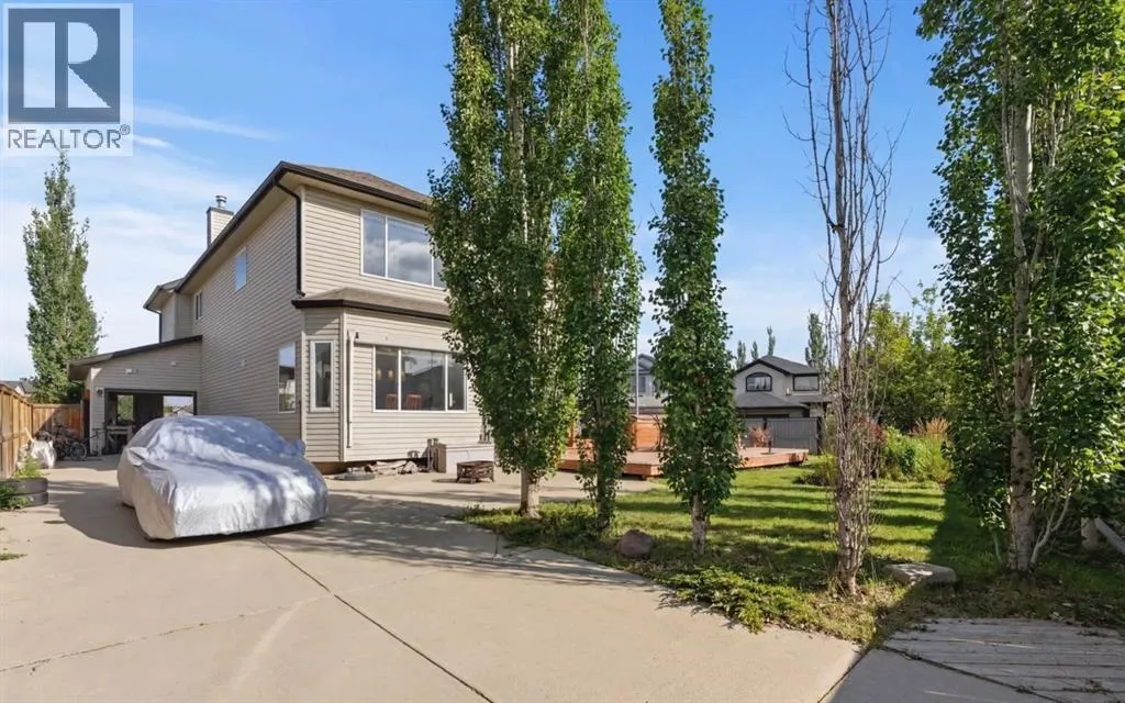ABSOLUTELY STUNNING home on a RARE 8,848 SQFT CORNER, PIE-SHAPED LOT in one of Chestermereâs most desirable neighbourhoods! This property offers an incredible combination of space, privacy, and functionality with dual access driveways, one in the front and a MASSIVE concrete driveway in the back with gate access to the alley, perfect for storing multiple vehicles, trailers, or recreational toys.Boasting 2,664 SQFT of beautifully maintained living space, this home showcases true pride of ownership and is in IMMACULATE condition. Inside, youâre welcomed by soaring OPEN-TO-ABOVE ceilings and an abundance of windows that flood the home with NATURAL LIGHT from every angle. The main floor features 9â ceilings, a spacious front office, convenient laundry room, and a bright, open-concept living area ideal for both everyday living and entertaining.The chef-inspired kitchen is equipped with built-in appliances, a gas stove, and a walk through pantry, seamlessly connecting to the dining area with picturesque views of the expansive, professionally landscaped SOUTH facing backyard. Step outside to enjoy the large patio and deck with gas hookup, perfect for summer BBQs and relaxing evenings with full PRIVACY.Upstairs, youâll find a generous primary retreat with new carpet, large windows overlooking the sunny yard, a spacious walk-in closet, and a luxurious 5-piece ensuite. Two additional bedrooms, including one with another walk-in closet, a full 4-piece bath, a versatile bonus room with vaulted ceilings, and SECONDARY built-in office nook complete the upper level. Perfect for those working from home.The unfinished basement offers 9â ceilings, two furnaces, and bathroom rough-ins providing endless potential for future development. The roof was replaced in 2015, adding further peace of mind.With a HEATED TRIPLE CAR GARAGE, exceptional indoor outdoor flow, and one of the most UNIQUE and FUNCTIONAL LOTS youâll find, this property delivers unmatched value. Surrounded by parks and pat hways just steps away, this is a rare opportunity to own a truly special home that checks every box. (id:27476)