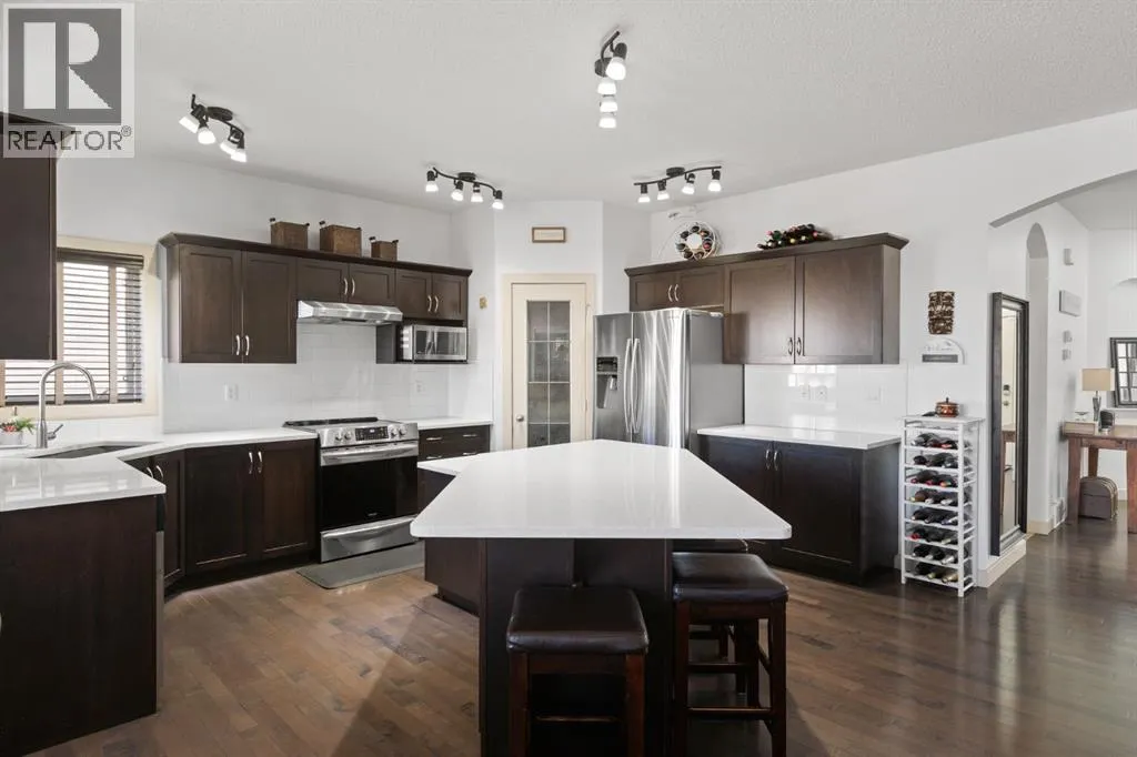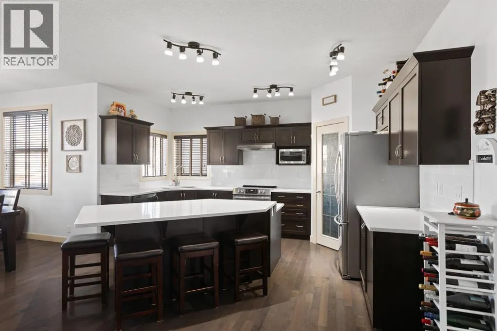 *OPEN HOUSE SAT MARCH 28 2:00-4:00* Beautifully maintained home being sold for the 1st time! Located on a quiet and well established street in Rainbow Falls, within walking distance to all amenities. Wonderful floor plan with 3 bedrooms, 2.5 bathrooms and nearly 2500 SQ FT! You will be immediately impressed by the vaulted entrance and bright, natural light. The main floor boasts HARDWOOD FLOORS, 9 FT CEILINGS and an open concept with tons of windows. The kitchen is set up perfectly for cooking and entertaining, with a MASSIVE QUARTZ ISLAND, stainless steel appliances, dark maple cabinetry and a convenient walk-thru pantry. Carry your groceries directly from the garage, straight into the kitchen. There is also an office space with French doors and 2-pc guest washroom on the main level. Head upstairs to your incredible owners retreat, equipped with its own relaxation nook, to enjoy lounging or reading. 5-pc ensuite has DUAL VANITIES, SOAKER TUB and WALK IN CLOSET. Two more bedrooms, a 4-pc bathroom and a sun filled bonus room complete the upper level. Basement has been framed and is awaiting your creative touch. The backyard features a large deck, screened pergola and lush and private landscaping. Storage shed and fire pit are included. HEATED GARAGE with ample shelving and large driveway. CENTRAL AIR CONDITIONING and GAS FIREPLACE will keep you comfortable all year long. Other bonuses include: TANKLESS HOT WATER HEATER, sump pump, central vacuum and 2 high efficiency furnaces. This is a lovingly maintained ORIGINAL OWNER HOME in a family friendly community. Within walking distance to the Elementary school, Middle school, Seagreen community gardens, hockey rink, skate park, community waterfalls and Chestermere Lake - You will LOVE living here! Book a showing before it's too late and CHECK OUT THE 3D VIRTUAL TOUR! (id:27476)