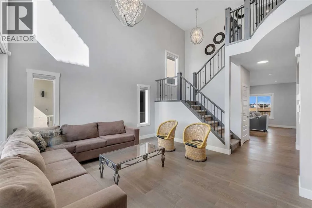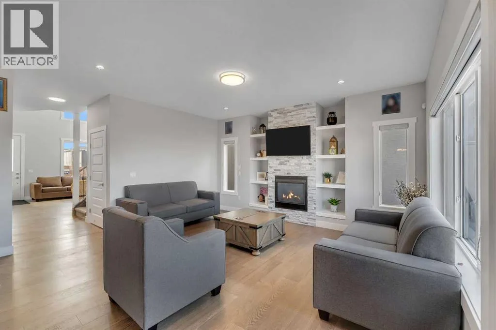 [OPEN HOUSE THIS SATURDAY - MARCH 28 - 2PM TO 4PM] BACKING ONTO GREEN SPACE/PLAYGROUND!! WALKOUT BASEMENT WITH 2 BED ILLEGAL SUITE!! SEPARATE ENTRANCE!! 6 BED 4.5 BATH!! OVER 4110 SQFT OF LIVING SPACE!! ROUNGH-IN FOR LAUNDRY ON UPPER FLOOR IN MASTER CLOSET!! FUTURE HIGH SCHOOL COMING JUST STEPS AWAY!! CENTRAL A/C!! Step into a grand main floor featuring a stunning OPEN TO BELOW living area that instantly elevates the space with natural light and elegance. The layout flows seamlessly into the dining area and a warm, inviting family room with a GAS FIREPLACE. A bright breakfast nook overlooks the backyard, while the chef-inspired kitchen is truly the heart of the homeâcomplete with an ISLAND, premium stainless steel appliances, SPICE KITCHEN, walk-in pantry, and extensive cabinetry throughout. A convenient 2PC bath completes this level. Upstairs offers 4 spacious bedrooms and 3 full baths, along with an open-to-below feature overlooking the main living area and grand entrance. The PRIMARY BEDROOM is a private retreat with a luxurious 5PC ENSUITE and walk-in closet. The second bedroom features its own 3PC ENSUITE, while the remaining two bedrooms share a well-appointed 3PC bath. Laundry rough-in is also conveniently located on this level. The WALKOUT BASEMENT features a 2 BED ILLEGAL SUITE with a separate entrance, full kitchen, living area, 4PC bath, and SEPARATE LAUNDRYâideal for extended family or additional income potential. Backing directly onto GREEN SPACE and walking paths in Chelsea with a future school, this home offers privacy, views, and a lifestyle thatâs hard to find. RARE OPPORTUNITY TO OWN A LUXURY HOME IN A PRIME LOCATION!! (id:27476)