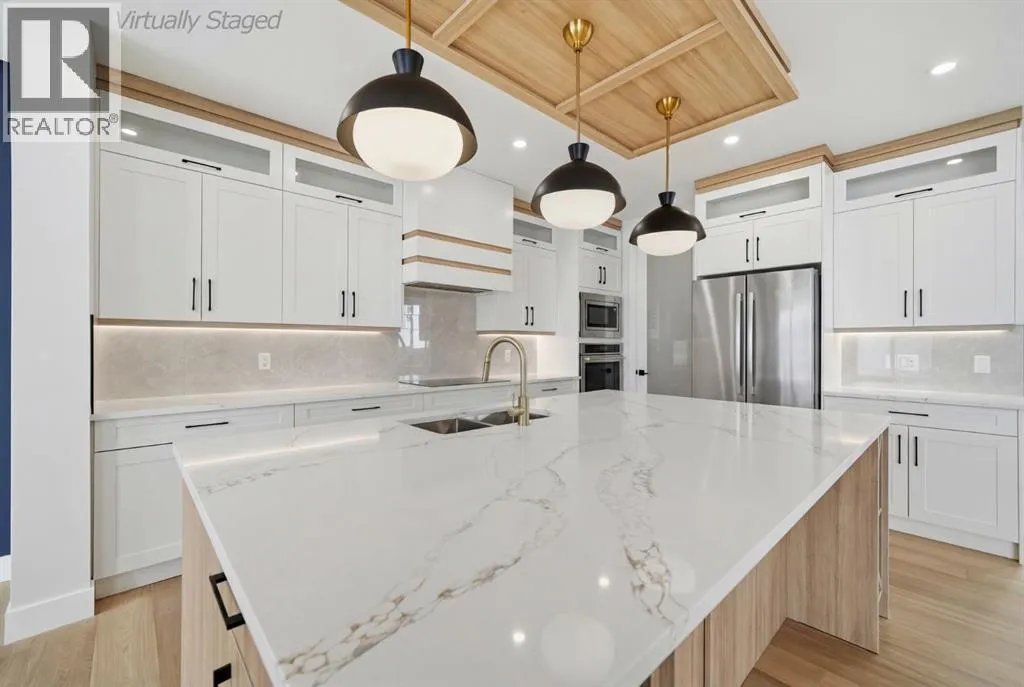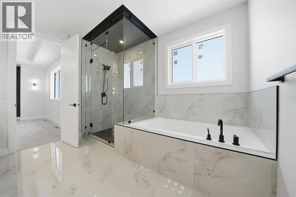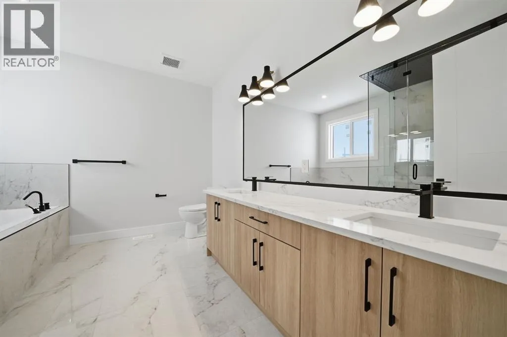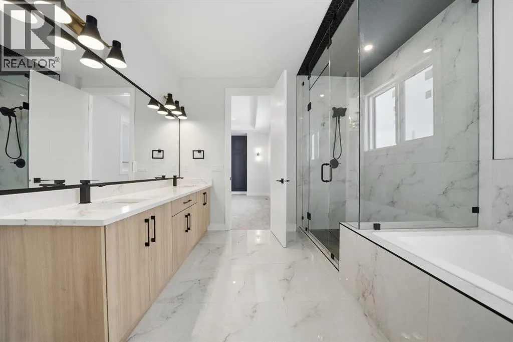 Welcome to this stunning, fully upgraded west-facing home in the highly sought-after community of Waterford Estates, offering over 3,300 sq. ft. of beautifully designed living space that perfectly blends luxury, comfort, and functionality. The main level features a bedroom with its own private en-suiteâideal for guests or multi-generational livingâalongside a grand open-concept layout with an impressive open-to-below feature that fills the home with natural light. The chef-inspired kitchen boasts quartz countertops, upgraded lighting, and a separate spice kitchen, complemented by a spacious dining area, mudroom, and powder room. Upstairs, youâll find two impressive primary-style bedrooms, each with its own en-suite, including a luxurious main primary retreat with a spa-inspired 5-piece bathroom, along with two additional generously sized bedrooms and a full washroom. This exceptional home also offers a separate basement entrance for future potential or income opportunities and sits on a premium lot with green space on one side, providing added privacy and extra outdoor enjoyment, all while being conveniently located near schools, shopping, and everyday amenities. (id:27476)