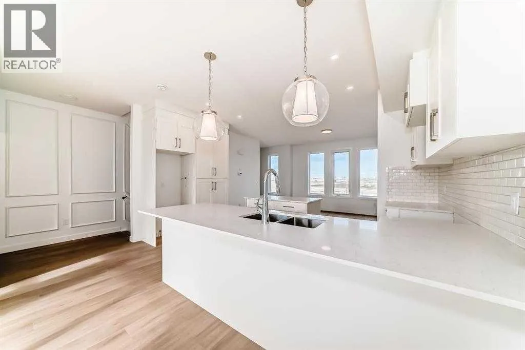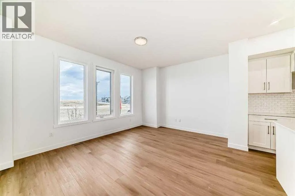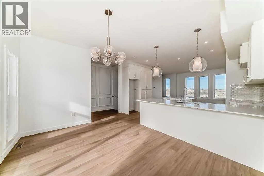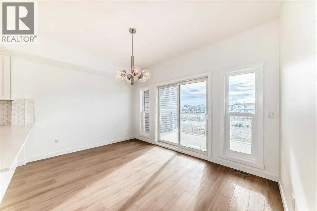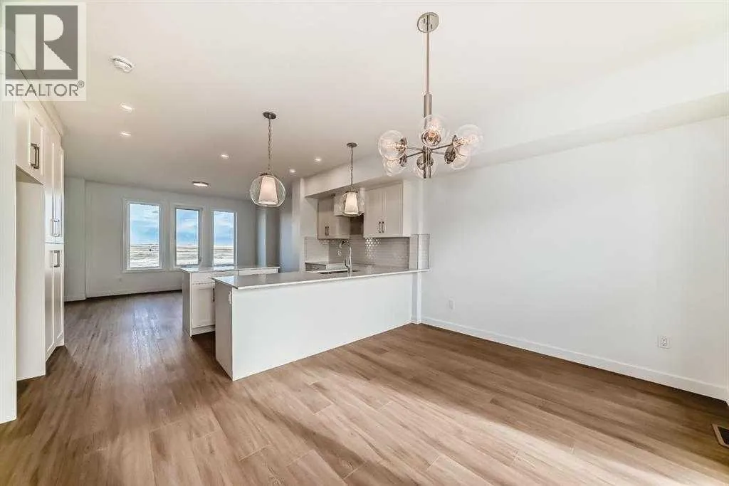 Welcome to your brand new, never-lived-in townhome in the heart of Chestermere! This fully upgraded home offers 3 spacious bedrooms, 2.5 bathrooms, a versatile main-floor den, and a double car garage â perfect for families, professionals, or anyone who values flexible living space. Tucked away in a quiet, family-friendly neighbourhood, youâll love the sense of peace and comfort this home provides. The main level features a bright den â ideal for a home office, guest suite, or even a personal gym. Head upstairs to the open-concept second floor, where sunlight fills the living area with its high ceilings and modern design. The gourmet kitchen boasts quartz countertops, stainless steel appliances, full-height cabinetry, and a spacious dining area that flows seamlessly into the living room â complete with access to your private balcony, perfect for morning coffee or evening relaxation. On the upper level, the primary suite includes a large walk-in closet and a luxurious 5-piece ensuite. Two additional bedrooms share an upgraded 4-piece bath, and convenient upper-floor laundry makes daily life a breeze. With luxury vinyl plank flooring, modern finishes, and designer selections throughout, this move-in-ready home delivers incredible value. Located just minutes from Stoney Trail, Costco, golf courses, schools, parks, and Lake Chestermere, this townhome combines comfort, style, and unbeatable convenience. Donât wait â book your showing today and experience Chestermere living at its best! (id:27476)