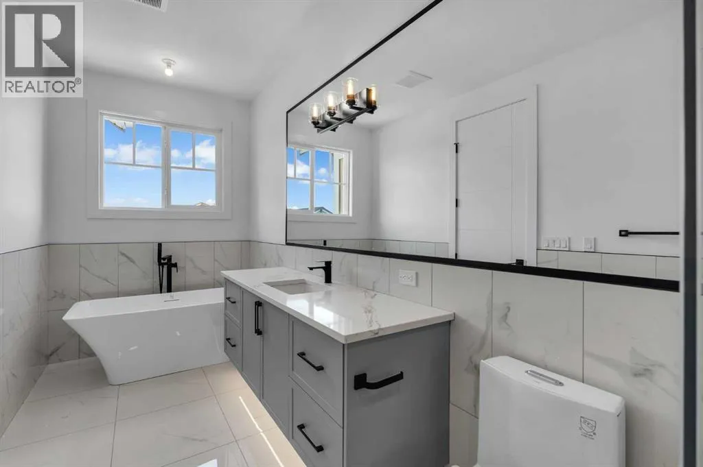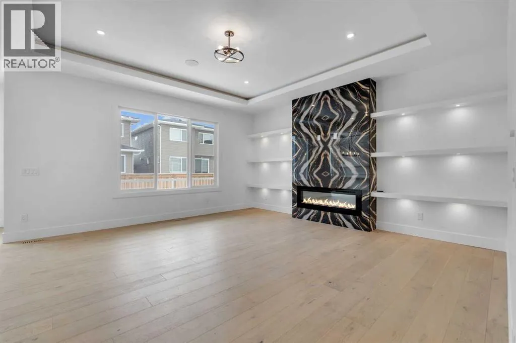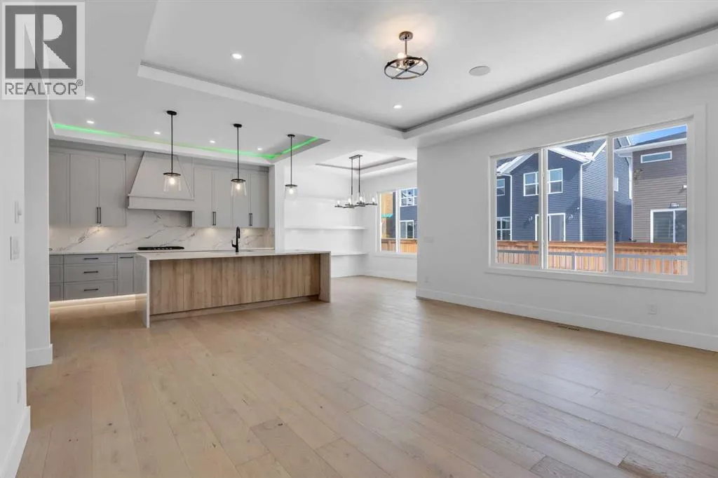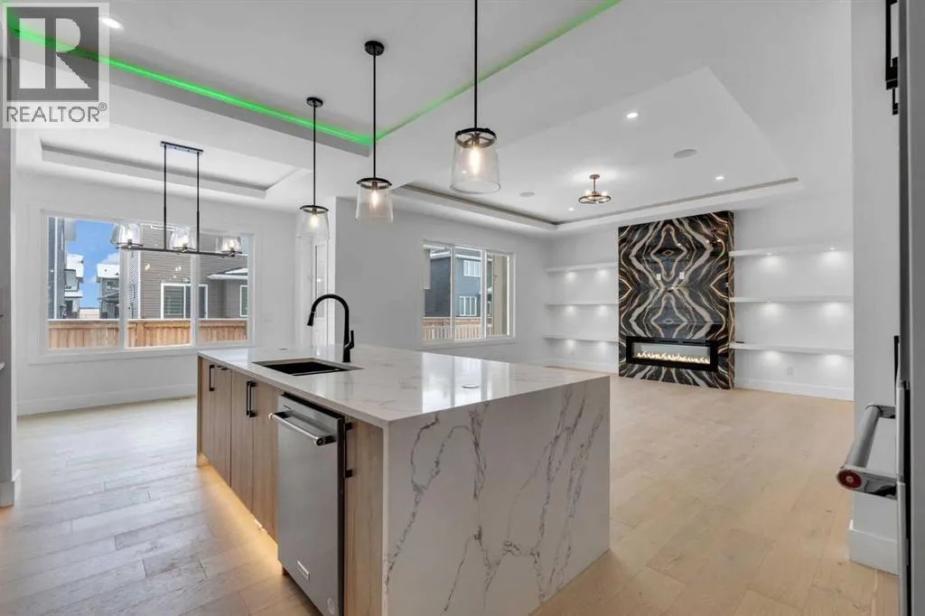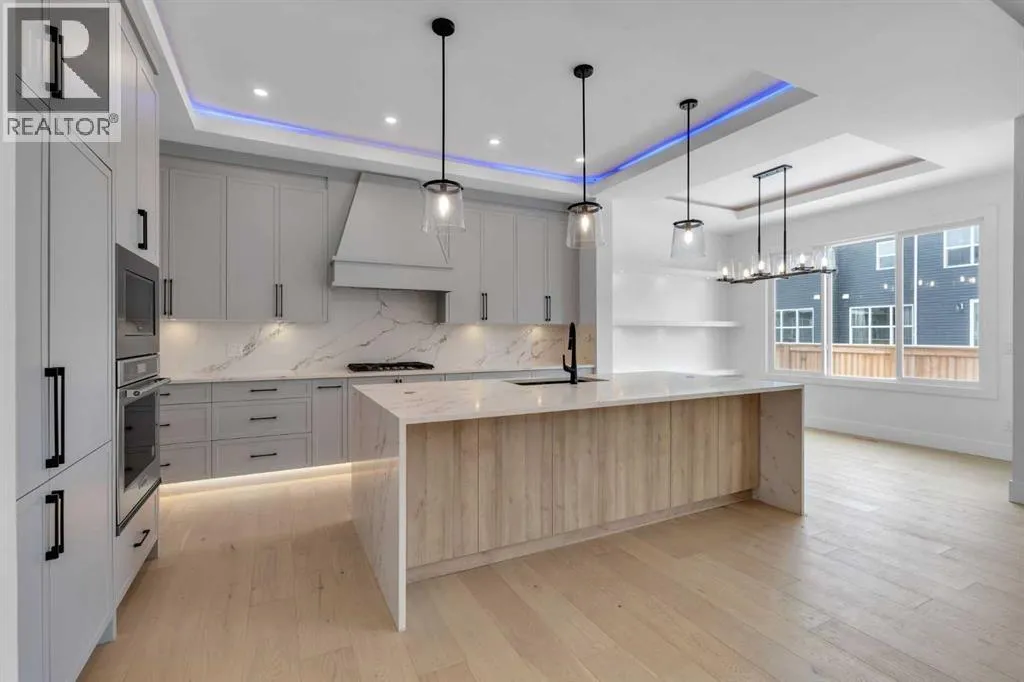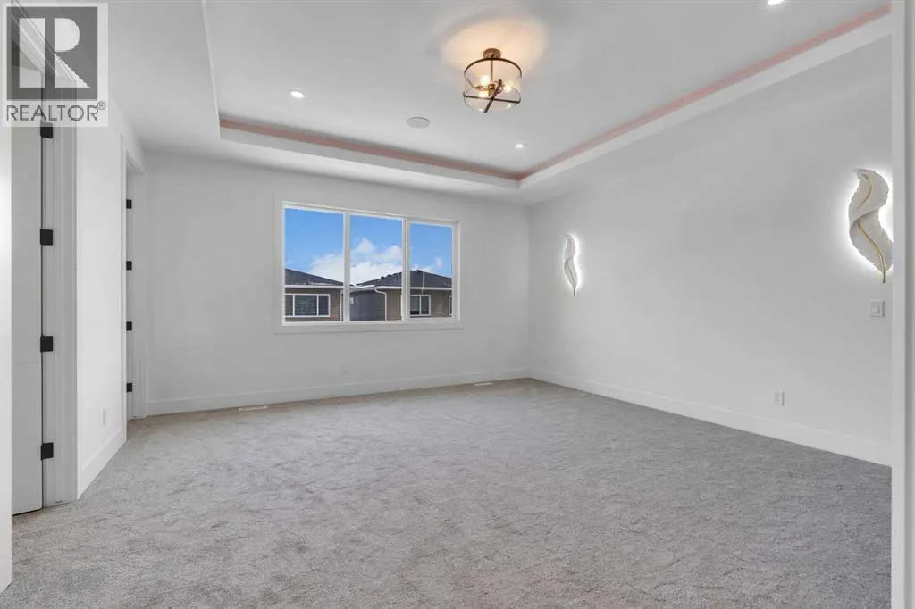 AMAZING OPTION FOR YOU - BUILDER WILLING TO BUILD A LEGAL SUITE W 2 BEDS & 1 FULL BATH (COST TO BE DETERMINED BASED ON REQUIREMENTS & LEGAL SUITE DEVELOPMENT IS SUBJECT TO CITY APPROVAL) - 10' CEILINGS ON MAIN FLOOR AND 9' ON UPPER FLOOR AND BASEMENT!!! OVER 3200 SQFT, BRAND NEW HOME, TRIPLE ATTACHED GARAGE, 5 BEDROOMS, 3.5 BATHROOMS, SIDE ENTRANCE TO BASEMENT - ELEGANT DESIGN AND MODERN FINISHING - This home in Kinniburgh is perfect for a large family and offers the convenience of being close to shops, schools, the lake and all that Chestermere has to offer. Walking in to your home you are greeted with a large foyer and storage space. A hallway connects a den (that can be used as a bedroom), and bathroom to the rest of the main living space. The TRIPLE ATTACHED GARAGE, opens into a mud room and SPICE KITCHEN which allows you to keep your home in pristine condition. The kitchen is a chef's dream with built in STAINLESS STEEL appliances, a large island and beautiful wood finished cabinets. A large living room is warmed with a TILE FACED FIREPLACE, and this space opens onto your DECK. The second floor boasts 4 bedrooms and 3 bathrooms. Including 1 primary ensuite with and expansive 5PC bathroom and a large walk in closet. This bathroom has a full size soak tub and dual vanities. Another bedroom is complete with an ensuite bathroom and walk in closet. 2 other bedrooms and 1 bathroom, laundry and a large family room complete this floor. Welcome to your home! Please note that front landscaping and finishing will be done including a tree. Option for the builder to develop the basement already includes SIDE ENTRANCE. Interior pictures are from another home built by the builder. (id:27476)