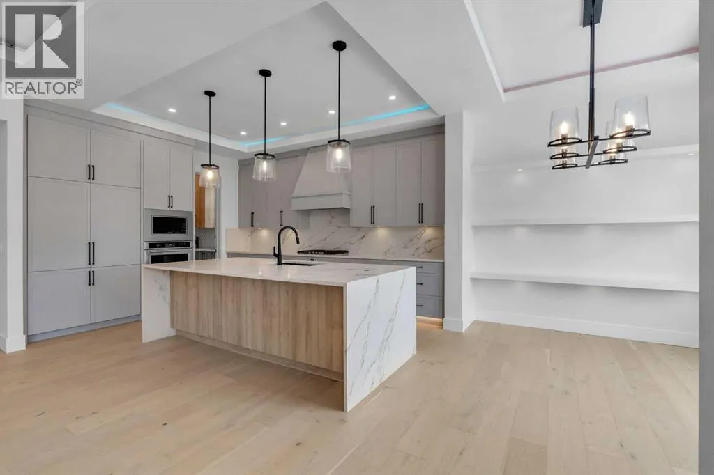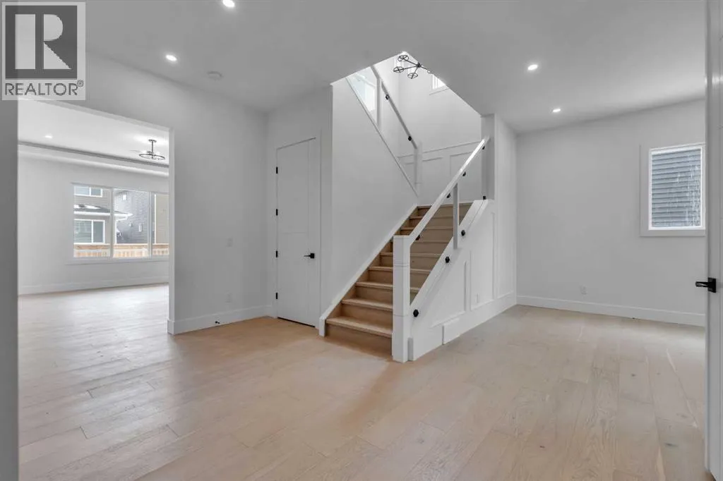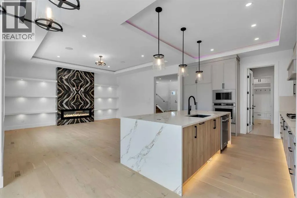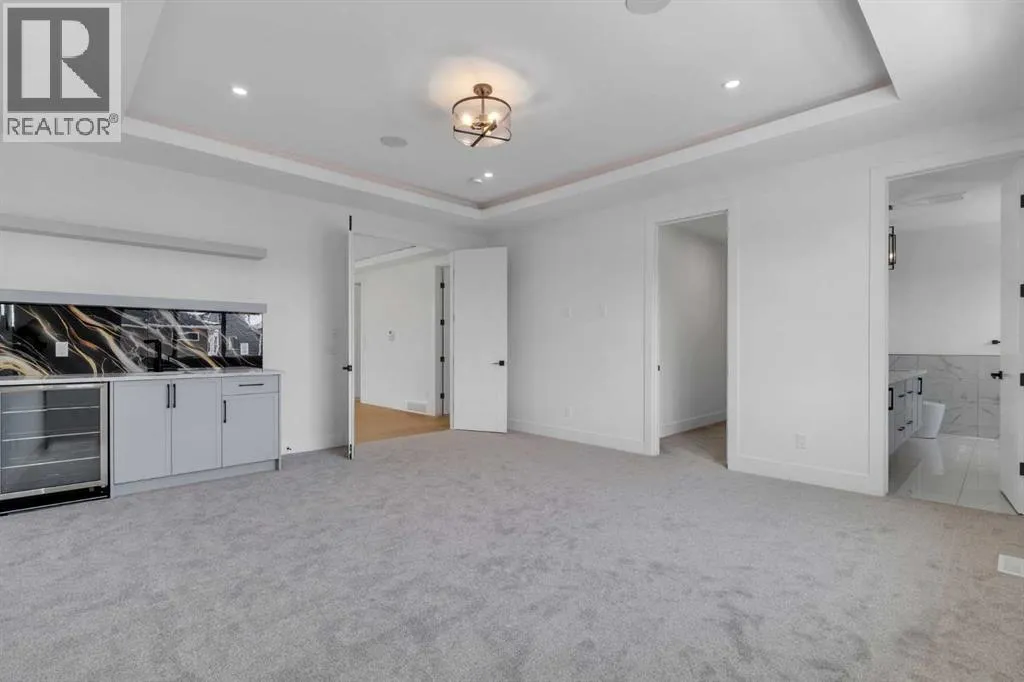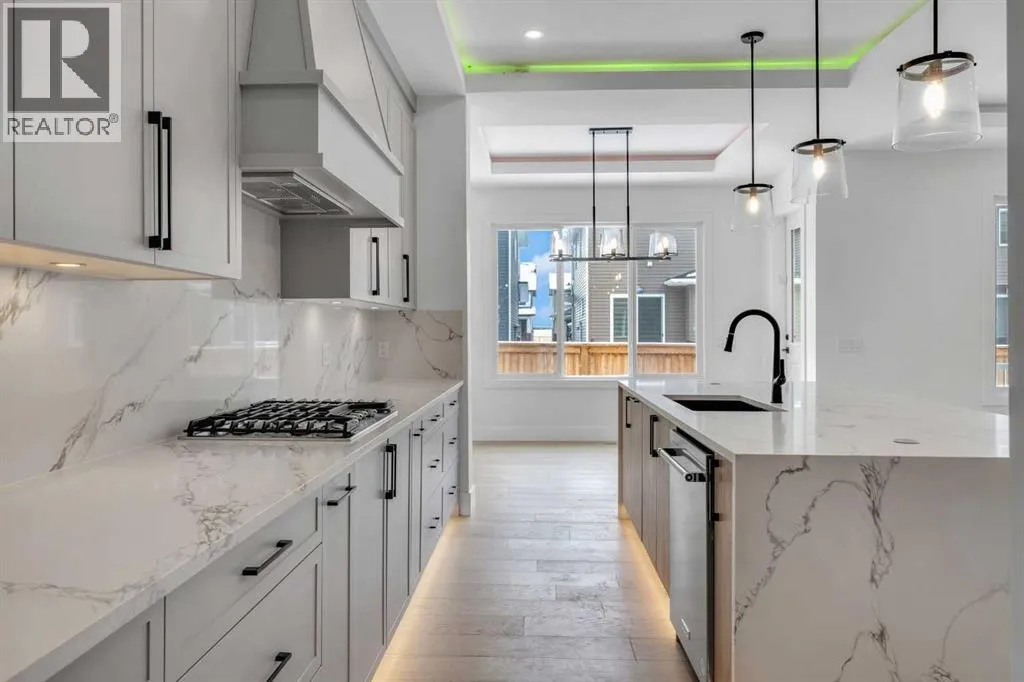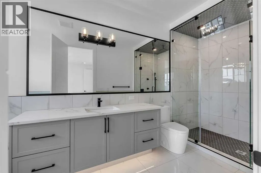 AMAZING OPTION FOR YOU - BUILDER WILLING TO BUILD A LEGAL SUITE W 2 BEDS & 1 FULL BATH (COST TO BE DETERMINED BASED ON REQUIREMENTS & LEGAL SUITE DEVELOPMENT IS SUBJECT TO CITY APPROVAL) - 10' CEILINGS ON MAIN FLOOR AND 9' ON UPPER FLOOR AND BASEMENT!!! OVER 3200 SQFT, BRAND NEW HOME, TRIPLE ATTACHED GARAGE, 5 BEDROOMS, 3.5 BATHROOMS, SIDE ENTRANCE TO BASEMENT - ELEGANT DESIGN AND MODERN FINISHING - This home in Kinniburgh is perfect for a large family and offers the convenience of being close to shops, schools, the lake and all that Chestermere has to offer. Walking in to your home you are greeted with a large foyer and storage space. A hallway connects a den (that can be used as a bedroom), and bathroom to the rest of the main living space. The TRIPLE ATTACHED GARAGE, opens into a mud room and SPICE KITCHEN which allows you to keep your home in pristine condition. The kitchen is a chef's dream with built in STAINLESS STEEL appliances, a large island and beautiful wood finished cabinets. A large living room is warmed with a TILE FACED FIREPLACE, and this space opens onto your DECK. The second floor boasts 4 bedrooms and 3 bathrooms. Including 1 primary ensuite with and expansive 5PC bathroom and a large walk in closet. This bathroom has a full size soak tub and dual vanities. Another bedroom is complete with an ensuite bathroom and walk in closet. 2 other bedrooms and 1 bathroom, laundry and a large family room complete this floor. Welcome to your home! Please note that front landscaping and finishing will be done including a tree. Option for the builder to develop the basement already includes SIDE ENTRANCE. Interior pictures are from another home built by the builder. (id:27476)