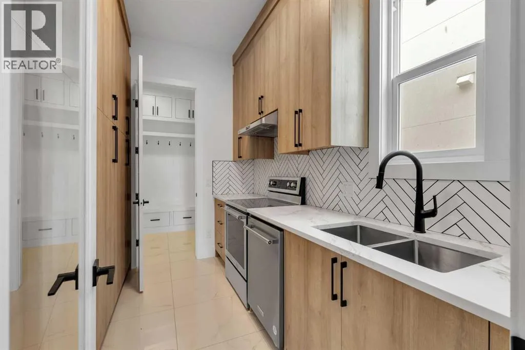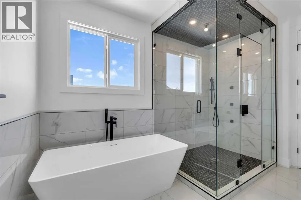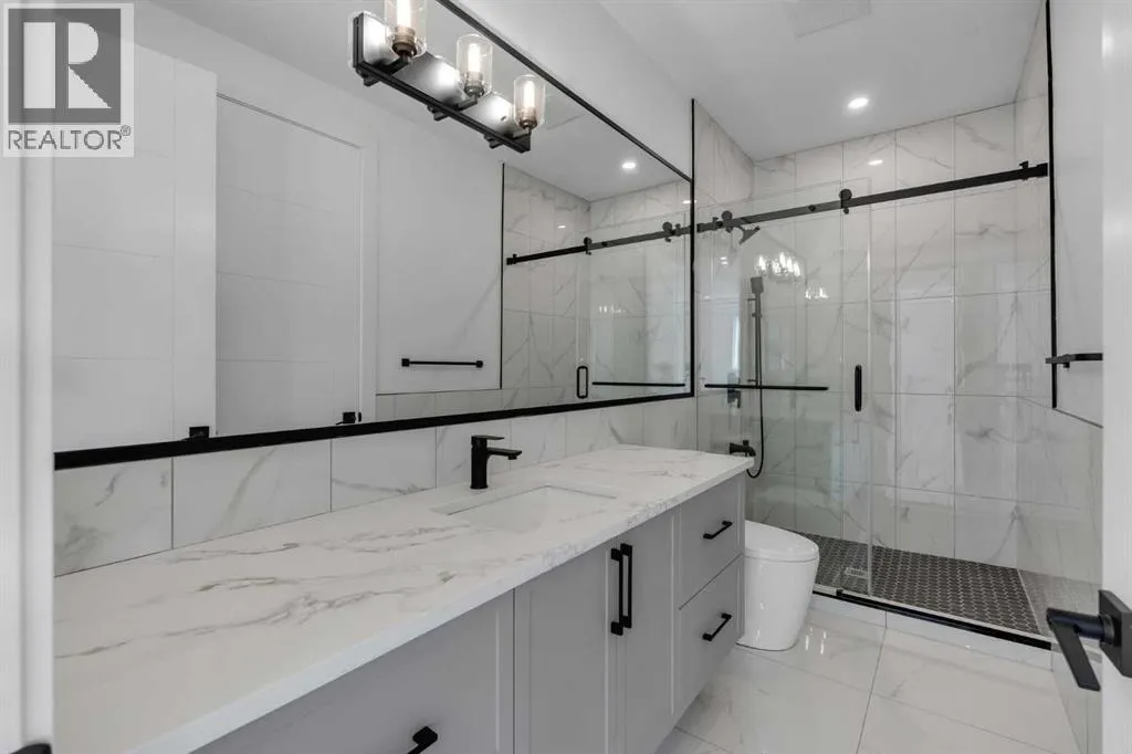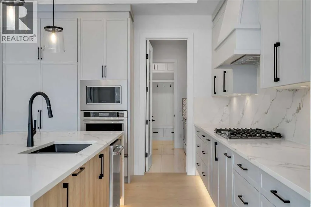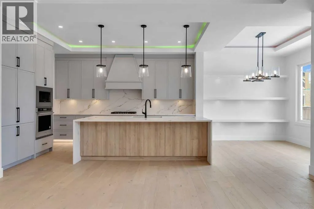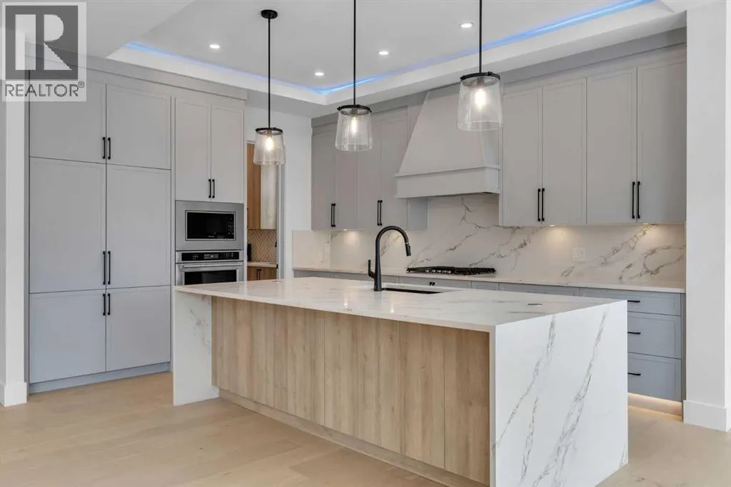 AMAZING OPTION FOR YOU - BUILDER WILLING TO BUILD A LEGAL SUITE W 2 BEDS & 1 FULL BATH (COST TO BE DETERMINED BASED ON REQUIREMENTS & LEGAL SUITE DEVELOPMENT IS SUBJECT TO CITY APPROVAL) - 10' CEILINGS ON MAIN FLOOR AND 9' ON UPPER FLOOR AND BASEMENT!!! OVER 3200 SQFT, BRAND NEW HOME, TRIPLE ATTACHED GARAGE, 5 BEDROOMS, 3.5 BATHROOMS, SIDE ENTRANCE TO BASEMENT - ELEGANT DESIGN AND MODERN FINISHING - This home in Kinniburgh is perfect for a large family and offers the convenience of being close to shops, schools, the lake and all that Chestermere has to offer. Walking in to your home you are greeted with a large foyer and storage space. A hallway connects a den (that can be used as a bedroom), and bathroom to the rest of the main living space. The TRIPLE ATTACHED GARAGE, opens into a mud room and SPICE KITCHEN which allows you to keep your home in pristine condition. The kitchen is a chef's dream with built in STAINLESS STEEL appliances, a large island and beautiful wood finished cabinets. A large living room is warmed with a TILE FACED FIREPLACE, and this space opens onto your DECK. The second floor boasts 4 bedrooms and 3 bathrooms. Including 1 primary ensuite with and expansive 5PC bathroom and a large walk in closet. This bathroom has a full size soak tub and dual vanities. Another bedroom is complete with an ensuite bathroom and walk in closet. 2 other bedrooms and 1 bathroom, laundry and a large family room complete this floor. Welcome to your home! Please note that front landscaping and finishing will be done including a tree. Option for the builder to develop the basement already includes SIDE ENTRANCE. Interior pictures are from another home built by the builder. (id:27476)