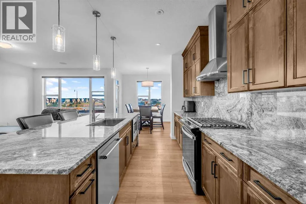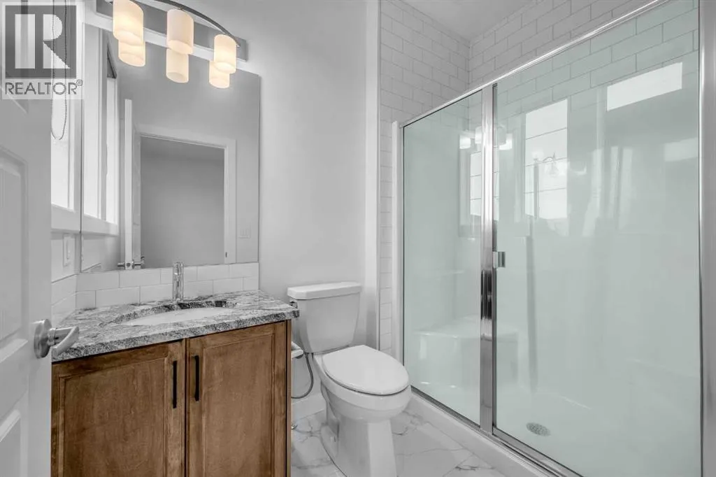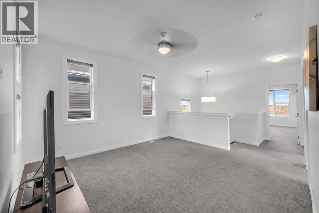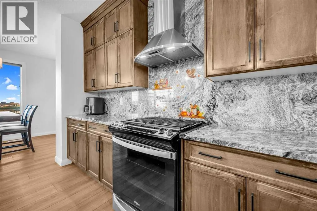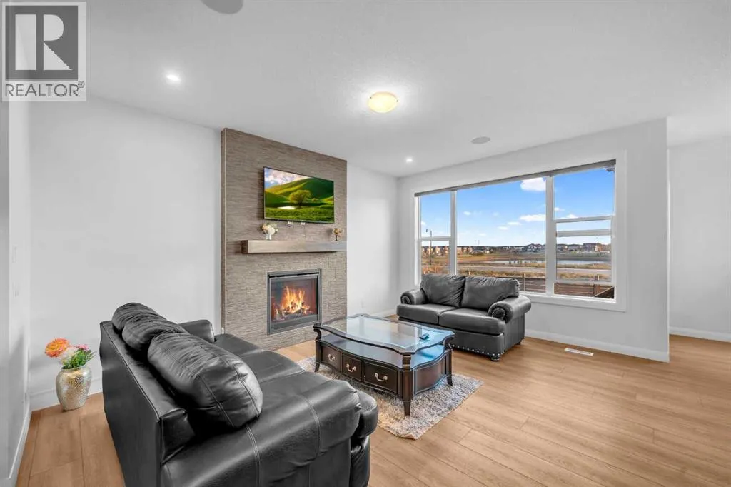 Welcome to this exceptional north-facing residence that seamlessly blends luxury, space, and thoughtful design, highlighted by, OVERSIZED TRIPLE garage with extended length, large enough to comfortably accommodate a LONG PICKUP TRUCK while still offering plenty of room for additional vehicles or storage, making it a true standout in todayâs market. From the moment you step inside, the home impresses with soaring 9 ft ceilings on the main floor, upper level, and even the basement, creating a sense of brightness, openness, and sophistication across all levels. The heart of the home is the beautifully upgraded kitchen, featuring a striking waterfall granite oversized island that doubles as both a design centerpiece and a practical workspace, surrounded by granite countertops that extend throughout the entire house, including the kitchen backsplash and all bathrooms. Ceiling-height upgraded cabinets provide maximum storage while enhancing the elegant look, while the built-in appliance package, complete with a gas stove, makes this kitchen a dream for home chefs and entertainers alike. The open-concept design flows seamlessly into the living room, where a gas fireplace offers warmth and charm, complemented by built-in speakers that create a perfect setting for family movie nights, parties, or simply enjoying music in a relaxing environment. The main floor also offers incredible flexibility with a spacious den that can easily serve as a full bedroom, large enough to accommodate a king-size bed, making it ideal for guests, extended family members, or even as a private office space. Upstairs, the luxury continues with the rare feature of double master bedrooms, each offering its own ensuite for privacy and convenience, while the additional bedrooms are all generously sized with large windows and thoughtful layouts, ensuring comfort for every member of the household. The basement adds even more potential with a separate side entrance, legal-sized window, and rough-in plumbin g, providing a perfect opportunity to develop a future legal suite for rental income, an additional living area for extended family, or a recreational space tailored to your lifestyle. Every detail in this home has been carefully chosen to combine beauty with function, from the granite finishes throughout to the upgraded cabinetry, built-in appliances, waterfall island, and the warmth of the gas fireplace. The north-facing orientation enhances the balance of natural light throughout the day, keeping the home bright yet energy-efficient. With its extended triple garage, high ceilings on all levels, versatile main floor den, gourmet kitchen with premium finishes, spacious double master bedrooms, and basement designed for future development, this home offers everything a modern family could want while also providing long-term value. (id:27476)