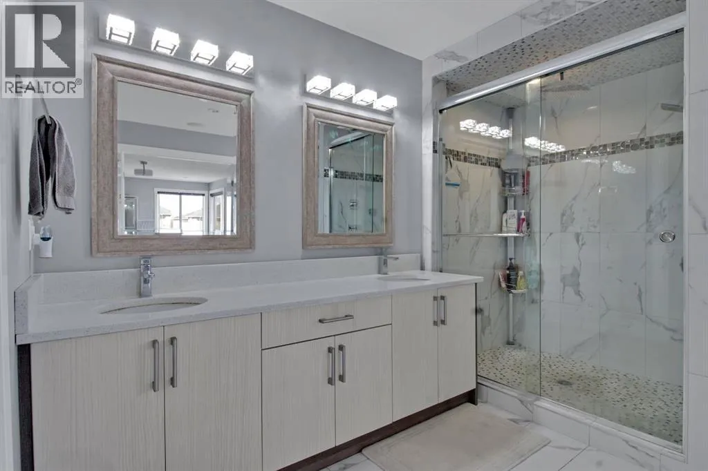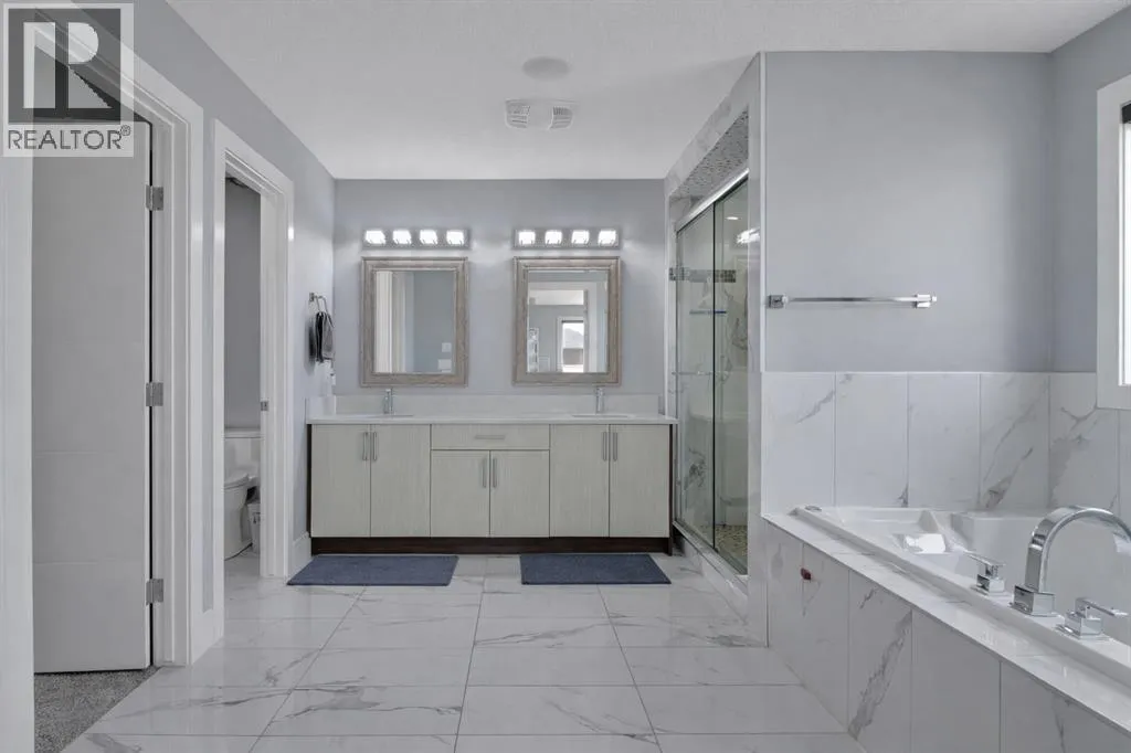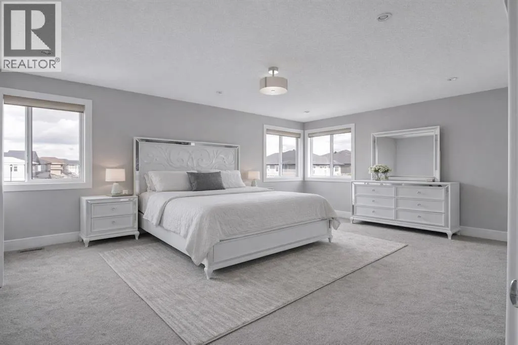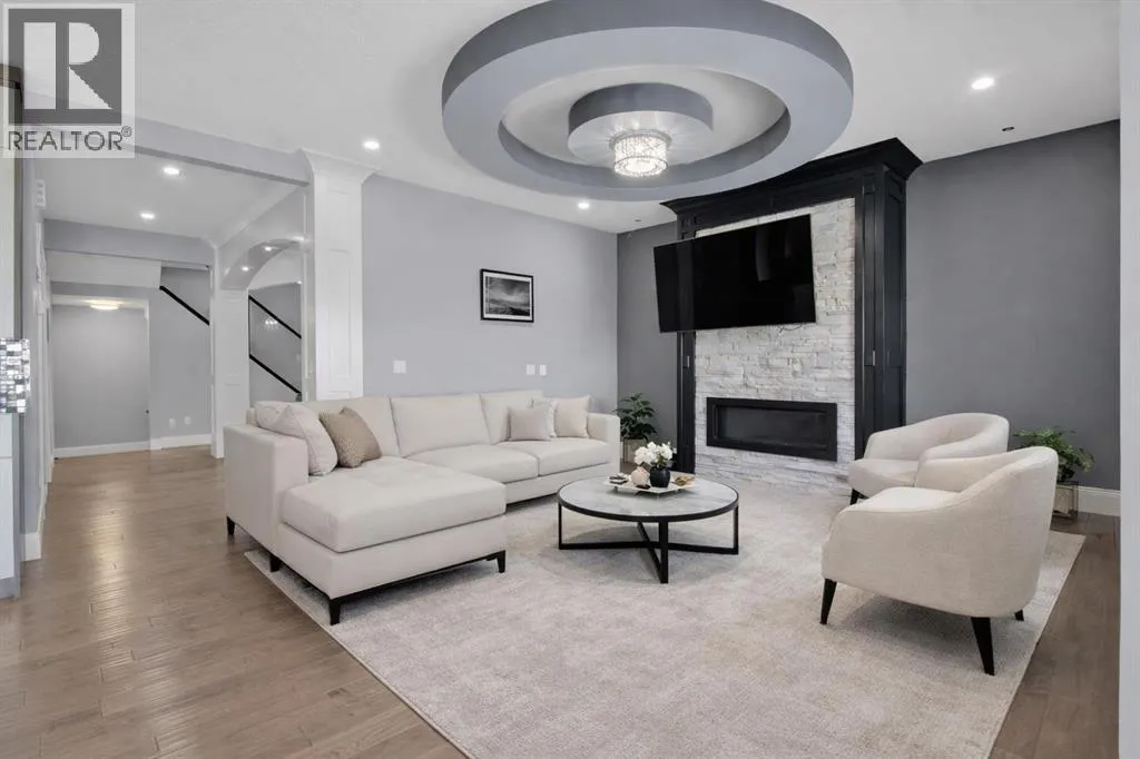 Welcome to this stunning home in the sought-after community of Kinniburgh sits on a Greenspace lot, offering exceptional curb appeal and a rare triple attached garage. Featuring 6 bedrooms and 5 full bathrooms, this home is designed for both comfort and elegance.The main floor showcases gleaming tile and Brazilian hardwood flooring, a versatile formal room, and a private office with French doors. The heart of the home is a beautifully designed two-tone chefâs kitchen with granite countertops, high-end built-in appliances, and a large island overlooking the inviting family room with a modern fireplace. A bright breakfast nook leads to a spacious deckâperfect for summer living.Upstairs offers a generous bonus room, multiple well-sized bedrooms, and a luxurious primary retreat complete with a spa-inspired ensuite. Basement is finished with separate walk-up entrance high ceilings, kitchen, spacious living area and 2bed/1bath. Book your private showings today! (id:27476)
