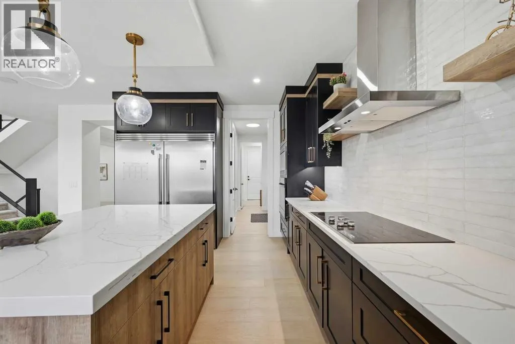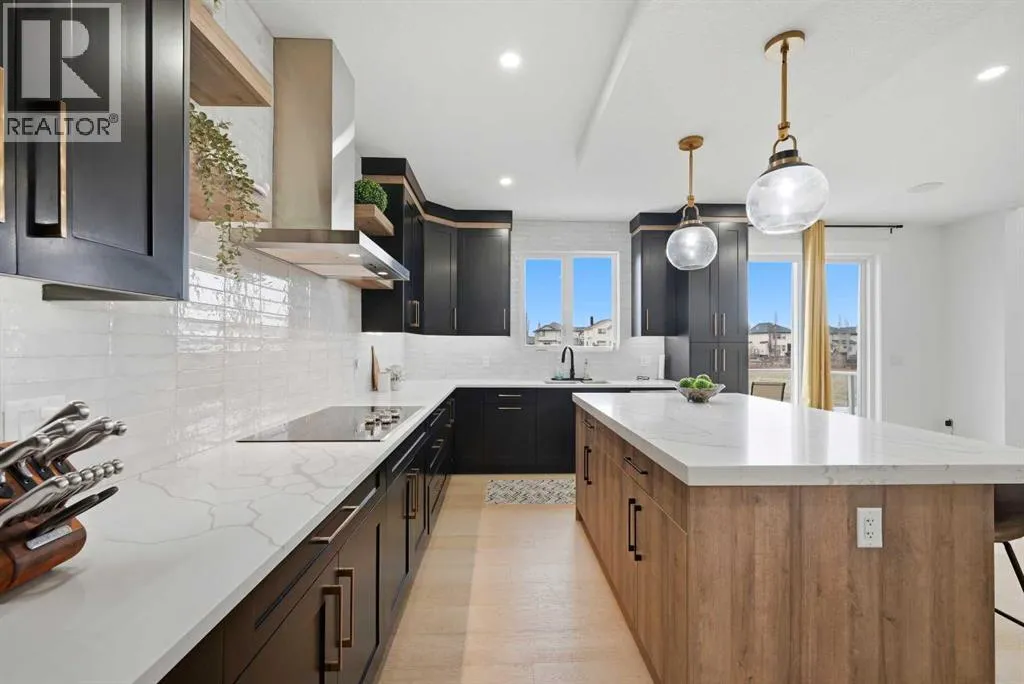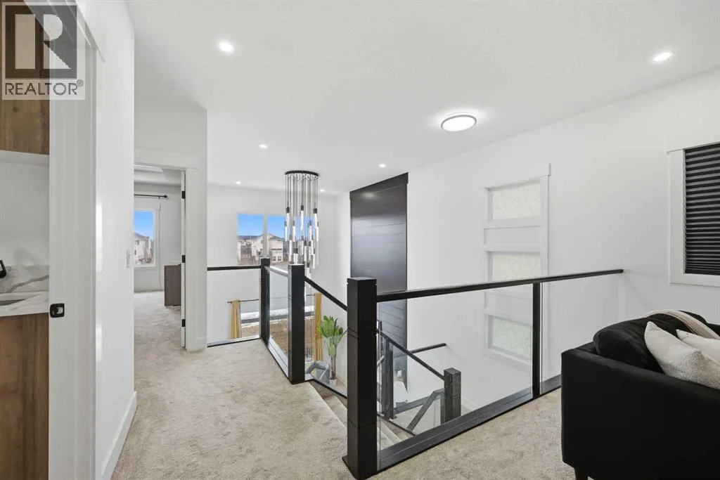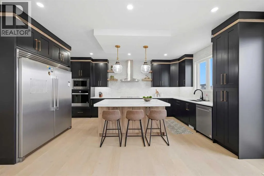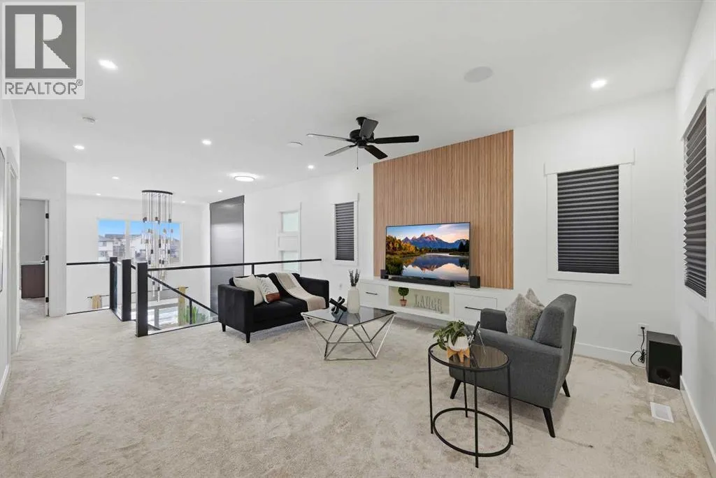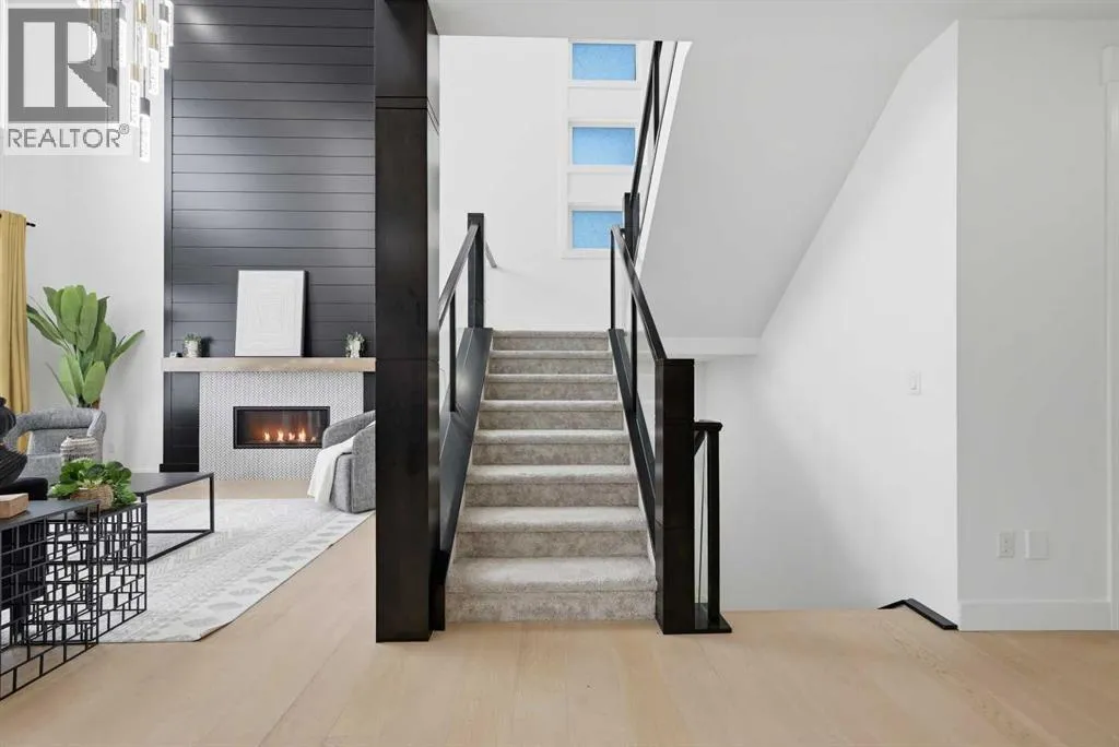 LUXURY LIVING | CANAL BACKING | 50 X 114 WALKOUT LOT | 2 MASTER BEDROOMS | 9 FEET CEILINGS THROUGHOUT !!. Discover the pinnacle of lakeside living in this exquisite two-story residence, exhibiting show-home caliber finishes and ideally poised on a premium walkout parcel backing onto a canal within the lake community of South Shore. Masterfully architected to harmonize sophistication, volume, and utility, this distinguished property boasts four generously appointed bedrooms, three and a half bathrooms, a private executive office, and an abundance of bespoke upgrades. Upon entry you are greeted by spacious foyer , an office and two refined dining spaces. At the residence's core, the soaring open-to-above family room commands attention, featuring a warm natural gas fireplace and a striking architectural glass staircase . The chef-caliber primary kitchen is a culinary masterpiece, outfitted with premium integrated appliances and an oversized refrigerator, flawlessly complemented by a fully equipped, enclosed spice kitchen featuring a gas range. Ascending to the upper level, the expansive floor plan reveals a versatile bonus room complete with custom built-in media cabinetry, a thoughtfully designed laundry room and a primary bedroom with a spa-inspired five-piece ensuite. Family and guests are effortlessly accommodated, as two additional well-appointed bedrooms share a meticulously designed Jack-and-Jill bathroom, while a substantial fourth bedroom benefits from its own private full bathroom. Both master bedrooms plus additional bedroom comes with MDF Shelving -walk in closets. The luminous walkout lower level features a dedicated rear entrance nine foot ceiling and large windows , presenting an exceptional blank canvas to curate a bespoke entertainment space . Externally, indulge in sweeping water vistas from the expansive glass-railed deck, The triple-car garage exterior has hardy board and metal cedar rendering , offers ample parking impart an arresting curb appea l, culminating this superlative offering. (id:27476)