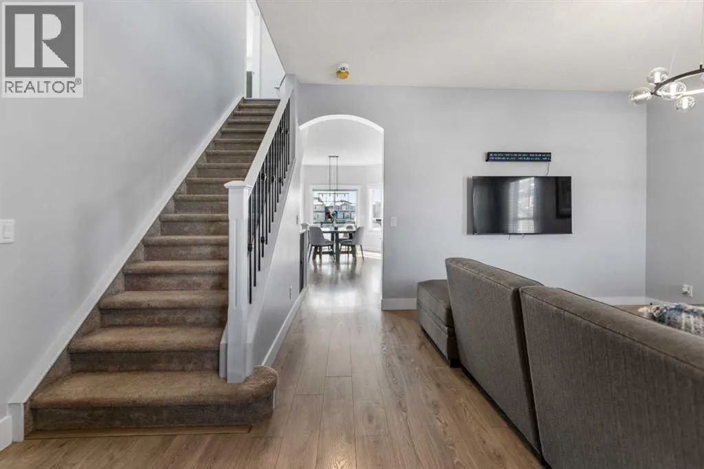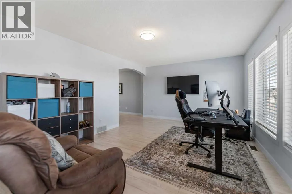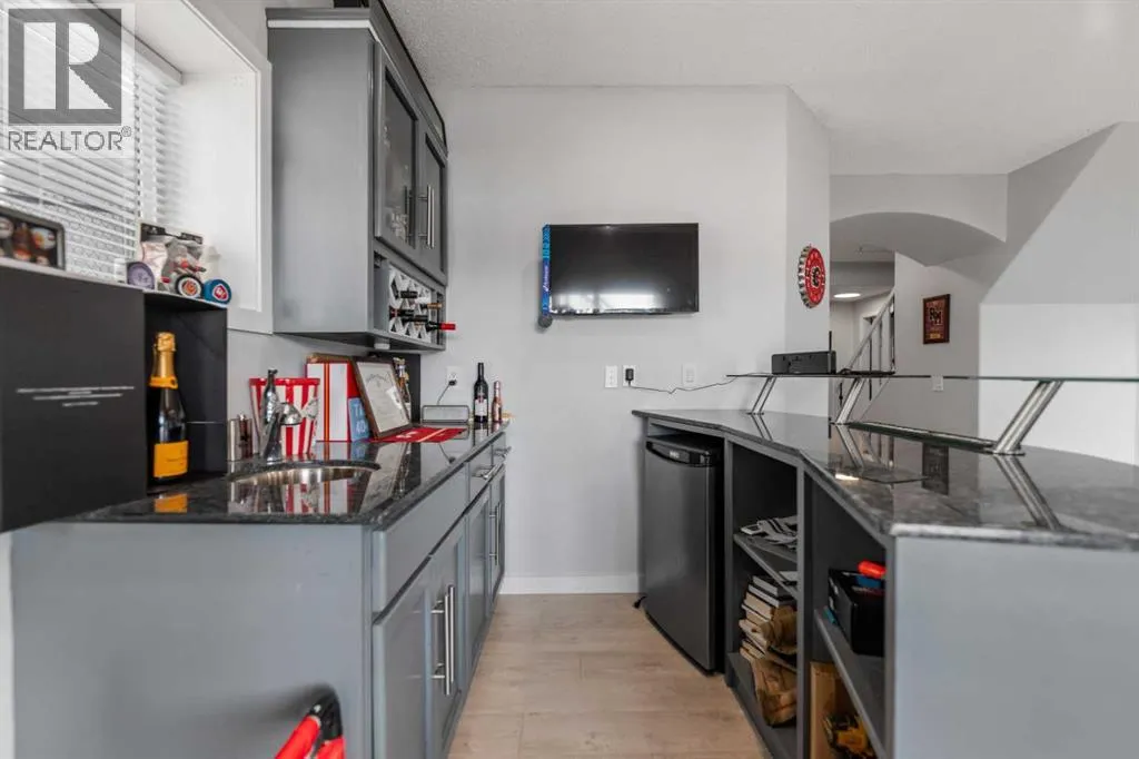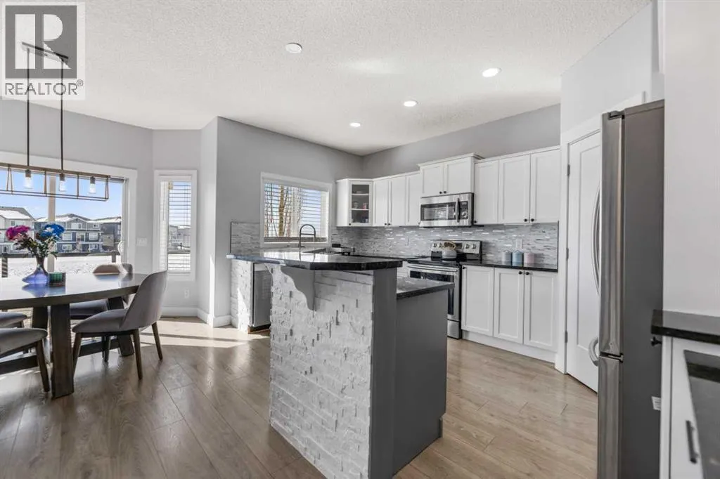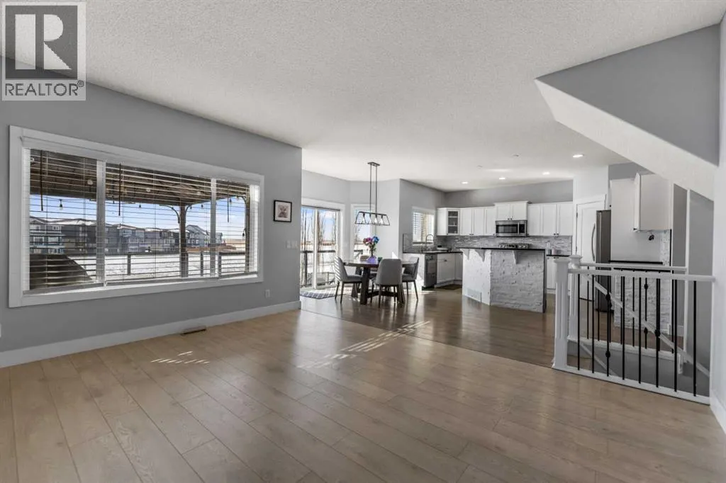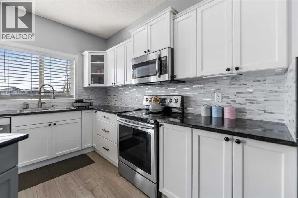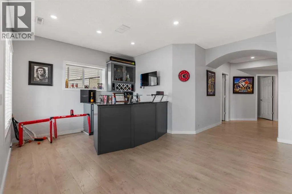 Great Location Backing onto the canal , walking pathway. and green space. All three levels fully finished, lower level with walkout. Main floor features front flex room great for office, library, living area or large dining room. Kitchen with large working island with area for bar stools , granite counter tops, eating area with patio doors to large south facing yard. Family room with fireplace. Main floor has 9 foot ceilings with great upgraded lighting. 2 piece bath, main floor laundry room. The upper level you will find your primary bedroom with walk in closets, upgraded 5 piece en suite bathroom. 2 more good sized bedrooms, large bonus room. The lower level is fully finished with extra bedroom games area and wet bar. The home comes with air conditioning, kids play slide and sand box. Quick possession is possible. Call your Realtor to show. (id:27476)