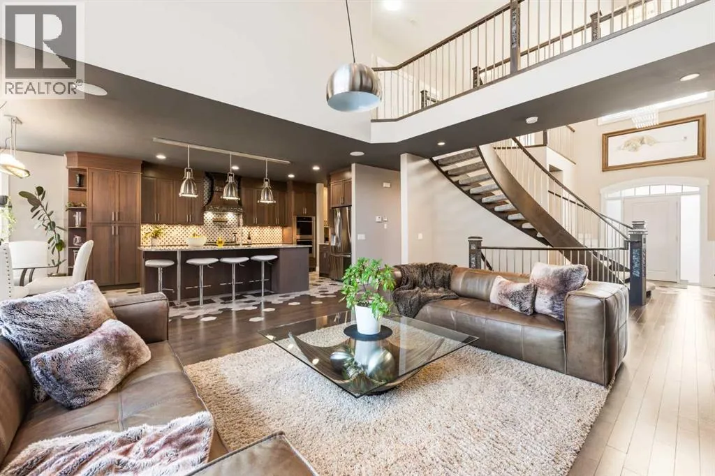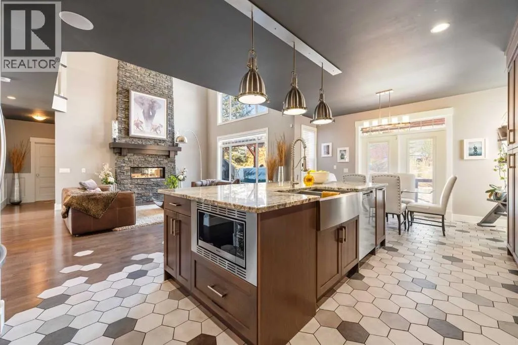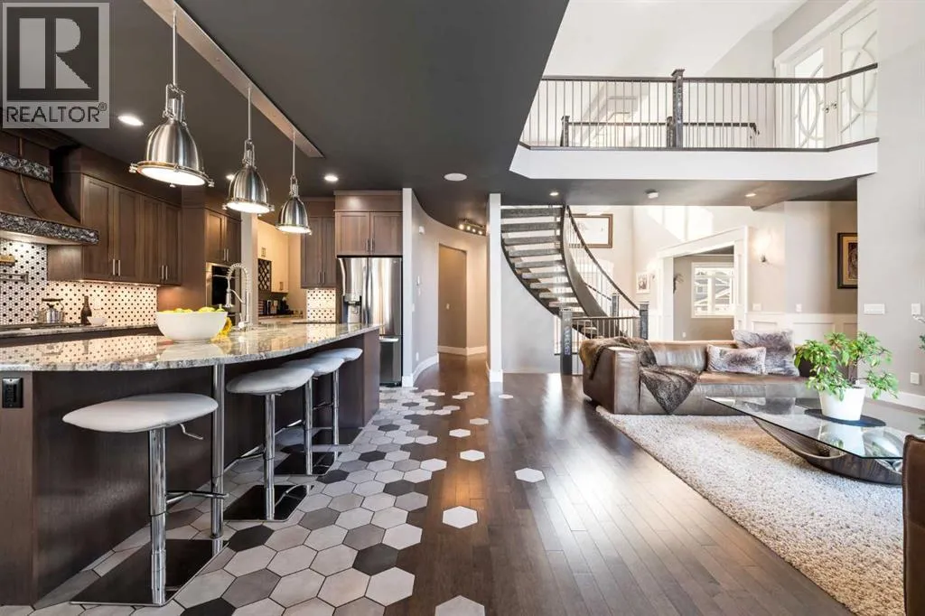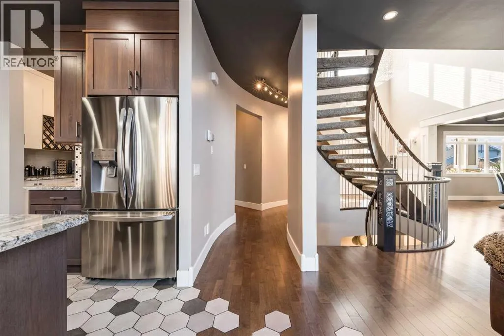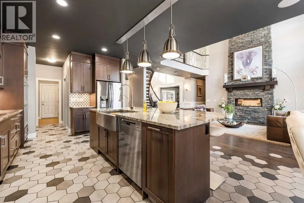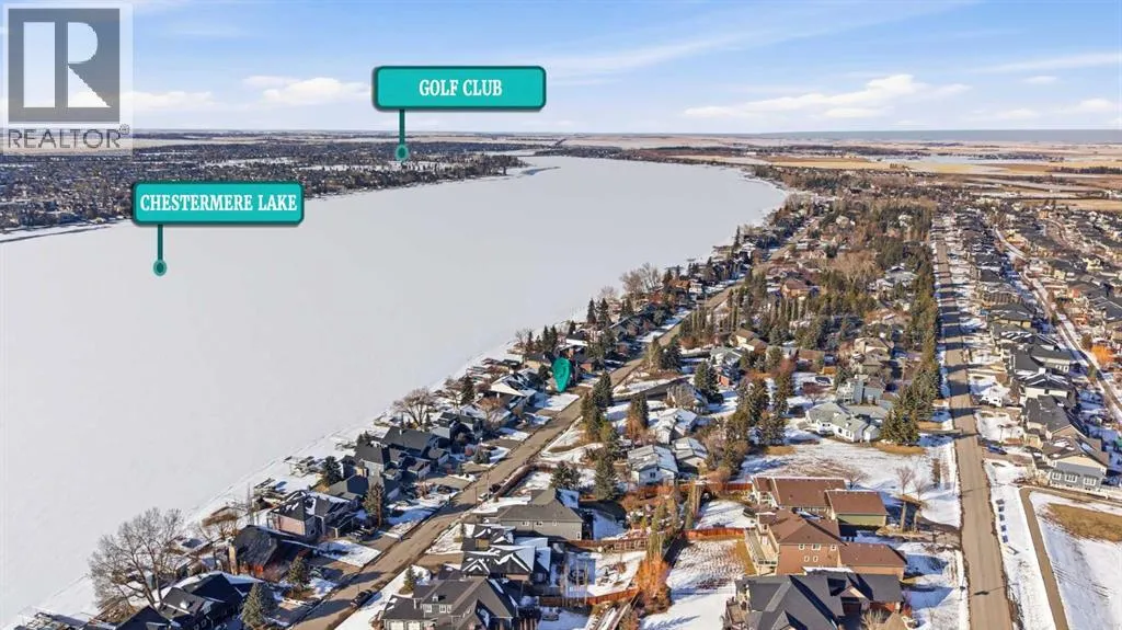 EXPERIENCE ELEVATED LAKESIDE LIVING in this IMPRESSIVE, CONTEMPORARY ESTATE just across from the water in beautiful Chestermere. Perfectly positioned on a sprawling 1/3 ACRE LOT with LAKE VIEWS, this home offers the ultimate blend of luxury, space, and lifestyleâpaired with the everyday convenience of LAKE LIFE, close to all schools, and set on a QUIET, LOW-TRAFFIC STREET. A dramatic OPEN-TREAD, SWEEPING SPIRAL STAIRCASE makes a stunning first impression, showcasing intricate DETAIL that will truly leave you in awe. The GRAND TWO-STOREY GREAT ROOM features soaring vaulted ceilings, a catwalk overlook, and EXPANSIVE WINDOWS that fill the home with NATURAL LIGHT. A striking TWO-SIDED, FLOOR-TO-CEILING STONE FIREPLACE creates a warm, sophisticated focal point shared between the great room and a PRIVATE DEN with garden doors leading to the rear deck and beautifully landscaped yard. The FRONT DINING ROOM is perfectly designed for hosting LARGE GATHERINGS, while the Dining space in the Kitchen adds both style and functionality. Rich HARDWOOD FLOORING with CUSTOM TILE INLAYS and UPDATED KITCHEN CABINETRY elevate the space, while the chef-inspired kitchen features TWO WALL OVENS, a GAS COOKTOP, premium appliances, and a SHOWSTOPPING CUSTOM HOOD FAN with incredible detail. The expansive 10â8â x 7â BUTLERâS PANTRY ensures effortless entertaining. Youâll also appreciate the abundance of practical space with a generous LAUNDRY AREA, MUDROOM, and additional storage. Upstairs, ALL 4 BEDROOMS are generously sizedâideal for growing familiesâand the thoughtfully designed JACK & JILL BATHROOM offers both convenience and function. The PRIMARY RETREAT is a true escape, featuring a spacious WALK-IN CLOSET and a LUXURIOUS 5-PIECE ENSUITE. View of the lake and West Sun make the room perfect for a Restful Sleep! The Bonus Room is spacious and provides an extra space to unwind! The FULLY DEVELOPED LOWER LEVEL is designed for ENTERTAINING, complete with a PRIVATE MEDIA AREA and BAR, a SPA- INSPIRED BATHROOM with WALK-IN SHOWER, SEPARATE SOAKER TUB, and DUAL VANITIES, along with a FIFTH BEDROOM Separate Gym Area plus STORAGE/MECHANICAL SPACE. Step outside into your own BACKYARD OASISâmeticulously landscaped with THREE PONDS, mature trees, shrubs, and perennials, all maintained by a 5-ZONE UNDERGROUND IRRIGATION SYSTEM. Enjoy outdoor living on the FULL-WIDTH REAR DECK and gather around the GAS FIREPIT in a setting designed for relaxation and connection. Enjoy FRONT LAKE VIEWS and AFTERNOON SUN from your COVERED FRONT DECKâan ideal space to unwind and take in the beauty of the surrounding community. Additional highlights include TWO AIR CONDITIONING UNITS, a FULLY FENCED YARD with DOG RUN, and an OVERSIZED TRIPLE GARAGE designed with space for STORAGE and CAR LIFTS. The MASSIVE PAVED DRIVEWAY extends beyond the home, offering ample parking and dedicated RV SPACE.THIS IS TRUE EXECUTIVE LIVINGâWHERE DESIGN, FUNCTION, AND LIFESTYLE COME TOGETHER SEAMLESSLY. JUST MOVE IN AND ENJOY. (id:27476)