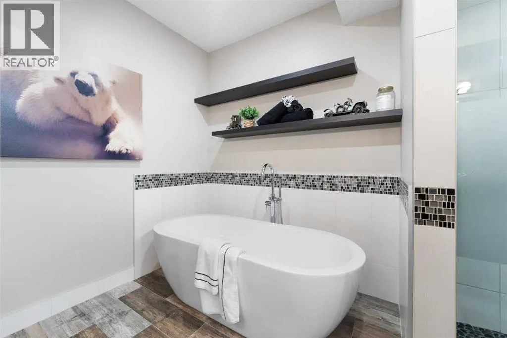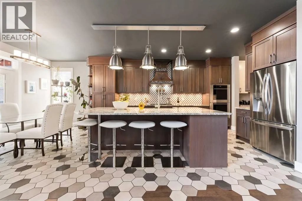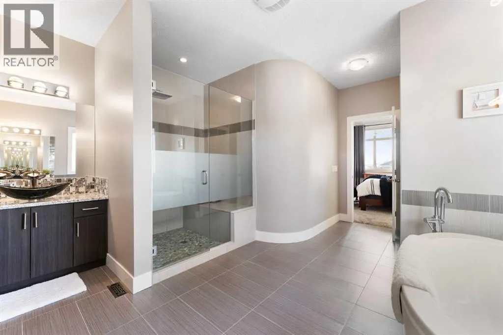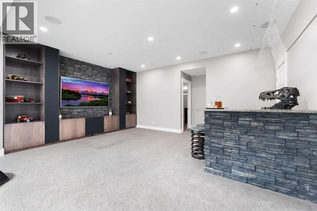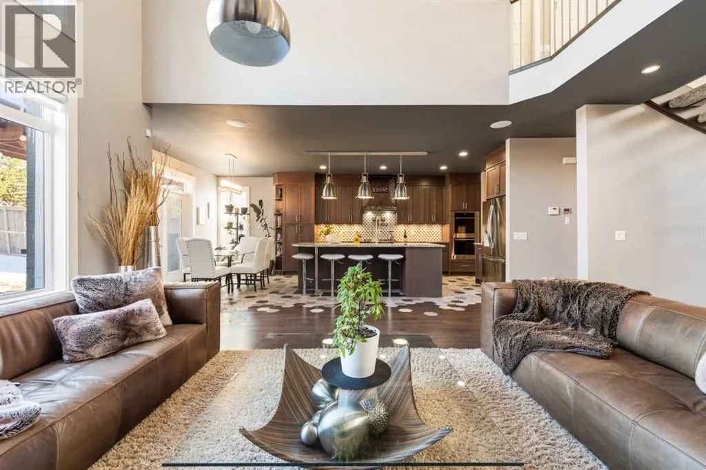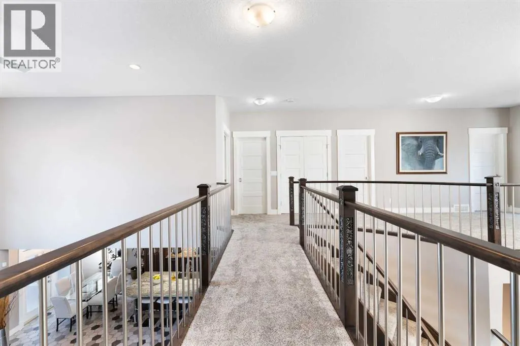 EXPERIENCE ELEVATED LAKESIDE LIVING in this IMPRESSIVE, CONTEMPORARY ESTATE just across from the water in beautiful Chestermere. Perfectly positioned on a sprawling 1/3 ACRE LOT with LAKE VIEWS, this home offers the ultimate blend of luxury, space, and lifestyleâpaired with the everyday convenience of LAKE LIFE, close to all schools, and set on a QUIET, LOW-TRAFFIC STREET. A dramatic OPEN-TREAD, SWEEPING SPIRAL STAIRCASE makes a stunning first impression, showcasing intricate DETAIL that will truly leave you in awe. The GRAND TWO-STOREY GREAT ROOM features soaring vaulted ceilings, a catwalk overlook, and EXPANSIVE WINDOWS that fill the home with NATURAL LIGHT. A striking TWO-SIDED, FLOOR-TO-CEILING STONE FIREPLACE creates a warm, sophisticated focal point shared between the great room and a PRIVATE DEN with garden doors leading to the rear deck and beautifully landscaped yard. The FRONT DINING ROOM is perfectly designed for hosting LARGE GATHERINGS, while the Dining space in the Kitchen adds both style and functionality. Rich HARDWOOD FLOORING with CUSTOM TILE INLAYS and UPDATED KITCHEN CABINETRY elevate the space, while the chef-inspired kitchen features TWO WALL OVENS, a GAS COOKTOP, premium appliances, and a SHOWSTOPPING CUSTOM HOOD FAN with incredible detail. The expansive 10â8â x 7â BUTLERâS PANTRY ensures effortless entertaining. Youâll also appreciate the abundance of practical space with a generous LAUNDRY AREA, MUDROOM, and additional storage. Upstairs, ALL 4 BEDROOMS are generously sizedâideal for growing familiesâand the thoughtfully designed JACK & JILL BATHROOM offers both convenience and function. The PRIMARY RETREAT is a true escape, featuring a spacious WALK-IN CLOSET and a LUXURIOUS 5-PIECE ENSUITE. View of the lake and West Sun make the room perfect for a Restful Sleep! The Bonus Room is spacious and provides an extra space to unwind! The FULLY DEVELOPED LOWER LEVEL is designed for ENTERTAINING, complete with a PRIVATE MEDIA AREA and BAR, a SPA- INSPIRED BATHROOM with WALK-IN SHOWER, SEPARATE SOAKER TUB, and DUAL VANITIES, along with a FIFTH BEDROOM Separate Gym Area plus STORAGE/MECHANICAL SPACE. Step outside into your own BACKYARD OASISâmeticulously landscaped with THREE PONDS, mature trees, shrubs, and perennials, all maintained by a 5-ZONE UNDERGROUND IRRIGATION SYSTEM. Enjoy outdoor living on the FULL-WIDTH REAR DECK and gather around the GAS FIREPIT in a setting designed for relaxation and connection. Enjoy FRONT LAKE VIEWS and AFTERNOON SUN from your COVERED FRONT DECKâan ideal space to unwind and take in the beauty of the surrounding community. Additional highlights include TWO AIR CONDITIONING UNITS, a FULLY FENCED YARD with DOG RUN, and an OVERSIZED TRIPLE GARAGE designed with space for STORAGE and CAR LIFTS. The MASSIVE PAVED DRIVEWAY extends beyond the home, offering ample parking and dedicated RV SPACE.THIS IS TRUE EXECUTIVE LIVINGâWHERE DESIGN, FUNCTION, AND LIFESTYLE COME TOGETHER SEAMLESSLY. JUST MOVE IN AND ENJOY. (id:27476)
