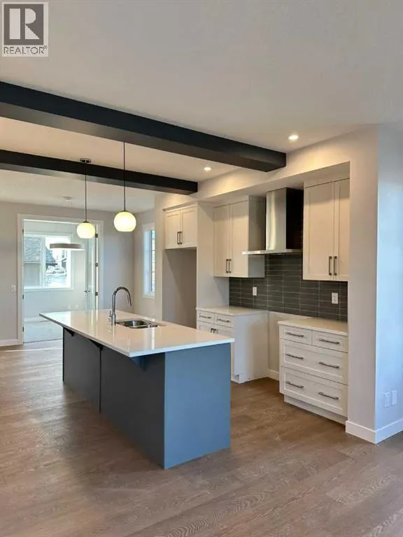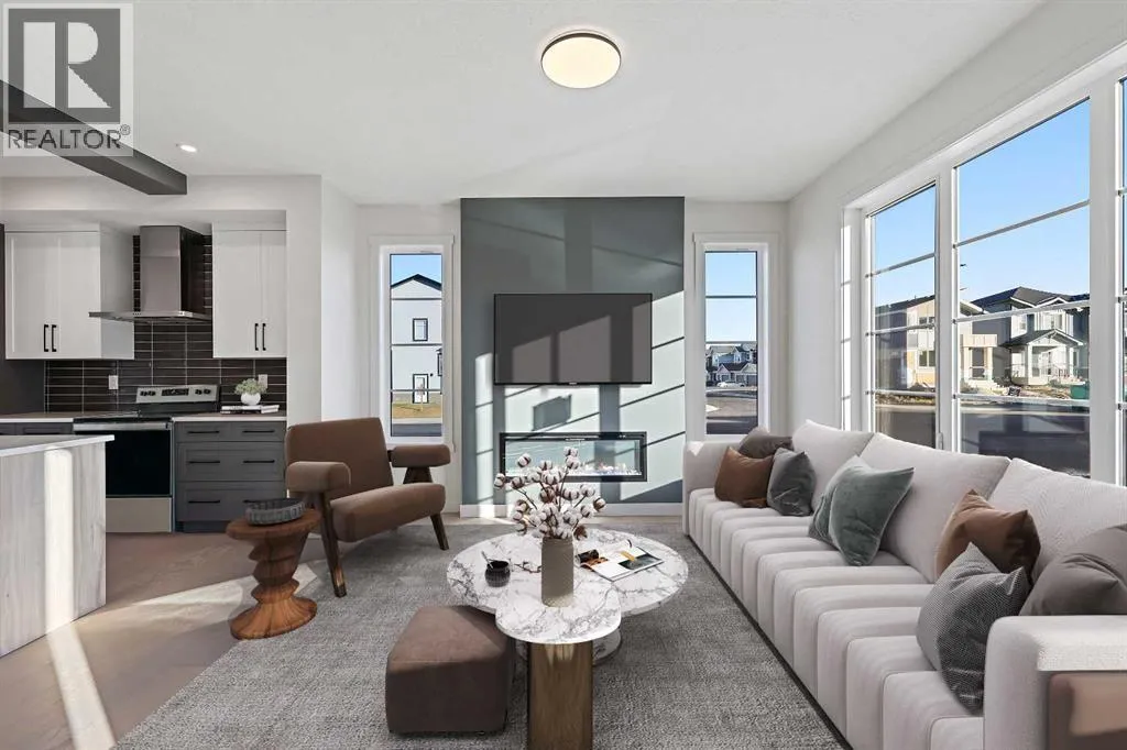 Welcome to this beautifully designed and thoughtfully crafted home located in the vibrant community of Waterford in Chestermere.This two-storey home offers 3 bedrooms, 2.5 bathrooms, and a rear detached garage, all situated on a sought-after corner lot. With immediate possession available, itâs move-in ready when you areâand located just a few steps to the playground and nearby walking/bike paths, making it perfect for families and outdoor living.Step inside to discover engineered hardwood flooring on the main level. Thanks to the additional side windows, the home is filled with natural light, creating a bright and inviting atmosphere. The main floor features a flex room, an open and airy great room with an electric fireplace, and a modern kitchen complete with quartz countertops, a chimney-style hood fan, built-in microwave, and stainless steel appliances.Upstairs, the spacious primary suite offers a large walk-in closet and a spa-inspired ensuite with dual vanities. Youâll also find convenient upper-floor laundry, two additional well-sized bedrooms, and a full bathroom.Outside, enjoy the treated wood deckâperfect for relaxing or entertainingâwith steps leading directly to the parking area for added convenience. Additional highlights include 9â ceilings on the main level, a side entrance to the basement for future development, and a prime location close to parks, schools, and local amenities in a rapidly growing community.Unlock Savings with the First-Time Home Buyersâ GST Rebate!You may qualify for up to $50,000 in savings on a brand-new home through the First-Time Home Buyersâ GST Rebate. To be eligible, you must be 18 or older, a Canadian citizen or permanent resident, and must not have owned or lived in a home owned by you or your spouse/common-law partner in the last four years.Note: This offer applies only to homes placed under contract after May 27, 2025, and is subject to Government of Canada and CRA rules.Donât miss your chance to own this stunning, move-in-ready home built with quality craftsmanship and attention to detail.Please note: Some photos are of a similar show home for illustration purposes only. Actual finishes, colors, and style may vary.Call today to book your private showing or to learn more about this limited-time opportunity! (id:27476)
