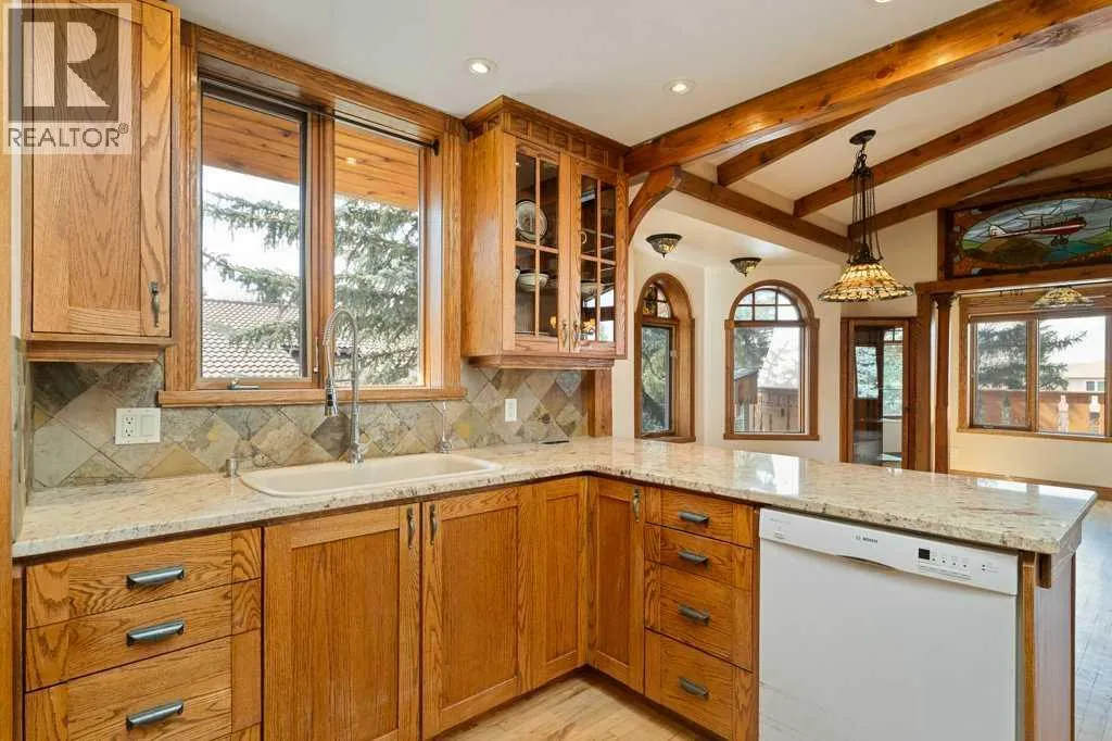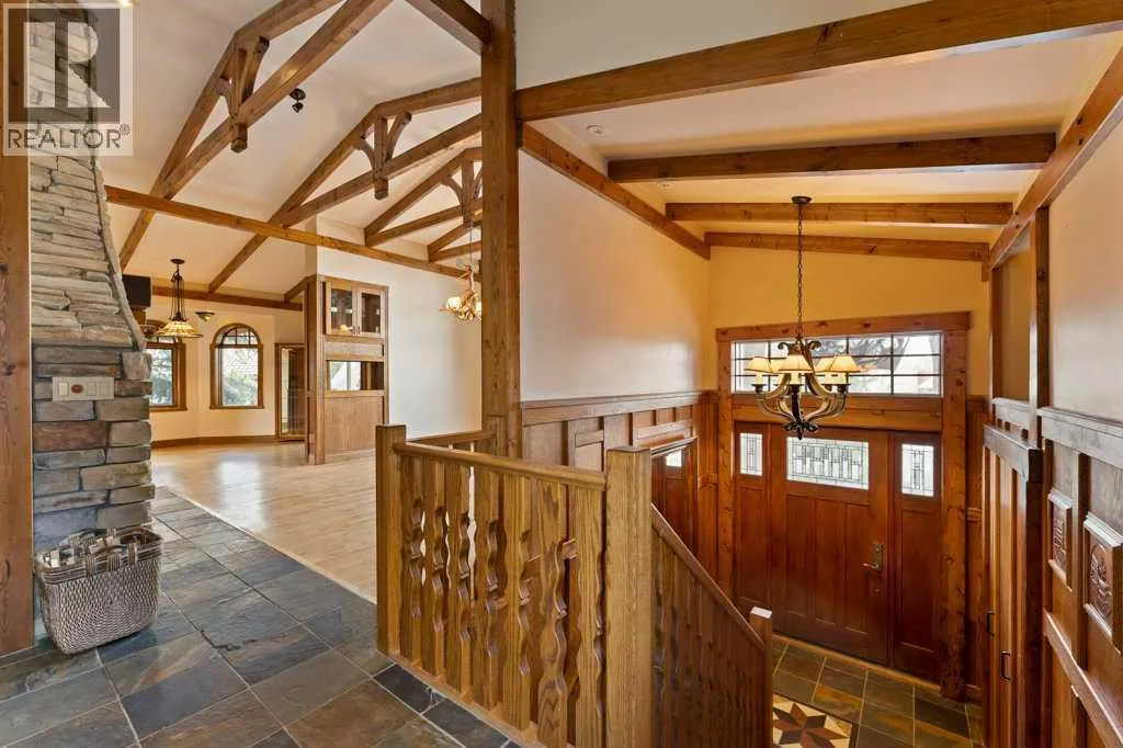 Welcome to your one of a kind home in Chestermere that brings a touch of Bavaria right to your doorstep. This character filled property showcases incredible craftsmanship, with stunning custom woodwork featured throughout as soon as you walk through the majestic front door. Thereâs a massive stone fireplace that anchors the living space with warmth and charm and you can curl up in front of. An indoor water feature adds a serene, almost spa like ambiance. With the exposed wood beams, stained glass accents, and the detailed woodwork youâll feel that youâre living in an European Country. Step outside to your west-facing deck and enjoy unforgettable evenings complete with a wood-fired pizza oven, retractable awning for shade and comfort, and a convenient firewood dumbwaiter that makes hosting effortless. Whether you're gathering with friends or enjoying a quiet sunset, this outdoor space is truly something special. The oversized double garage offers plenty of room for vehicles, storage, and a dedicated workspace, while the garage slab is already roughed-in for electrical and waterâproviding the opportunity to expand into additional garage space if desired. This home is more than just a place to liveâ¦it's a lifestyleâ¦blending European inspired design with thoughtful, functional features in a sought after Chestermere location. Call your favourite Realtor today to book your private viewing. (id:27476)