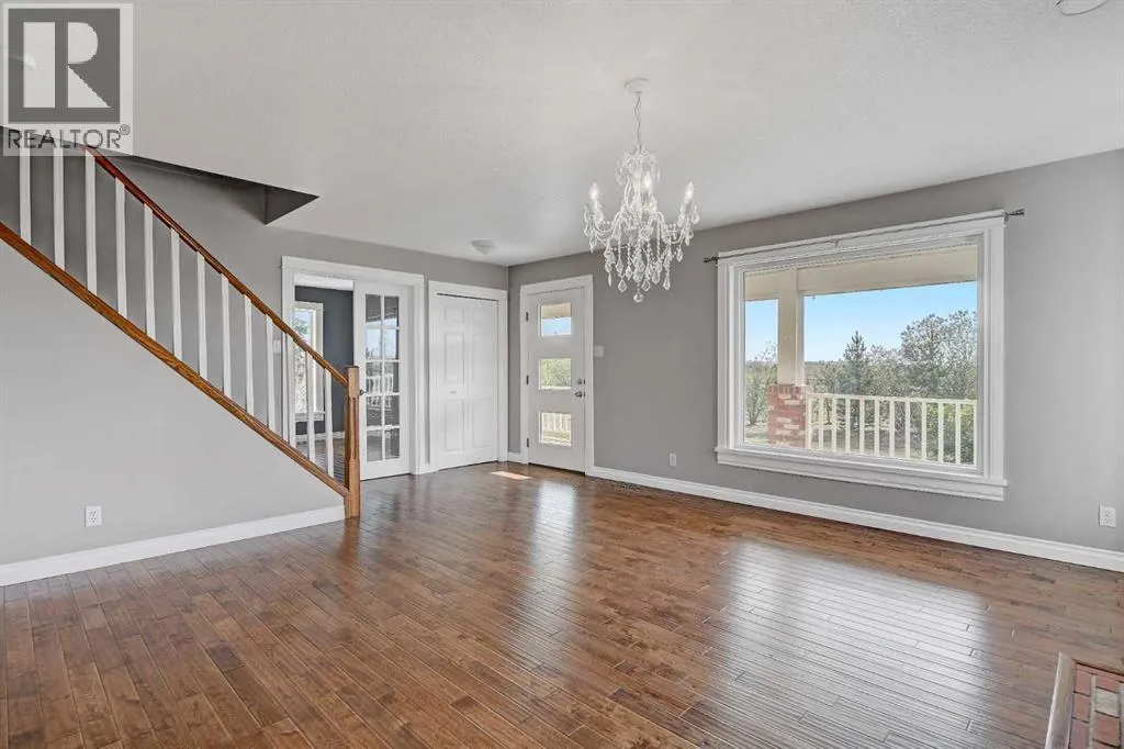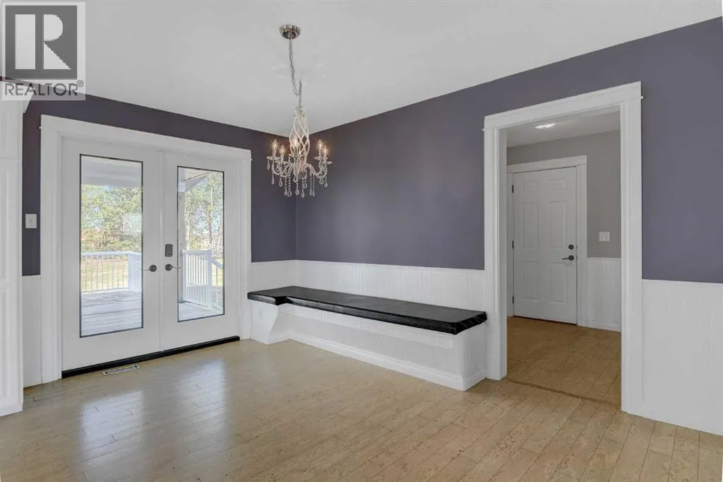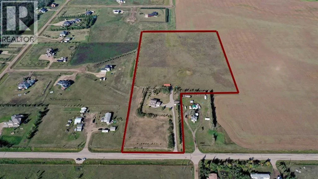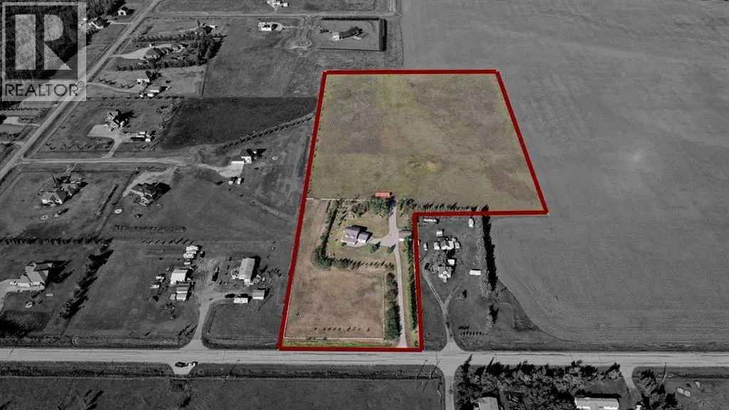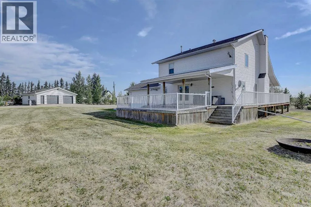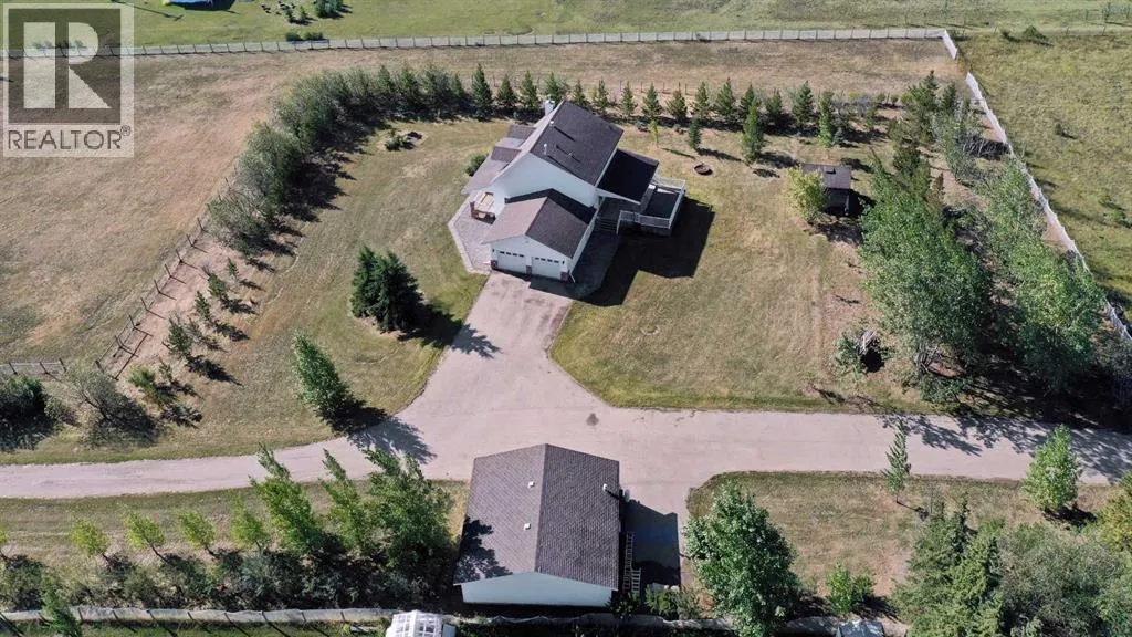 If you have been waiting for an oversized CR-5 acreage close to town, and accessible by pavement, this may be the one! Perfect for the horse lover, or if you just want some extra space and privacy this 16.30acre parcel is just seconds north of City Limits. The well-established property features a beautiful home site on about 6 acres and 10 +/- acres of fenced pasture to the west. The private yard site includes fencing, tons of mature trees and landscaping, paved driveway, a fully developed and updated 2 storey home with double garage and an oversized detached garage (fits 3 cars). The home is a gorgeous blend of country style and modern updating, and you will love the wrap around deck providing covered front veranda and two-tiered partially covered rear deck. The main floor features hardwood flooring and wood stove in living room, large dining room or sitting area, dining nook with built in seating and double swing doors to patio, powder room and spacious white kitchen with quartz counters, stainless steel appliances, pantry and upgraded faucet and undermount sink. Upstairs includes 3 huge bedrooms with dormer windows, large walk-in closet or storage room and huge main bath with freestanding soaker tub, separate tiled shower with glass door and large vanity with quartz counter and his / her sinks. Basement is tastefully developed with 2 more bedrooms, living room with gas fireplace, full bathroom, finished laundry room and cold room / additional storage. Other notable features include: immediate possession, A/C, stamped concrete walkway, firepit, shed, fresh paint, new carpet and development potential with Aquatera city water availability. Book youâre showing today! (id:27476)