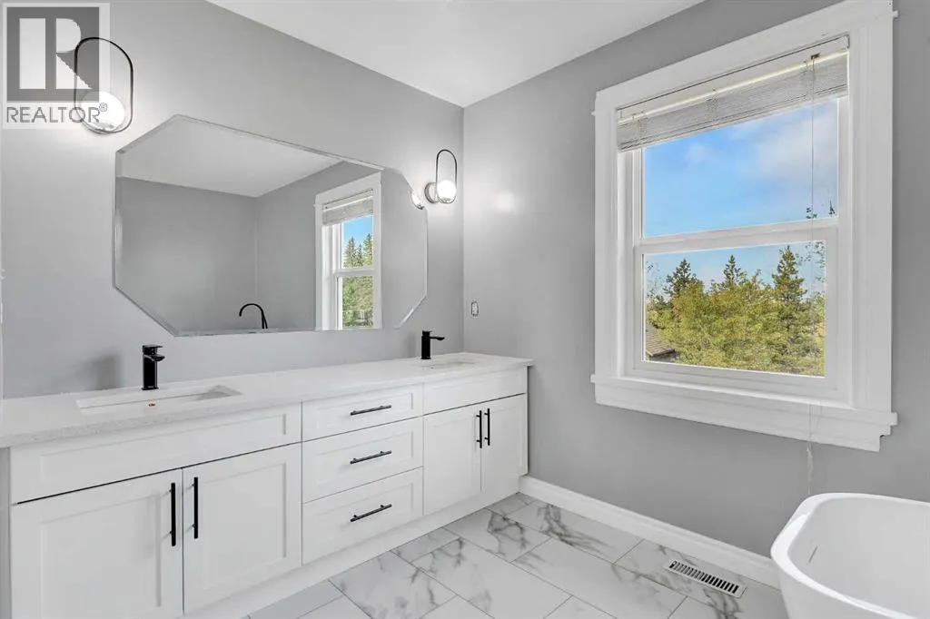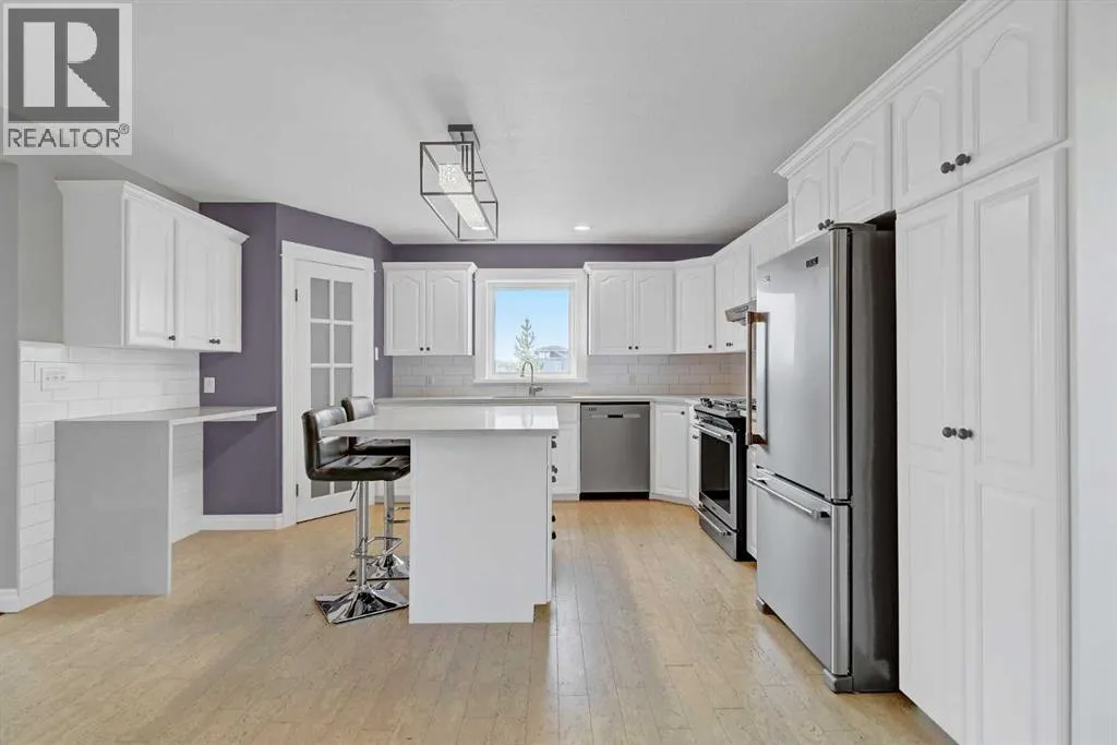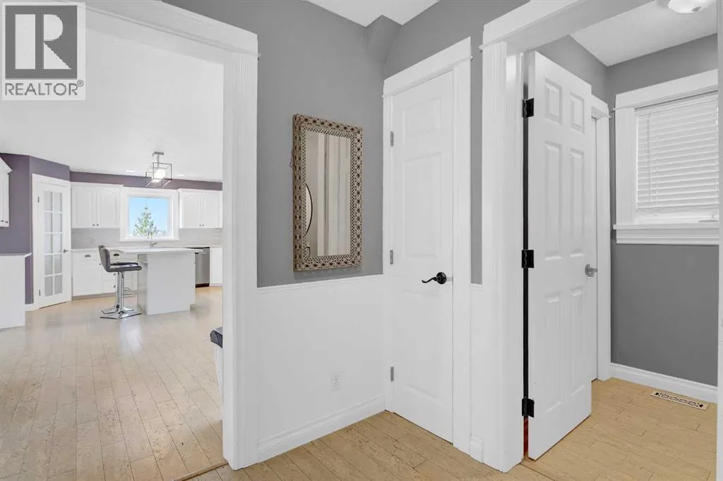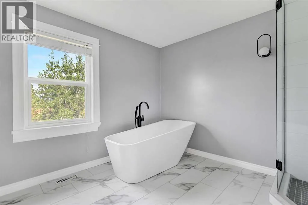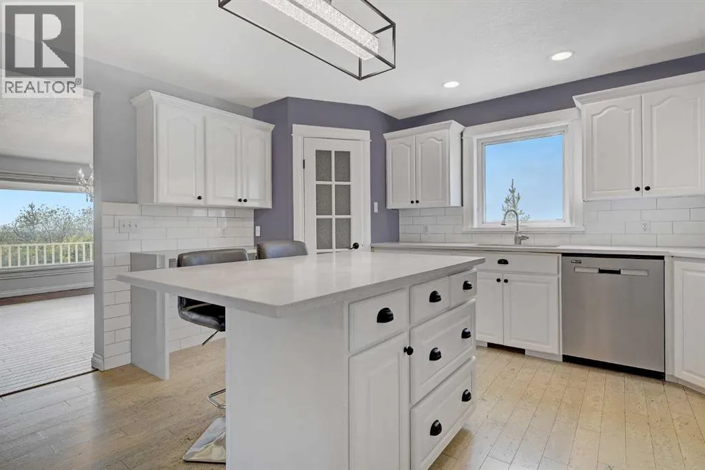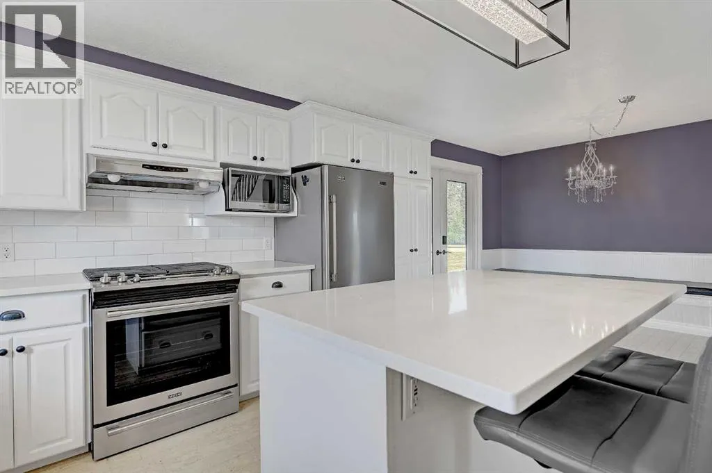 If you have been waiting for an oversized CR-5 acreage close to town, and accessible by pavement, this may be the one! Perfect for the horse lover, or if you just want some extra space and privacy this 16.30acre parcel is just seconds north of City Limits. The well-established property features a beautiful home site on about 6 acres and 10 +/- acres of fenced pasture to the west. The private yard site includes fencing, tons of mature trees and landscaping, paved driveway, a fully developed and updated 2 storey home with double garage and an oversized detached garage (fits 3 cars). The home is a gorgeous blend of country style and modern updating, and you will love the wrap around deck providing covered front veranda and two-tiered partially covered rear deck. The main floor features hardwood flooring and wood stove in living room, large dining room or sitting area, dining nook with built in seating and double swing doors to patio, powder room and spacious white kitchen with quartz counters, stainless steel appliances, pantry and upgraded faucet and undermount sink. Upstairs includes 3 huge bedrooms with dormer windows, large walk-in closet or storage room and huge main bath with freestanding soaker tub, separate tiled shower with glass door and large vanity with quartz counter and his / her sinks. Basement is tastefully developed with 2 more bedrooms, living room with gas fireplace, full bathroom, finished laundry room and cold room / additional storage. Other notable features include: immediate possession, A/C, stamped concrete walkway, firepit, shed, fresh paint, new carpet and development potential with Aquatera city water availability. Book youâre showing today! (id:27476)