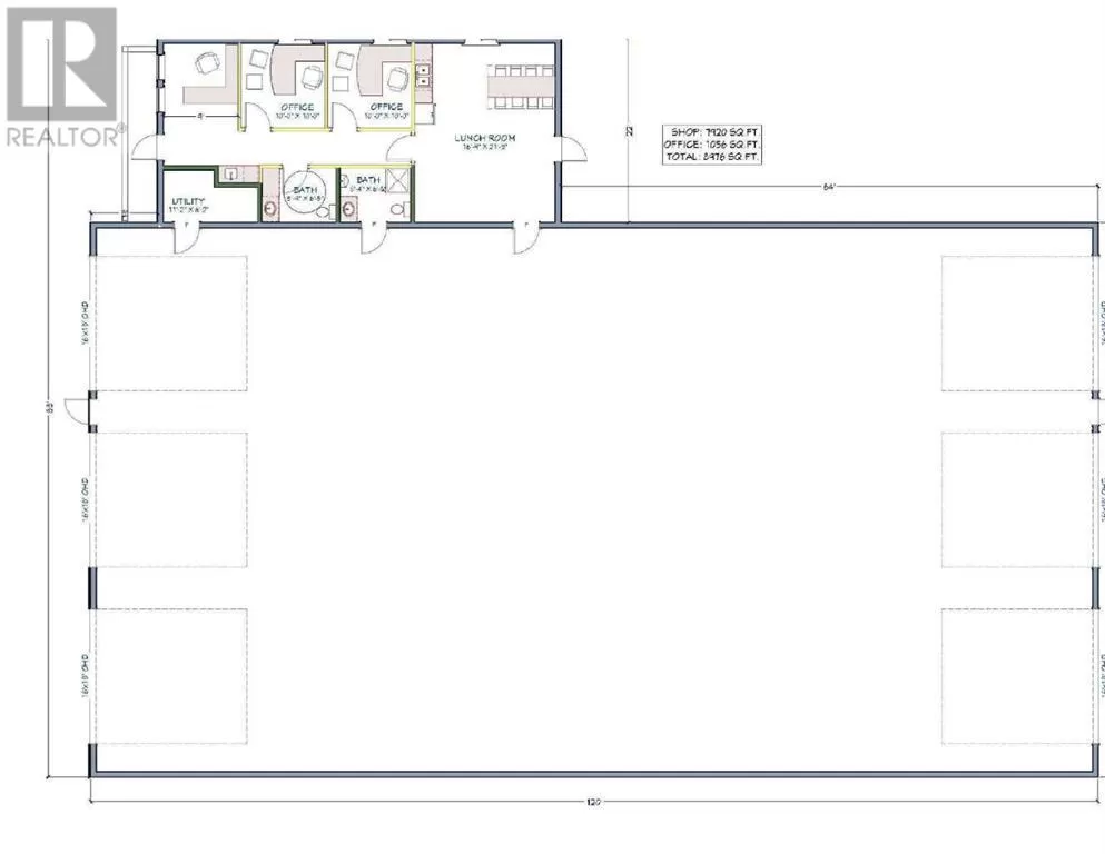 (3) 120' DRIVE THROUGH BAYS AND PLENTY OF FENCED YARD with prime frontage to get your business noticed on this very busy route. BRAND NEW build with 6) 16' W X 18 'H Overhead doors. Reception and 2 offices plus Lunchroom/ Boardroom/ locker room and separate shop and office bathroom. Yard will be completed with well packed gravel and fully fenced. Need more yard, shop or something custom? Reach out. Adjoining 4.33 acres can be purchased as well. (id:27476)
