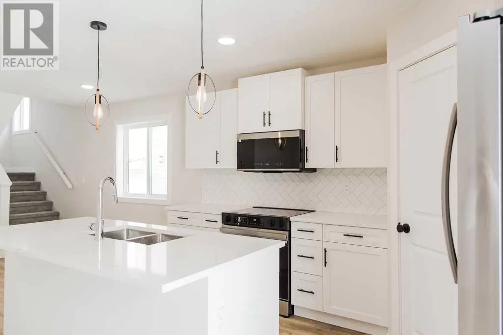 THE NEW PARKER LUXURY DUPLEX PRESALE- CONSTRUCTION STARTS JULY 2025 AND BACKING ONTO AN EASEMENT, January 2026 possession! -! Modern Luxury 3 bed 2.5 bath Duplex featuring a new design with the Master Bedroom retreat over the garage, up a few more stairs you will find 2 more bedrooms, the main bathroom and the laundry room that accomodates a side by side washer dryer. The contemporary exterior will keep you impressed every time you pull into the driveway. Come on in and be amazed by the incredible kitchen featuring quartz counters, tile back splash, pendant lighting, soft close shaker style cabinets, real wood soft close drawers and Valhalla barn wood vinyl plank flooring. We know storage is important so we included a huge corner pantry. The gorgeous kitchen is finished off with Stainless Steel kitchen appliances. The main floor features an open concept layout throughout the kitchen, living room and dining room and features a handy power room 1/2 bathroom right by the entry. Built-in savings with energy efficiency include hot water on demand, high-efficiency furnace, low-e argon filled double paned windows, LED lighting and LIFETIME fiberglass shingles. The basement is unfinished and ready for your imagination to create the space of your dreams and can accomdate 2 bedrooms and a full bathroom. The 11' by 21' garage is dry-walled insulated and fire taped and has a wifi enabled garage door opener. Clairmont has many kids parks, miles of walking trails and an award winning K-8 primary school and low county taxes, estimated on this home to be $2409 per year. Put your deposit down and reserve your new place today!(SAMPLE PICTURES and 3D tour OF same PLAN) (id:27476)