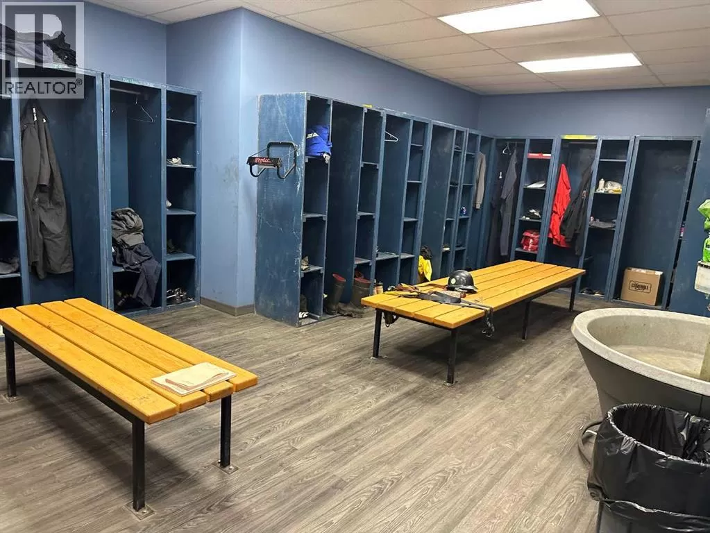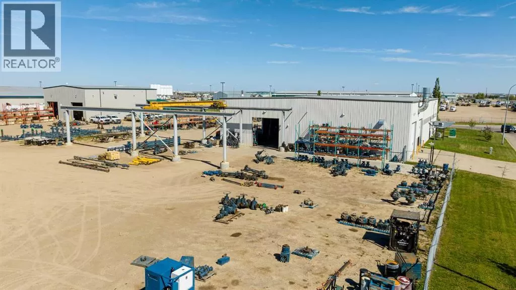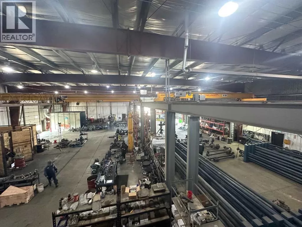 This industrial property is conveniently situated in Clairmont, just west of the County office. It encompasses 2.14 acres of land which is graveled and fenced with two approaches and RM-2 zoning. The building itself spans a total of 17,640 square feet, with 12,500 square feet of warehouse space. The warehouse is thoughtfully divided into two 100-foot bays, inclusive of five 16-foot by 16-foot overhead doors and a wash bay. The wash area is equipped with a dedicated pressure washer system, complete with its own standalone sump and trough setup that is independent of the municipal services run through the rest of the building. The operational efficiency comes in the form of a 10-ton crane and two 5-ton cranes. It offers radiant heat throughout the warehouse and a high-efficiency furnace for the office and mezzanine areas. To book a showing or for more information, call your local Commercial Realtor®. (id:27476)