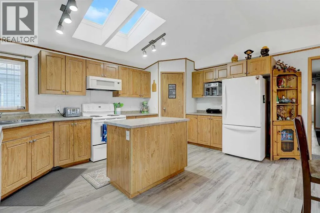 Beautifully Maintained 4 Bedroom Mobile in Clairmont! This bright and spacious home offers exceptional value with 4 bedrooms, 2 bathrooms, and a functional layout perfect for families. The main living area features vaulted ceilings, a large island, and a corner pantry making the kitchen the true heart of the home. The generous primary bedroom includes a walk-in closet and a 4-piece ensuite, while the opposite end of the home offers three additional bedrooms with a bathroom conveniently separated by a privacy door. Recent upgrades add peace of mind, including a new ceiling fan in the living room, new shingles(July 2025), a serviced furnace with a replaced motherboard, newer vinyl plank and new fridge, microwave, washer, and dryer. Enjoy outdoor living on the large deck complete with a gazebo, all within a fully fenced yard featuring a storage shed. A clean, updated, and move-in-ready property in a great community! (id:27476)