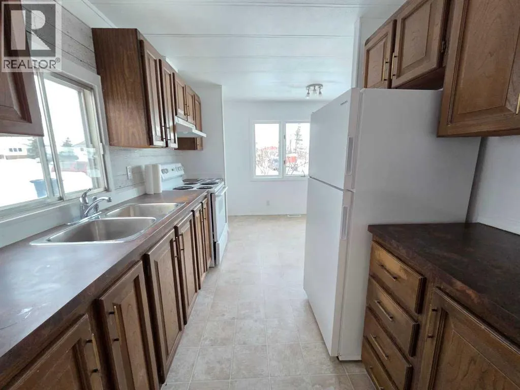 This lovely mobile home is ideally located just steps from the school in Clairmont and has been freshly painted, making it truly move-in ready. A large porch addition provides extra living space, while the functional kitchen and spacious living area create a comfortable layout. The home offers three bedrooms and a good-sized full bathroom.Outside, youâll find a fully fenced yard complete with a deckâperfect for BBQs and relaxing. Numerous updates have been completed over the past 5 years , including the roof resealed (2025), new interior paint (2025), new heat tape under the home (2025), home re-levelled on its blocks (2025), new washing machine (2025), refrigerator (2022), new fencing (2022), new furnace (2021), and new hot water tank (2021). (id:27476)
