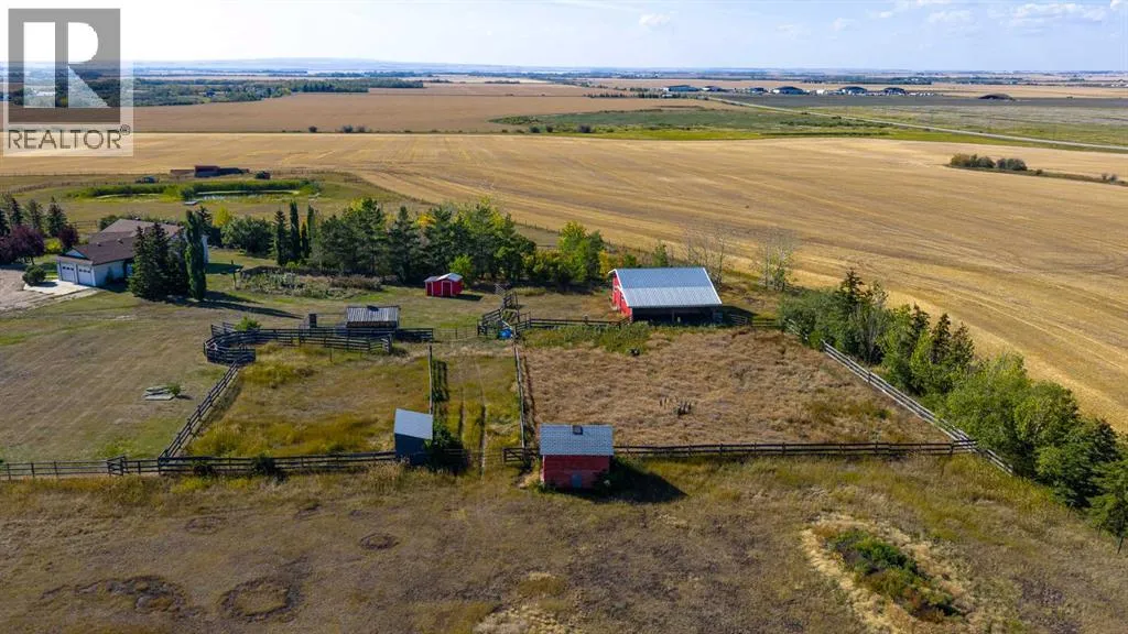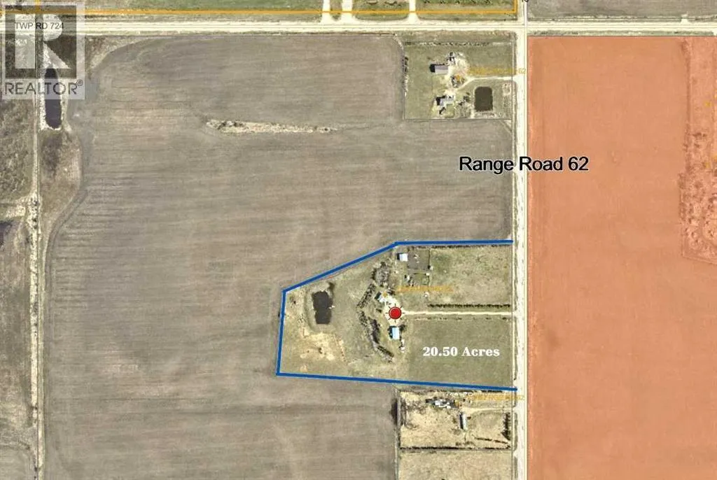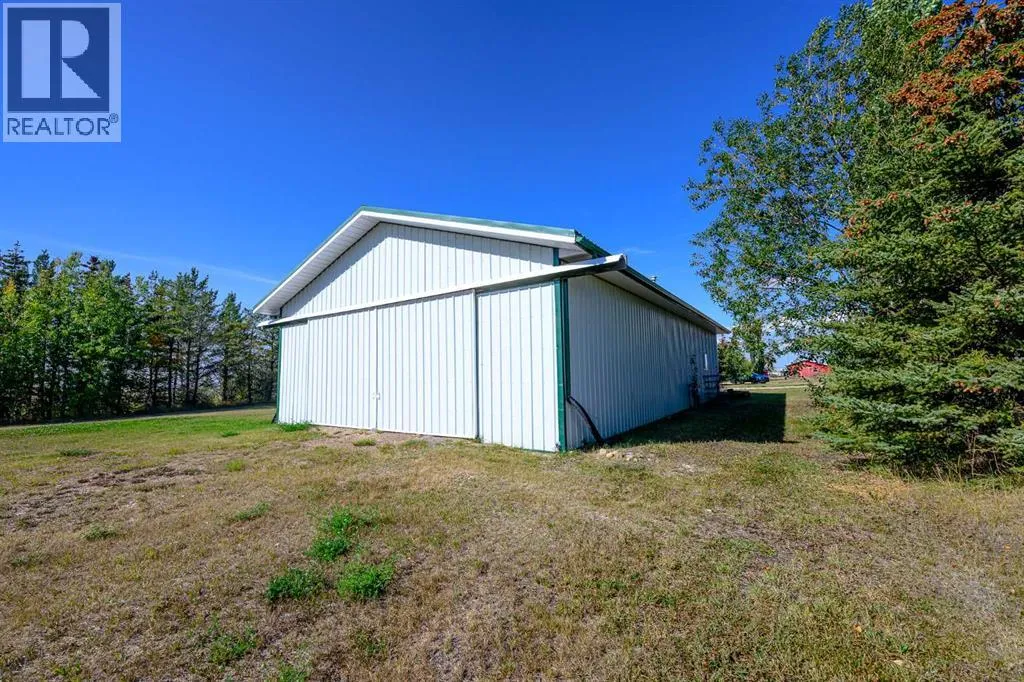 Unique property offering 20.50 acres Zoned CM (Country Industrial) close to Clairmont with paved access off of Range Road 62. This property offers a fully developed house (bungalow style) with 24x30 heated attached garage (access to basement), 32x60 Shop (partially heated workshop area & cold storage equipment area), 24x32 Barn & hen house, 2 sheds; fenced and cross fenced for animals. The main floor of the house has the main entrance & entrance into the heated garage, kitchen, living room, 3 bedrooms, 2 bathrooms & laundry. The basement has 2 bedrooms, 4 pc. bathroom, family room with gas stove, utility room & access to the garage. The Shop has concrete floor with a front insulated 10x16 overhead door & high sliding door at the back to accommodate larger equipment. This property is set up for animals if desired. There is the ability to access City water in the future. There is a dugout on the property. The yard area has a circular drive in front of the house & shop area. Many nice trees & shrubs sheltering the house area. Nice Property ! (id:27476)