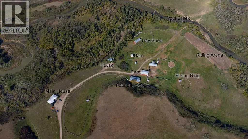 This is truly a once in a lifetime opportunity to own a remarkable piece of Alberta's history. It feels like you've stepped inside a Charlie Russell painting! Located just 20 minutes Southwest of Claresholm, this breathtaking 240 acre ranch is surrounded by the sweeping views of the Porcupine Hills, offering both privacy and endless natural beauty. Adding to its value, Trout Creek runs directly through the property, bringing in a natural sanctuary feeling. Currently set up for horses, whether you dream of a working ranch or just a private retreat, the possibilities are endless. There is an 80 acre hay field as well. A main residence plus a cozy bunkhouse. A barn, shop, and an outdoor riding arena with roping chutes. Call today to book your private showing. (id:27476)