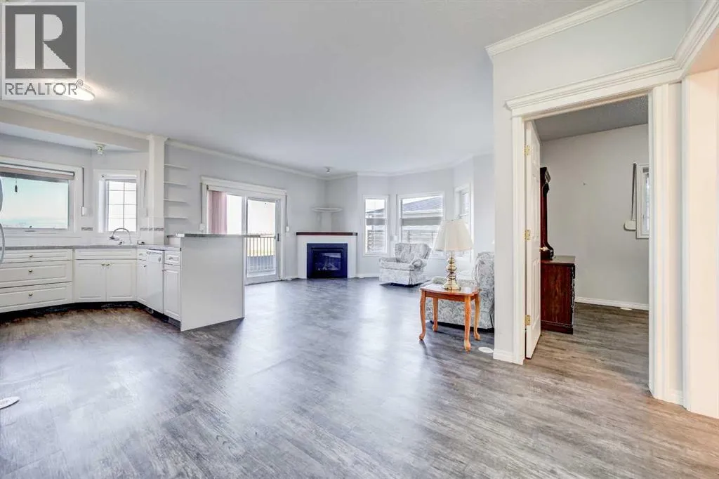 Enjoy breathtaking views of the Porcupine Hills from this well-maintained 55+ ground-floor condo. With no stairs to navigate, this 2-bedroom, 2-bathroom unit offers 970 sq.ft. of comfortable, low-maintenance living.The bright and spacious living room features a cozy gas fireplace, perfect for relaxing on cooler evenings. Step outside to your private balconyâa peaceful spot for morning coffee or watching the sunset.The primary bedroom includes a large closet and a 3-piece ensuite, while the second bedroom is ideal for guests or a home office. You'll also appreciate the in-suite laundry with a washer and dryer for added convenience. (id:27476)