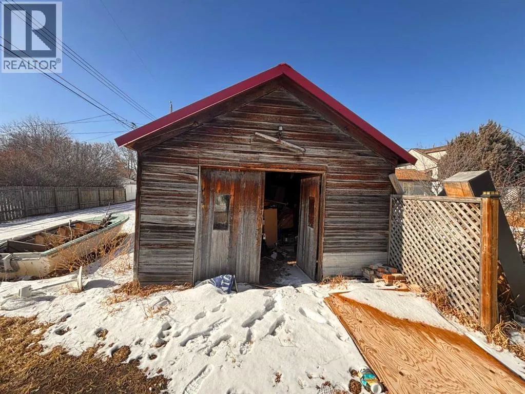 SOLD âas is â where is, on completionâ *All offers must be cash and unconditional. Handyman special?, possibly, but much more appropriate for an in-fill opportunity. Located on a quiet street just one block to park, playground; short walk to post office & downtown business district. 1 bedroom bungalow with a full bath featuring a claw foot tub; eat-in kitchen with adjacent pantry, living room, bedroom and a sun porch. Original windows, wide baseboards and original hardwood floors in living room & bedroom. A partial basement houses the mechanical & storage area with an older forced air furnace. Large 50 X 140 lot features perennial beds, large trees, hedges, RV parking and additional parking space off the alley, beside and behind the 32x14 garage / shed. (id:27476)