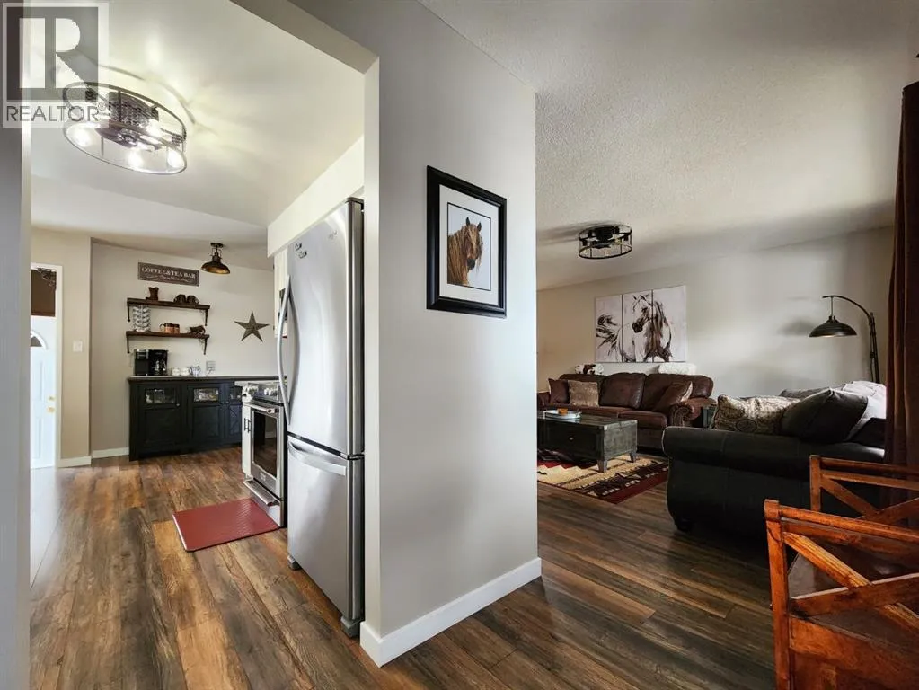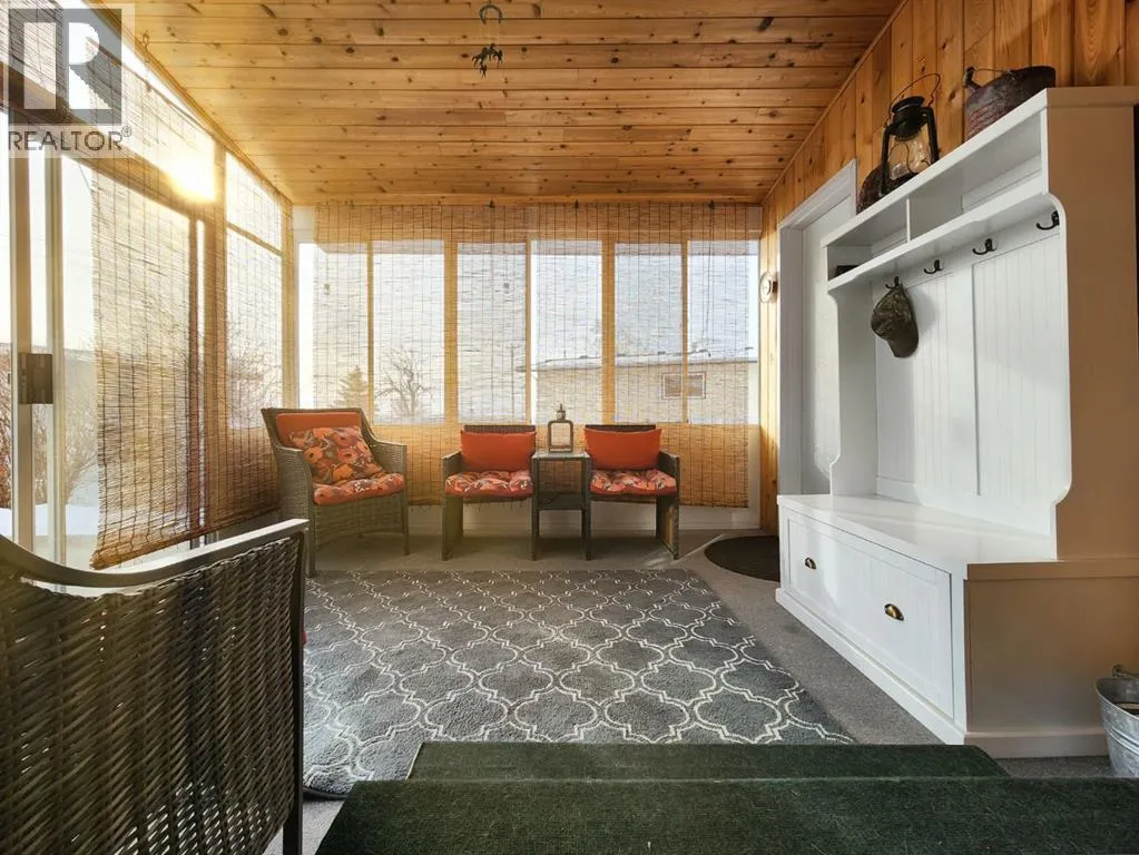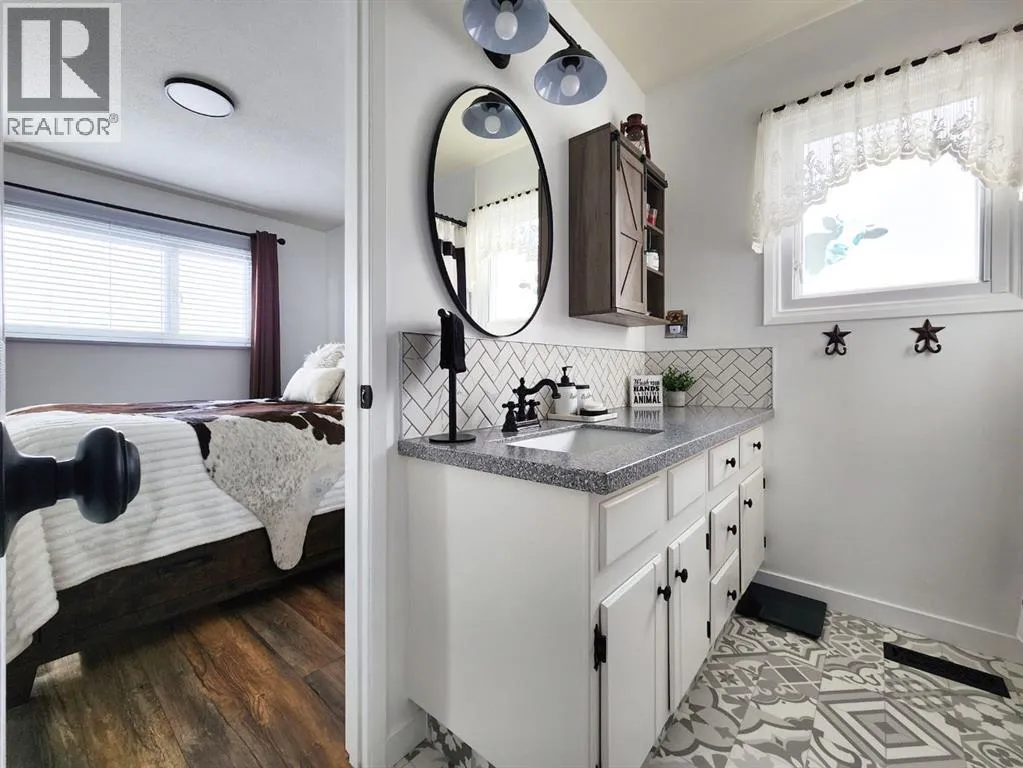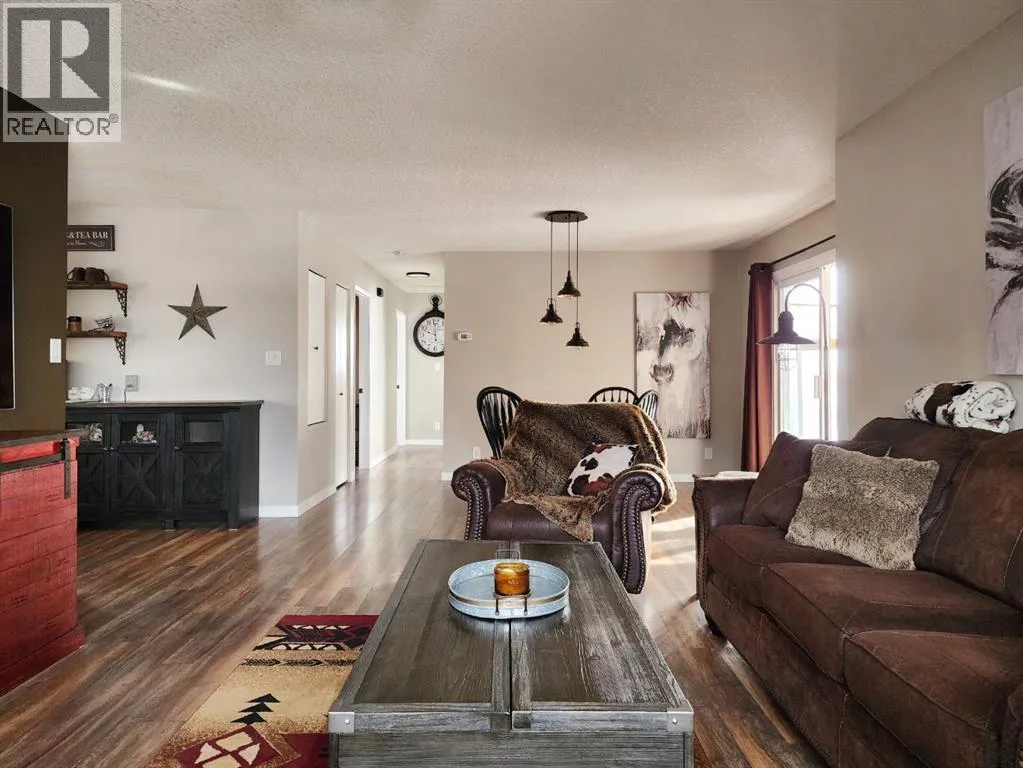 If you love breathtaking sunrises, this home is sure to impress. The backyards view is open farmland with no rear neighbors, youâll enjoy peaceful views, added privacy, and stunning morning light right from your backyard or enclosed sunroom.This immaculate, move-in ready bungalow has been exceptionally well maintained, offering a perfect blend of comfort, style, and functionality from the moment you step inside. The front entry welcomes you into a warm and inviting space. To the right, the living room features a large window with Peka roll shutters and mature landscaping, creating a cozy and private retreat. Just beyond, the dining area provides an ideal setting for hosting family and friends.Off the dining space, patio doors open to a covered, enclosed, south-facing sunroomâperfect for relaxing and enjoying natural light year-round. The adjacent kitchen has been beautifully renovated with upgraded appliances, modern fixtures, a stylish backsplash, and durable Corian countertops. The cabinetry has been professionally refinished, blending both elegance and practicality.The main level features upgraded engineered hardwood flooring, known for its durability and timeless appeal. All three bedrooms are generously sized and offer ample closet space. The recently renovated 4-piece Dual access bathroomâaccessible from both the primary bedroom and the hallwayâadds a spa-like touch.Downstairs, the bright and spacious lower level offers a large family room, laundry area, and flexible space for a home gym or additional living area. There is also plenty of storage, including a vented cold room, along with a convenient 3-piece bathroom. This level can easily be customized to suit your needs.Outside, the property continues to impress with a durable metal roof, single garage, fully fenced yard with new fencing, paved RV parking, and back alley access. The beautifully landscaped yard features mature trees, shrubs, and vibrant flowersâperfect for enjoying the warmer months . Air conditioning adds to the homeâs overall comfort.Over the years, numerous upgrades have been completed, including windows, roof, doors, baseboards, paint and interior doorsâproviding peace of mind for years to come.Located in the friendly community of Claresholm, this home offers small-town charm with convenient amenities, great schools, and easy access to Highway 2 for commuting to Lethbridge or Calgaryâperfect for a peaceful lifestyle with everyday convenience. (id:27476)