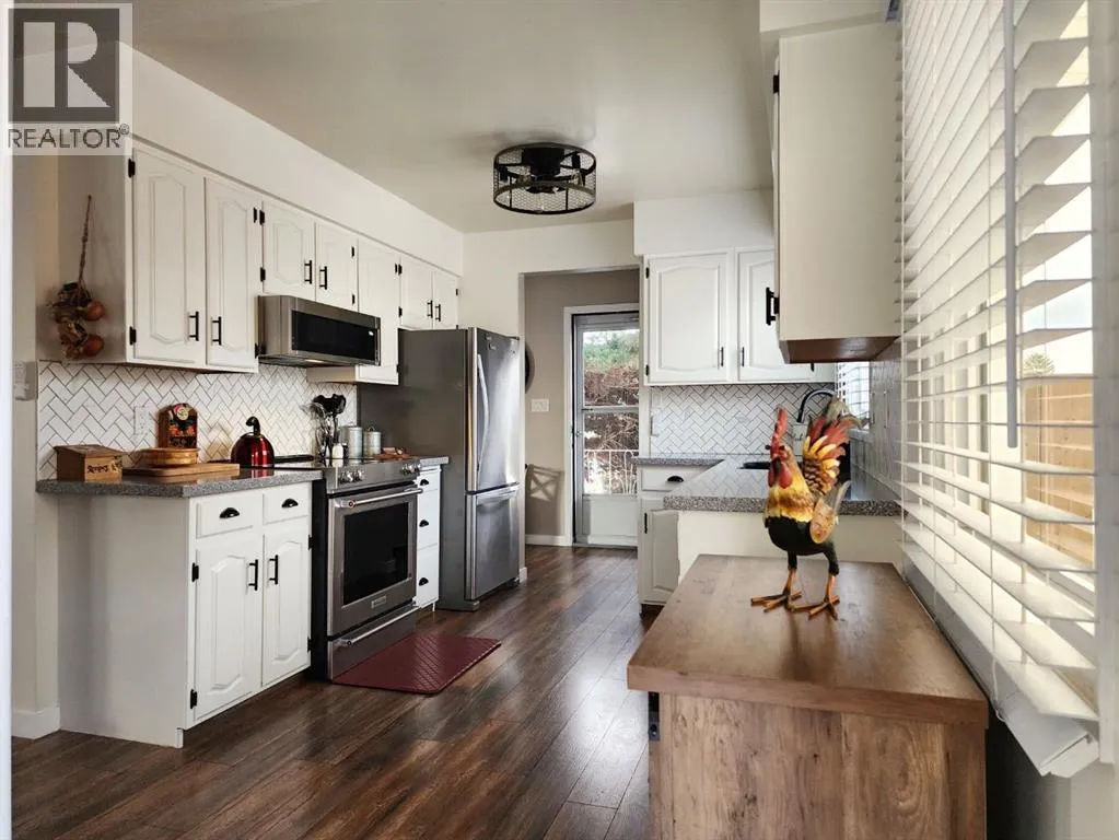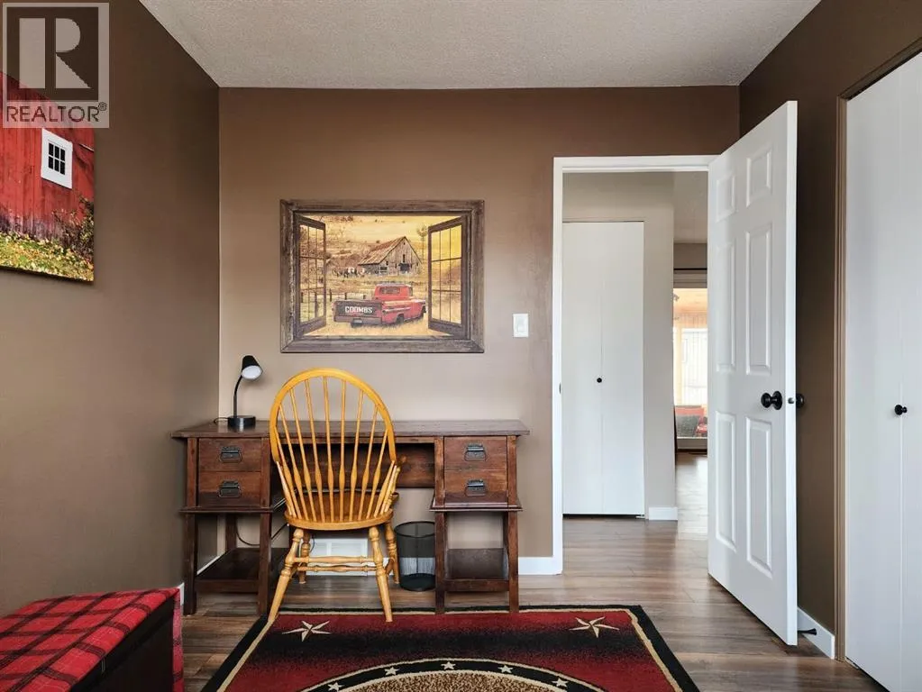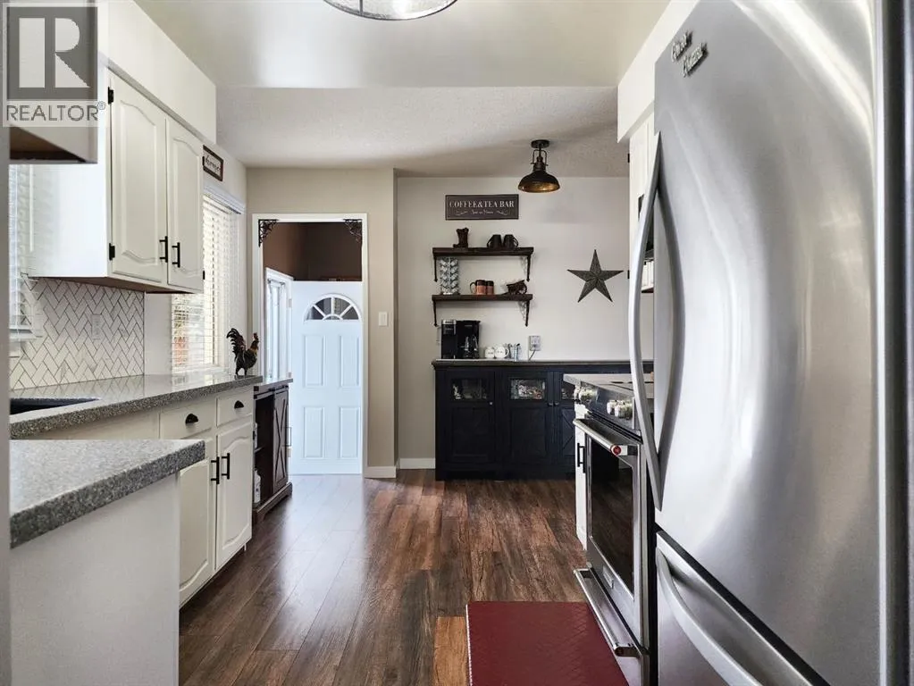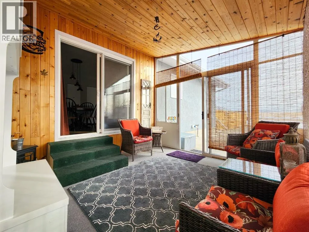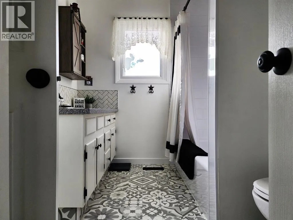 If you love breathtaking sunrises, this home is sure to impress. The backyards view is open farmland with no rear neighbors, youâll enjoy peaceful views, added privacy, and stunning morning light right from your backyard or enclosed sunroom.This immaculate, move-in ready bungalow has been exceptionally well maintained, offering a perfect blend of comfort, style, and functionality from the moment you step inside. The front entry welcomes you into a warm and inviting space. To the right, the living room features a large window with Peka roll shutters and mature landscaping, creating a cozy and private retreat. Just beyond, the dining area provides an ideal setting for hosting family and friends.Off the dining space, patio doors open to a covered, enclosed, south-facing sunroomâperfect for relaxing and enjoying natural light year-round. The adjacent kitchen has been beautifully renovated with upgraded appliances, modern fixtures, a stylish backsplash, and durable Corian countertops. The cabinetry has been professionally refinished, blending both elegance and practicality.The main level features upgraded engineered hardwood flooring, known for its durability and timeless appeal. All three bedrooms are generously sized and offer ample closet space. The recently renovated 4-piece Dual access bathroomâaccessible from both the primary bedroom and the hallwayâadds a spa-like touch.Downstairs, the bright and spacious lower level offers a large family room, laundry area, and flexible space for a home gym or additional living area. There is also plenty of storage, including a vented cold room, along with a convenient 3-piece bathroom. This level can easily be customized to suit your needs.Outside, the property continues to impress with a durable metal roof, single garage, fully fenced yard with new fencing, paved RV parking, and back alley access. The beautifully landscaped yard features mature trees, shrubs, and vibrant flowersâperfect for enjoying the warmer months . Air conditioning adds to the homeâs overall comfort.Over the years, numerous upgrades have been completed, including windows, roof, doors, baseboards, paint and interior doorsâproviding peace of mind for years to come.Located in the friendly community of Claresholm, this home offers small-town charm with convenient amenities, great schools, and easy access to Highway 2 for commuting to Lethbridge or Calgaryâperfect for a peaceful lifestyle with everyday convenience. (id:27476)
