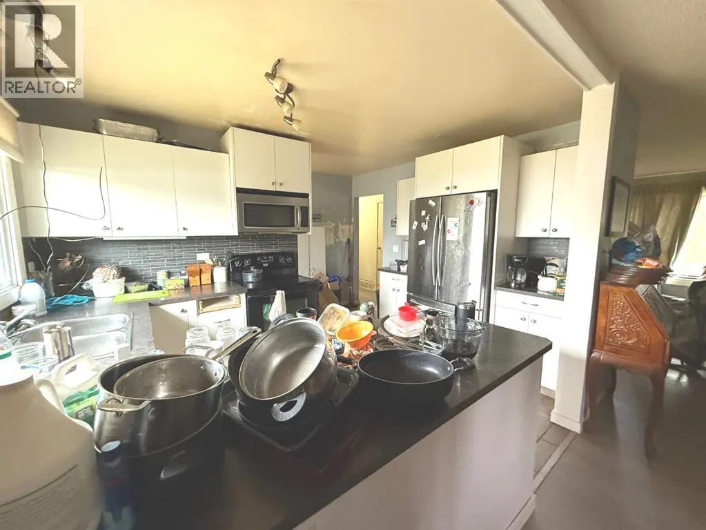 Welcome to the quaint community of Clive where you'll get big bang for your buck! This 4 bedroom, 2 bathroom bi-Level is settled on a large lot on the main road coming into town. Entering the home you'll find laminate flooring throughout. Bright living room leads into the dining/kitchen area. Two bedrooms and four piece bathroom complete the main floor. Basement is developed with two more bedrooms, three piece bathroom, family room, kitchenette and utility room. Central AC. Hot water tank, furnace and windows were replaced around 6 years ago. Step out the rear entrance into the east facing back yard which is fenced and has a 30'x24' garage. A great opportunity for someone starting out or looking for an investment. (id:27476)