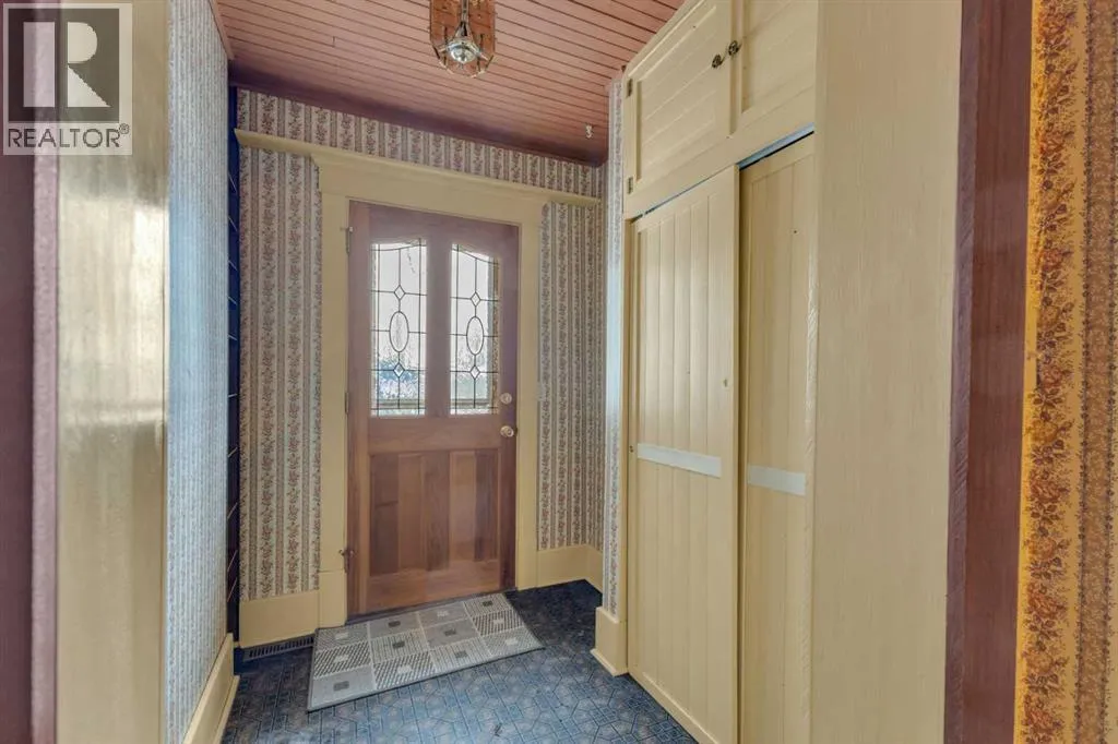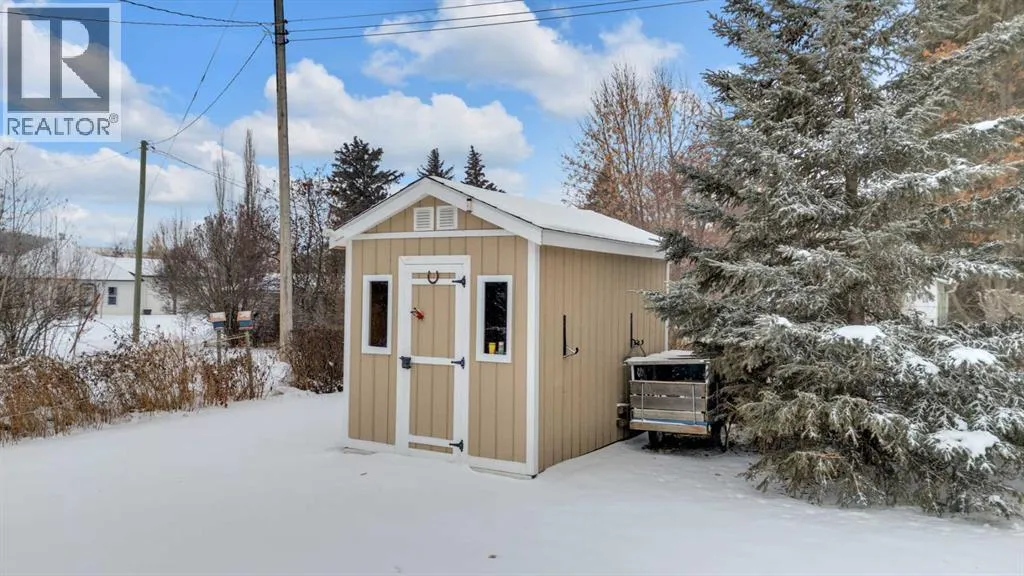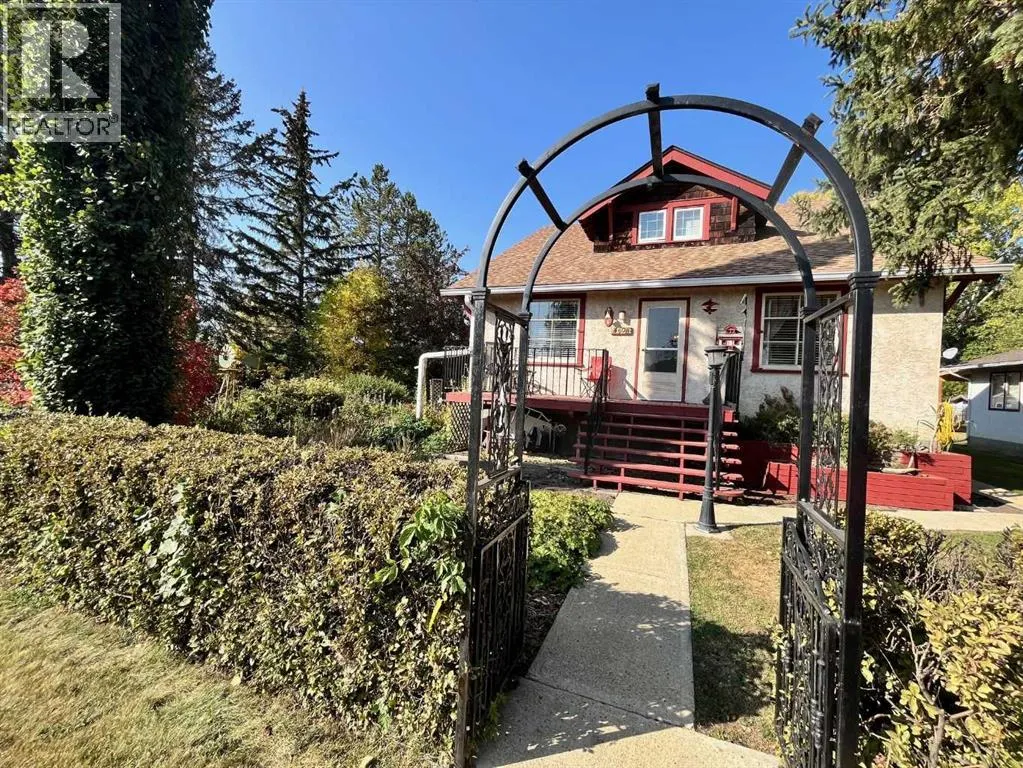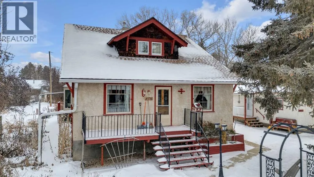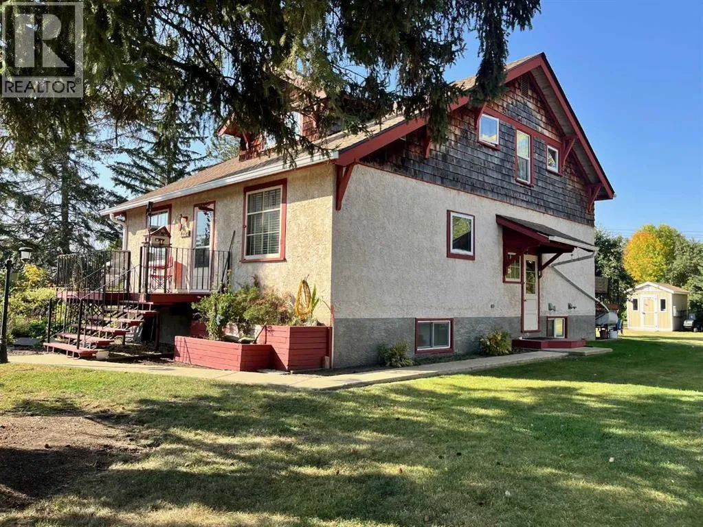 Welcome to this beautifully preserved 1920 character home, a rare opportunity to own a property where quality craftsmanship has stood the test of time. This spotlessly clean 4-bedroom, 3-bath home is available for immediate possession, making it truly move-in ready. The property consists of two large lots totaling 14,000 sq ft, peacefully tucked away in a quiet setting off the main streets. The home showcases original refinished hardwood flooring accented by impressive 10-inch-wide dark oak baseboards, original wood trim finishings, and solid wood doors, all reflecting a century of care while being thoughtfully upgraded. Sunny bay windows on the main level fill the home with natural light, while vintage light fixtures add to its historic appeal. Upgraded bathrooms and plumbing on every floor provide everyday comfort, reliability, and convenience while blending seamlessly with the homeâs historic character. The basement includes a Murphy bed for guests and a large family room perfect for entertaining. This home has seen extensive upgrades over the years, including being professionally lifted and having a new basement poured and finished in 2000. Other major upgrades include asphalt shingles (2014), upgraded windows (1995â2000), new eavestroughs (2019), modernized wiring (2000), new furnace (2000), new hot water tank (2006), and a new shed in 2024. Outdoors, the mature and private lot offers a beautifully treed yard with fruit trees, raspberries, strawberries, and a flower garden with walking paths, creating a peaceful, private yard. Located close to an arena, baseball diamonds, and playgrounds, as well as nearby stores and restaurants, this home sits in the quiet, smaller community of Clive, which still offers many amenities of a larger town, including an elementary and junior high school. With Lacombe only 15 minutes away, this location provides exceptional value by combining small-town charm and affordability with convenient access to expanded services and amenitie s, while being just 20 minutes from the Joffre plant, making it an ideal blend of privacy and accessibility. (id:27476)