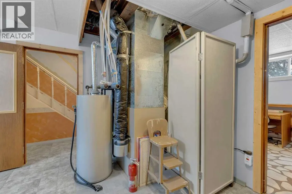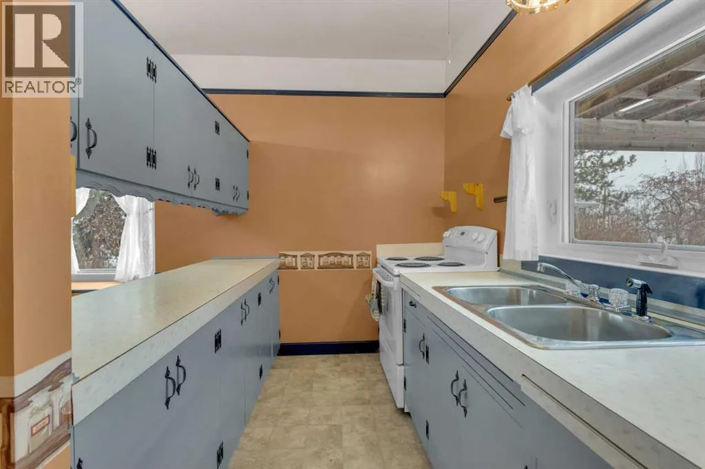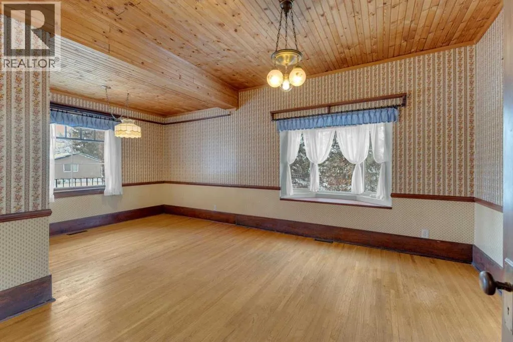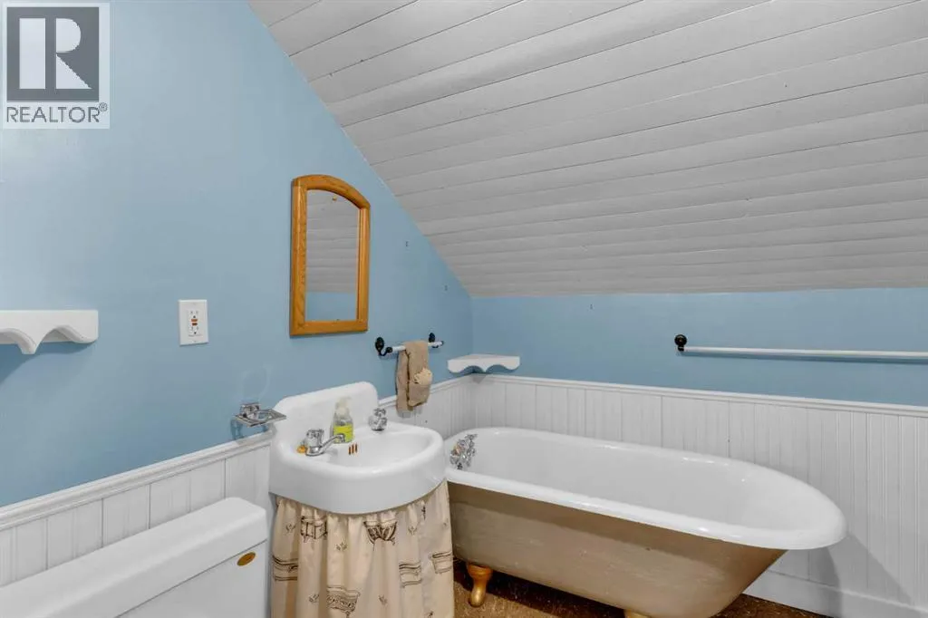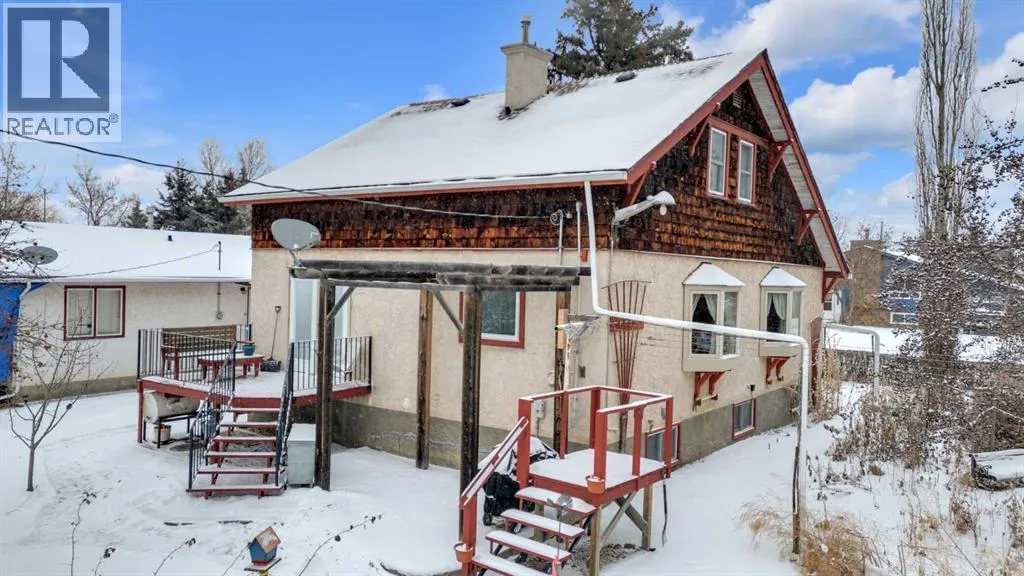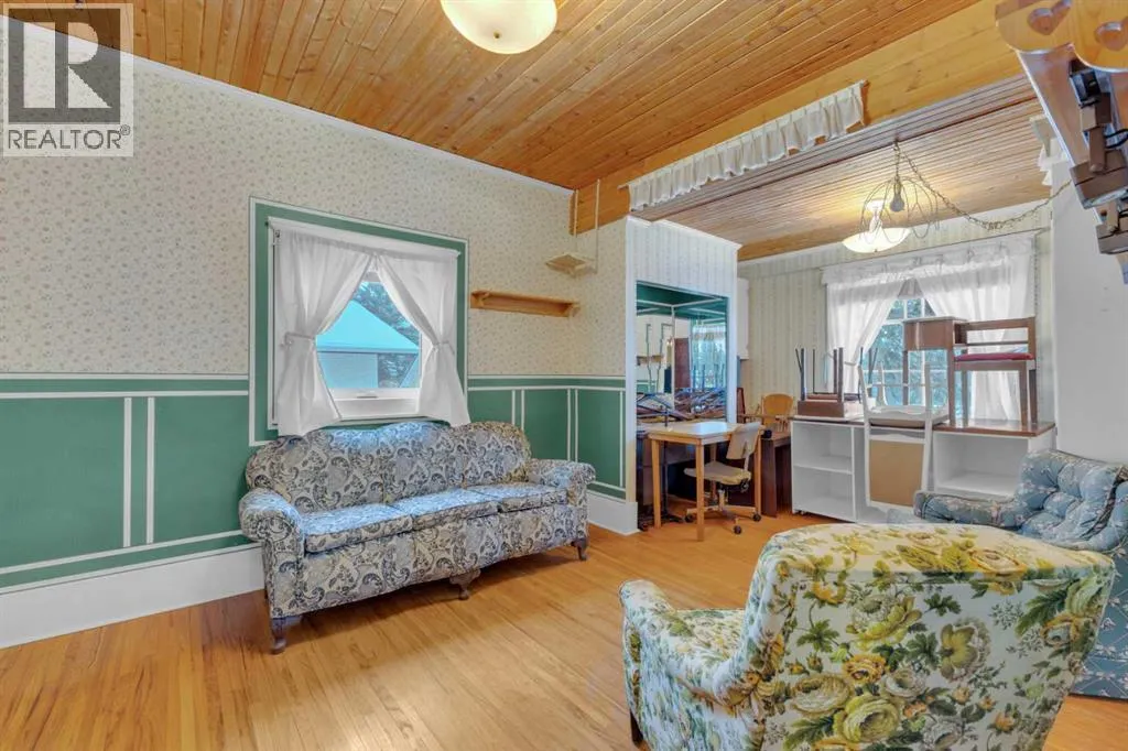 Welcome to this beautifully preserved 1920 character home, a rare opportunity to own a property where quality craftsmanship has stood the test of time. This spotlessly clean 4-bedroom, 3-bath home is available for immediate possession, making it truly move-in ready. The property consists of two large lots totaling 14,000 sq ft, peacefully tucked away in a quiet setting off the main streets. The home showcases original refinished hardwood flooring accented by impressive 10-inch-wide dark oak baseboards, original wood trim finishings, and solid wood doors, all reflecting a century of care while being thoughtfully upgraded. Sunny bay windows on the main level fill the home with natural light, while vintage light fixtures add to its historic appeal. Upgraded bathrooms and plumbing on every floor provide everyday comfort, reliability, and convenience while blending seamlessly with the homeâs historic character. The basement includes a Murphy bed for guests and a large family room perfect for entertaining. This home has seen extensive upgrades over the years, including being professionally lifted and having a new basement poured and finished in 2000. Other major upgrades include asphalt shingles (2014), upgraded windows (1995â2000), new eavestroughs (2019), modernized wiring (2000), new furnace (2000), new hot water tank (2006), and a new shed in 2024. Outdoors, the mature and private lot offers a beautifully treed yard with fruit trees, raspberries, strawberries, and a flower garden with walking paths, creating a peaceful, private yard. Located close to an arena, baseball diamonds, and playgrounds, as well as nearby stores and restaurants, this home sits in the quiet, smaller community of Clive, which still offers many amenities of a larger town, including an elementary and junior high school. With Lacombe only 15 minutes away, this location provides exceptional value by combining small-town charm and affordability with convenient access to expanded services and amenitie s, while being just 20 minutes from the Joffre plant, making it an ideal blend of privacy and accessibility. (id:27476)
