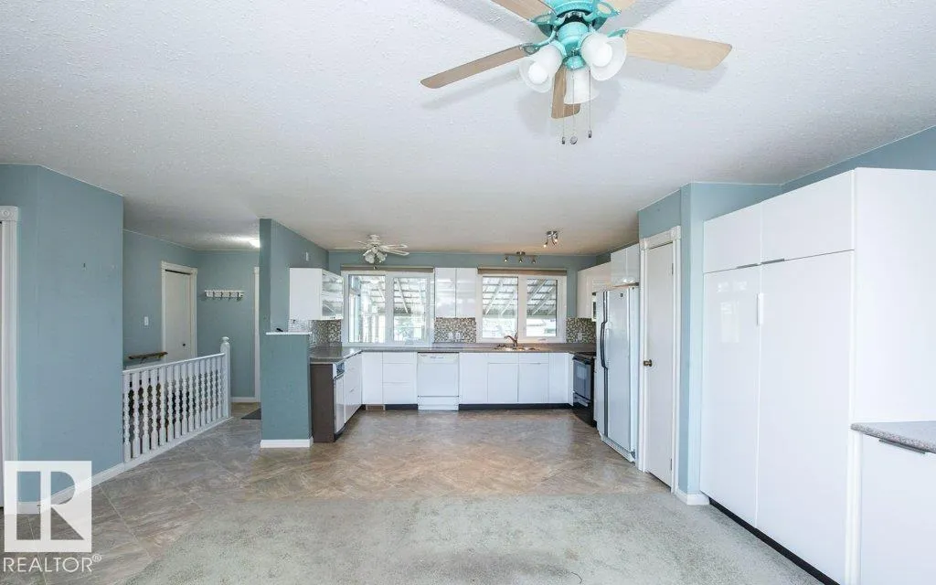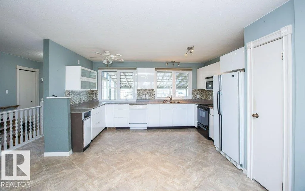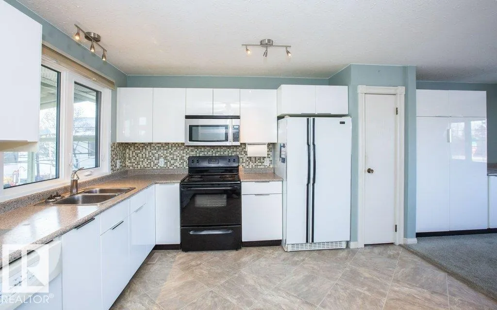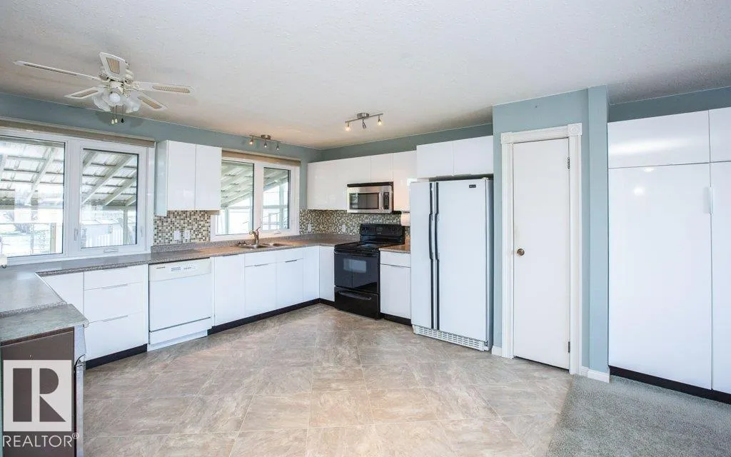 Excellent Family Home on a HUGE lot in Clyde! Pride of ownership throughout this well-kept home. Many upgrades include, kitchen cabinets, attic insulation, flooring, shingles, new windows. Features an open kitchen and living room with lots of counter space, 3 bedrooms up, and a primary with 2-pc ensuite and walk-in closet. One main-floor bedroom is currently used for laundry but can easily be converted back. Basement includes a large family room, bedroom/hobby room, plenty of storage, and a 2-pc bath (with drain for future shower/tub). Enjoy the enclosed deck, fenced yard, and 30âx20â double garage with workshop area. Close to Clydeâs great amenitiesâskatepark, playgrounds, curling rink, and more. Only 10 mins to Westlock, 30 mins to St. Albert. (id:27476)