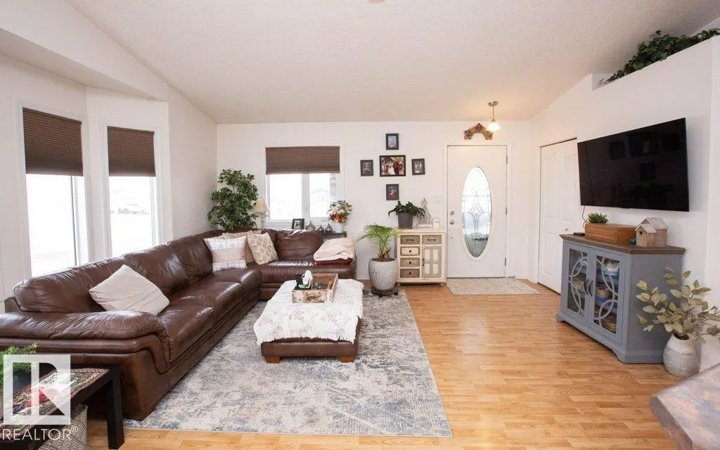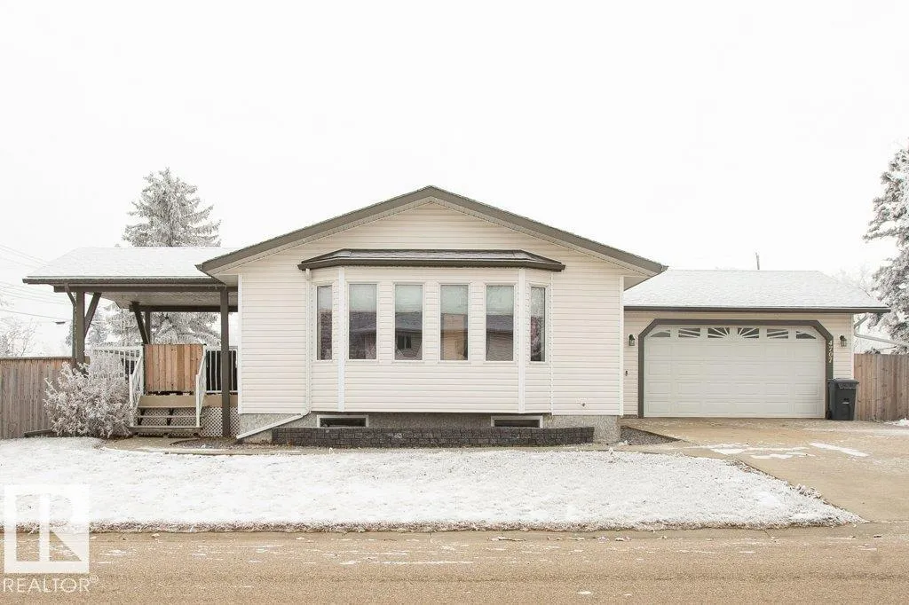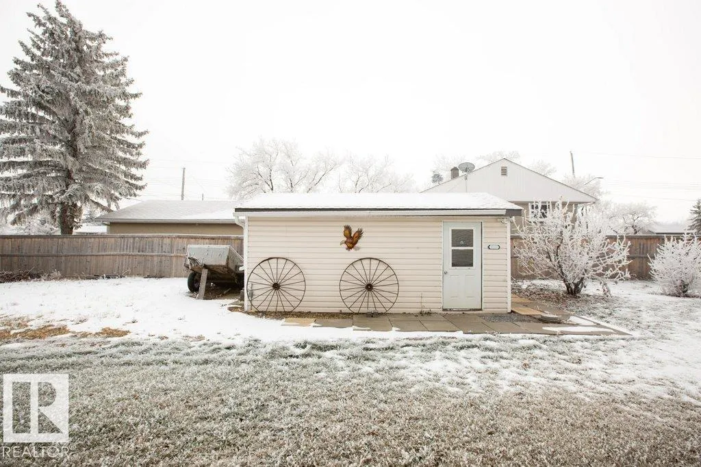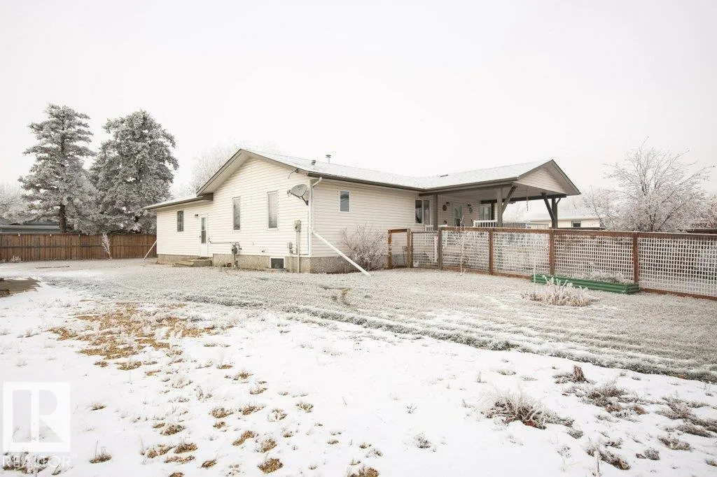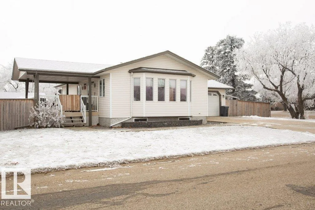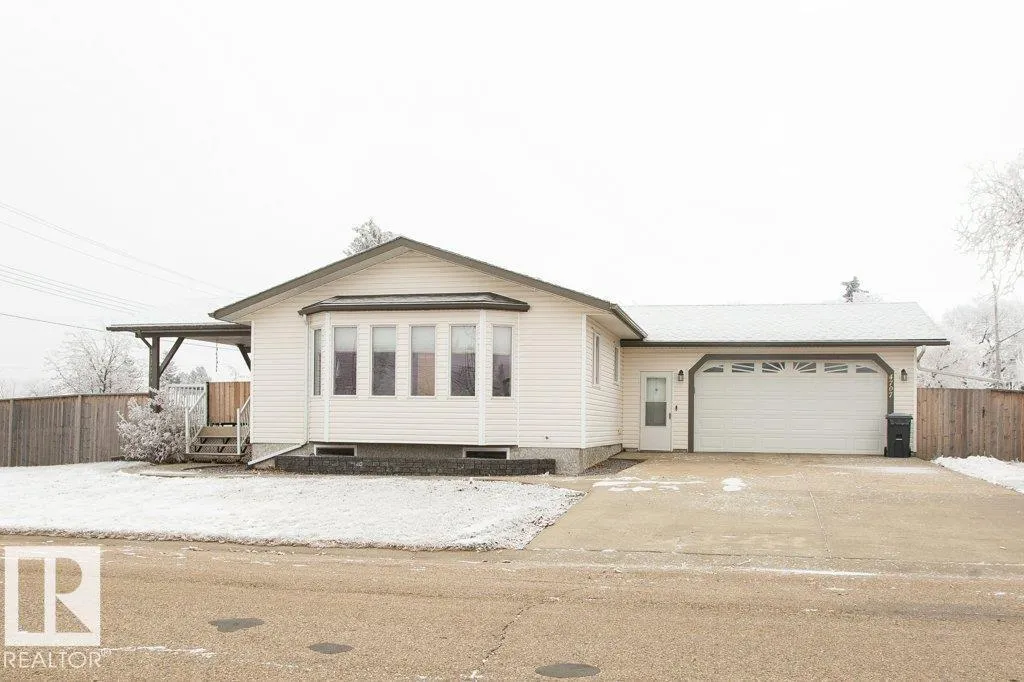 Charming 2005 1086 sq ft 2+1 bedroom home on a large corner lot and a half with an attached heated garage. This modern home features newer dual-pane windows, upgraded toilets, garage heater, leaf-guard gutters, and fresh paint. Bright open-concept kitchen and living room with kitchen island and door to covered side deck. Main floor offers a 2 pce bath, two bedrooms including a primary with walk-in closet, 4 pce ensuite, and convenient laundry. Finished basement includes a spacious family room/office area, bedroom, 3 pce bath, and storage/mechanical room. Massive, fenced yard with front drive and alley access, large sliding gate with gravel RV pad, and a powered 12x20 shed/workshop. Clean, well kept, and move-in ready. Located in Clyde with a modern K-9 school and only 10 minutes to Westlock or 40 minutes to St. Albert. (id:27476)