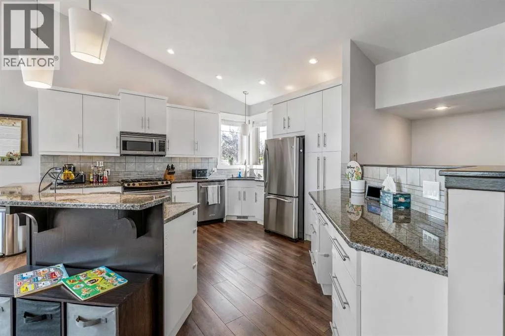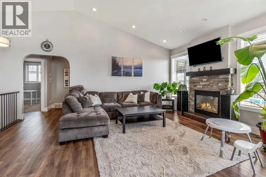 OPEN HOUSE - SAT NOVEMBER 15 from 2-4 p.m. This beautifully designed 1,665 sq. ft. bi-level offers 5 bedrooms, 3 bathrooms, and a layout that is perfectly suited for family living. Step inside and youâll be greeted by soaring vaulted ceilings and an open-concept main floor filled with natural light, thanks to large windows that frame the space. The inviting gas fireplace adds warmth and character, making it the heart of the home where everyone can gather. The main floor is thoughtfully designed with a modern kitchen featuring granite countertops, a bright dining space, and a comfortable living roomâall flowing seamlessly together for easy family living and entertaining. Youâll also find two bedrooms, a full bathroom, and convenient main floor laundry on this level. The primary retreat is privately tucked away on the upper level, offering a spacious bedroom, a walk-in closet, and a spa-inspired 5-piece en-suite with dual sinks, a soaker tub, and a separate shower. The fully finished basement expands the living space with tall ceilings, large windows, and a generous rec room thatâs ideal for movie nights, watching the game, or a kidsâ play area. Two additional bedrooms, another full bathroom, and plenty of storage complete the lower level. Step outside to your private backyard oasis, featuring a large deck recently resurfaced with vinyl and upgraded with a weather enclosure, overlooking a landscaped, fenced yard with underground sprinklers that backs directly onto a green spaceâperfect for family BBQs, playtime, and relaxing outdoors. For added convenience, this home includes a double attached garage, a large driveway with plenty of room to park an RV, and durable Hardi siding for low-maintenance curb appeal. Extra features like permanent 360° exterior lighting, central A/C, and hot water on demand make this home as functional as it is beautiful. Set in the family-friendly community of Cottonwood Estates, this home combines thoughtf ul design with a welcoming location close to schools, parks, and amenitiesâeverything a growing family needs. (id:27476)